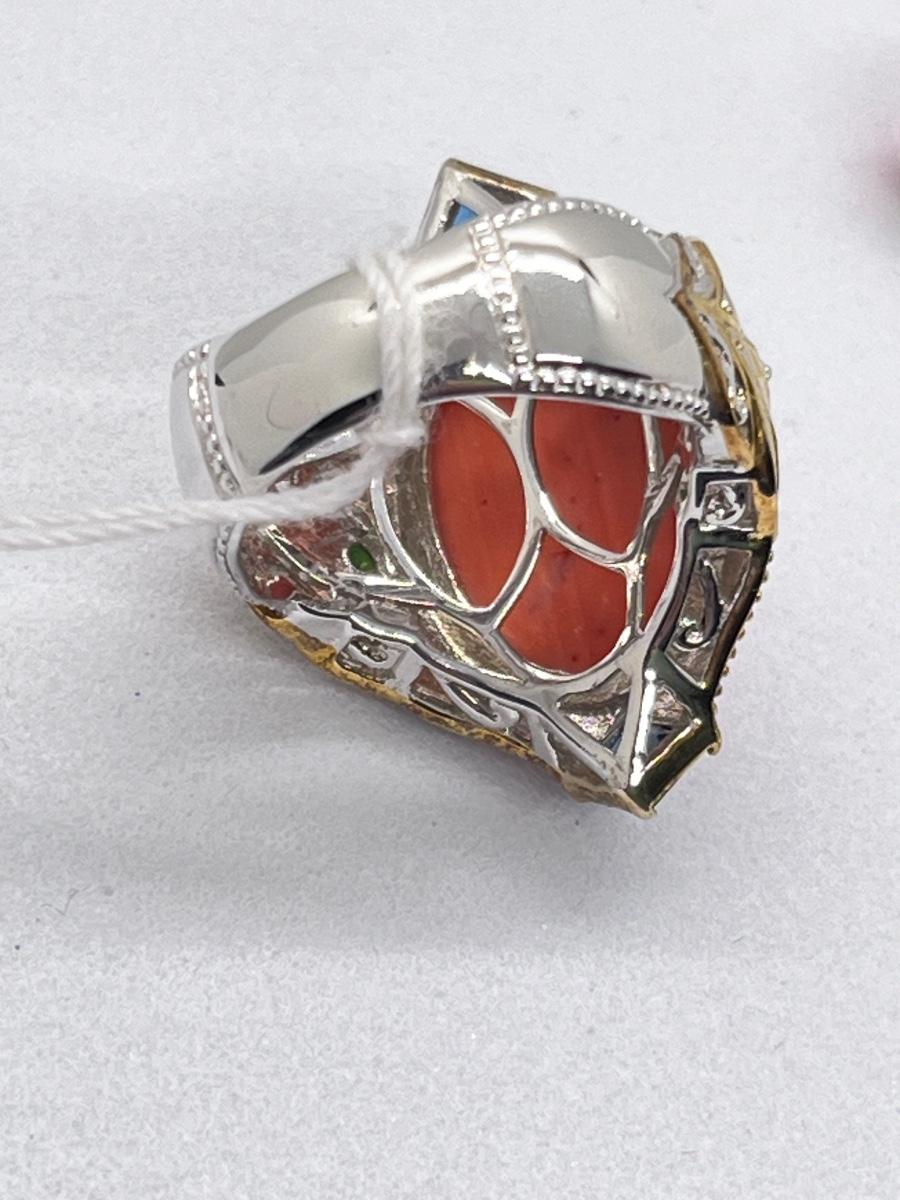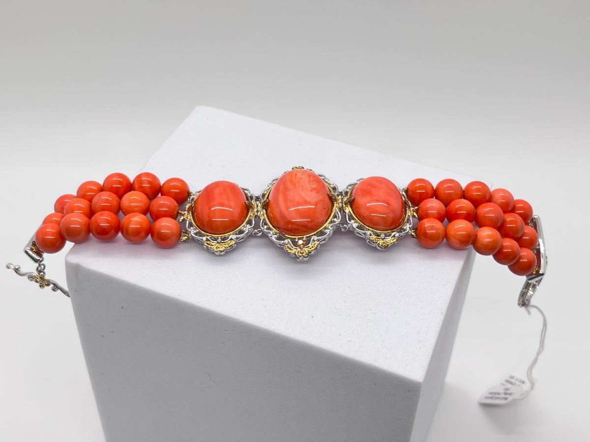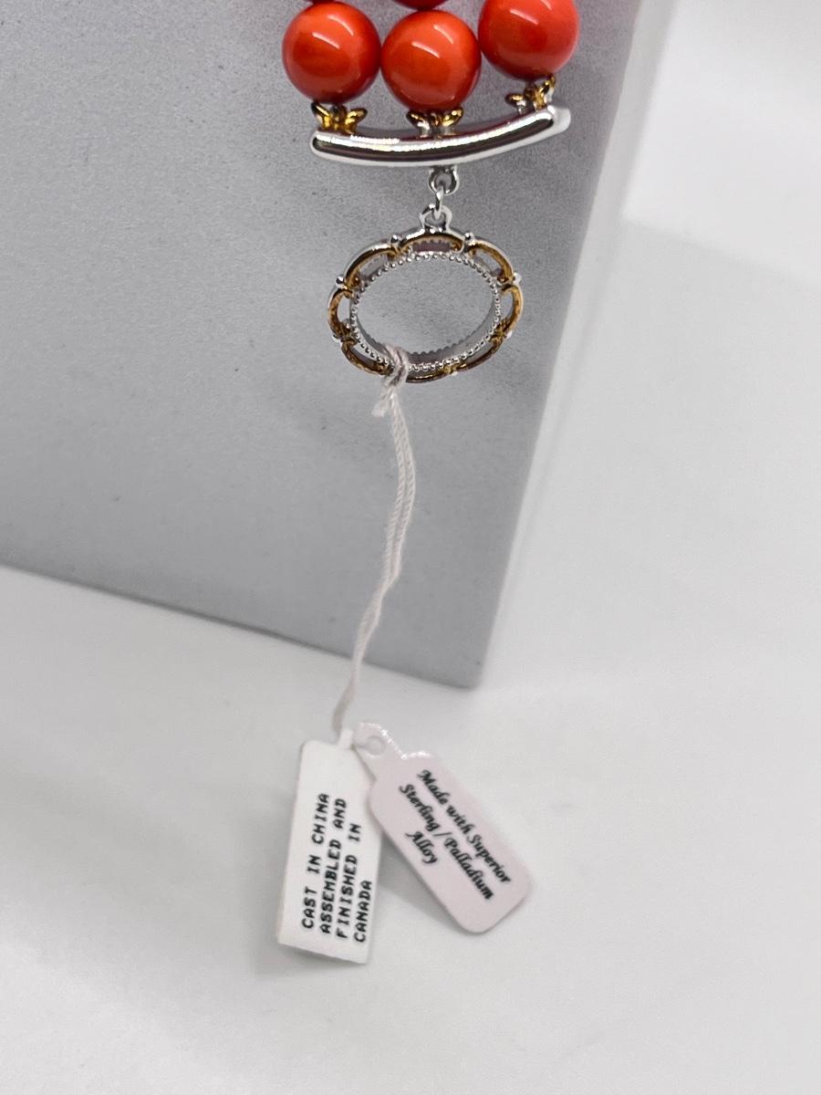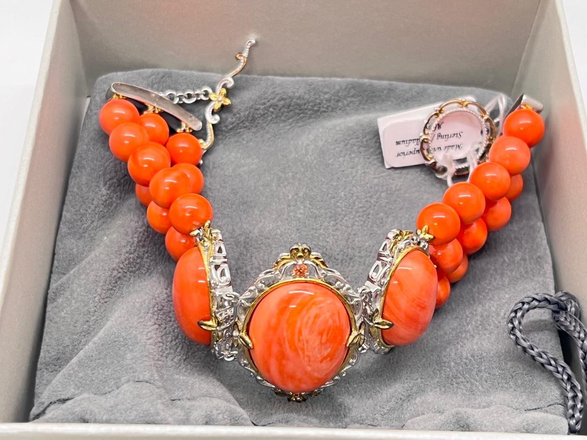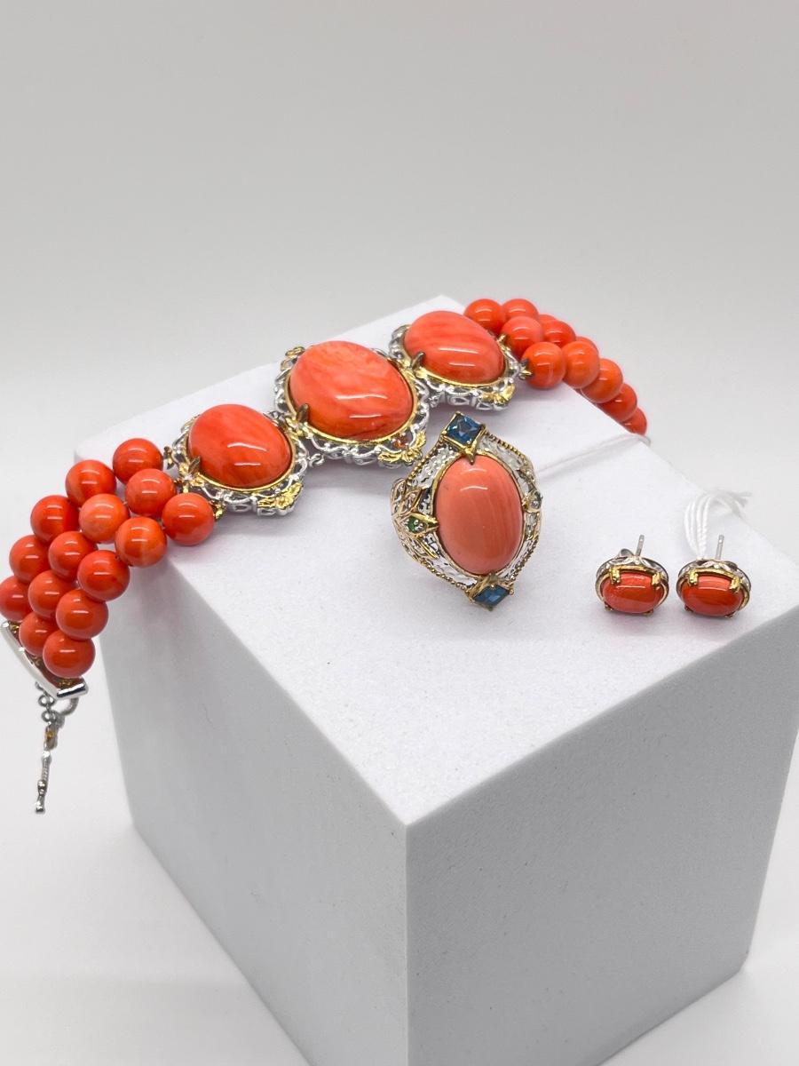 LOT 171J: NEW! Stunning Sterling and Palladium Salmon Colored Coral - 7" Bracelet, Ring Size 8 and Post Earrings-All New by Gems En Vogue