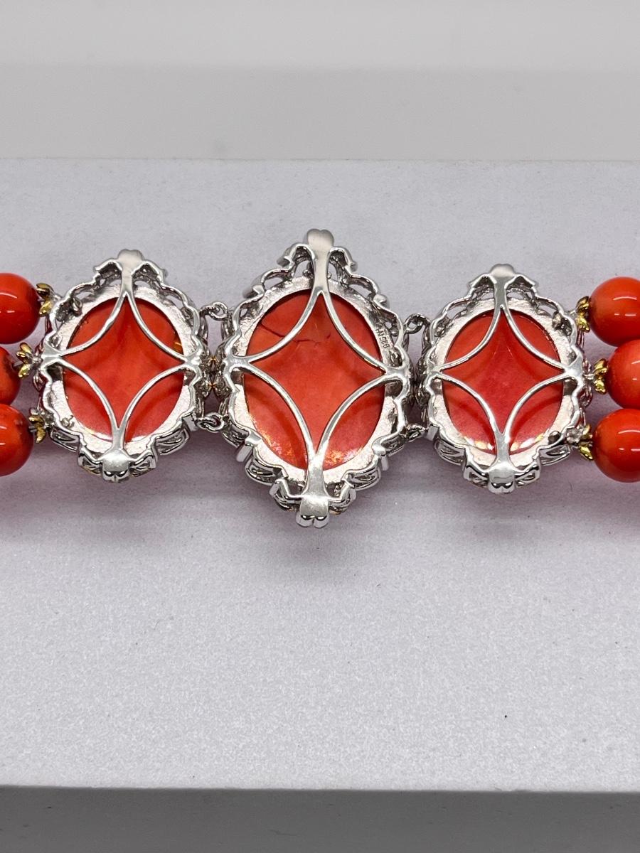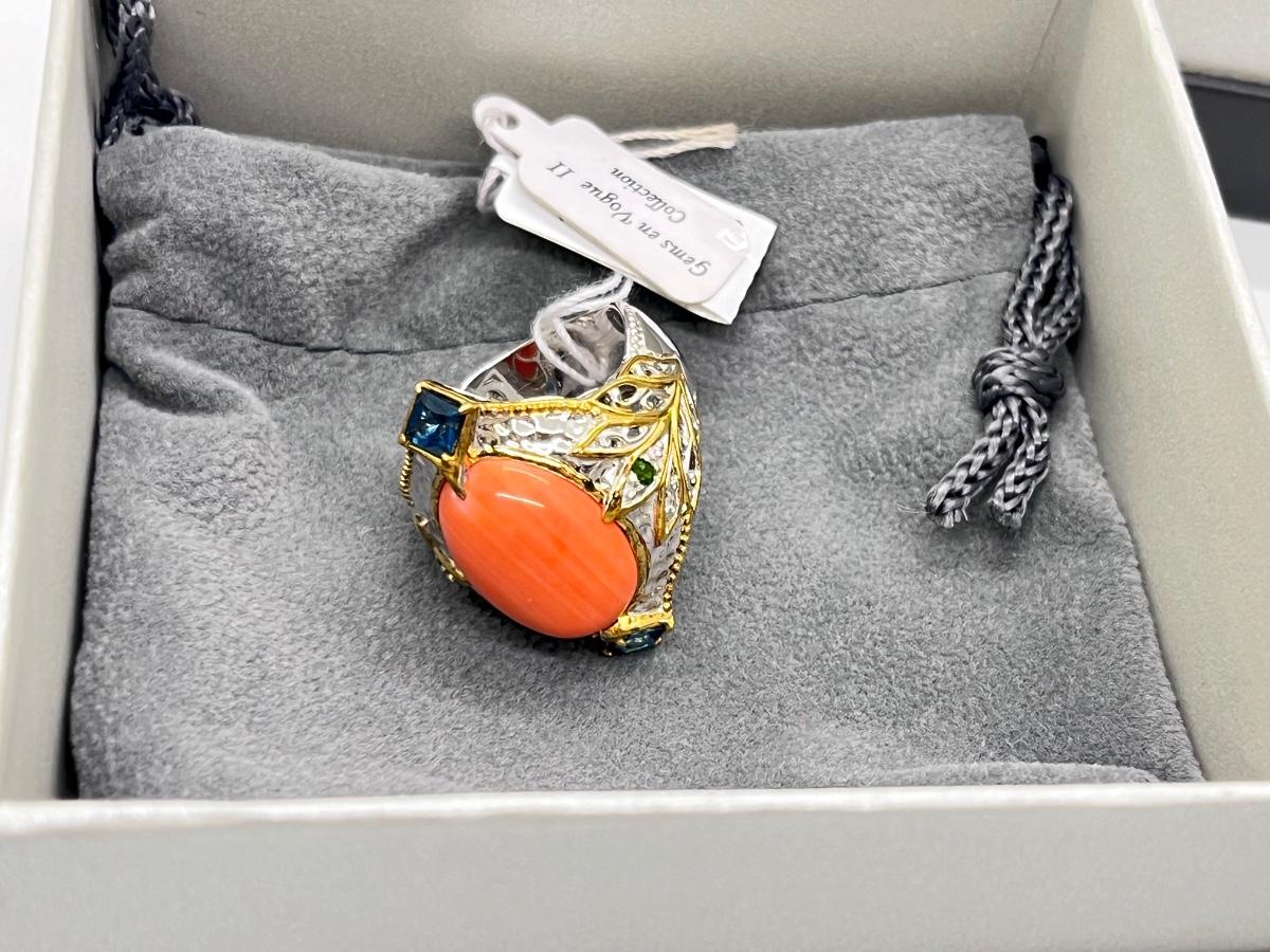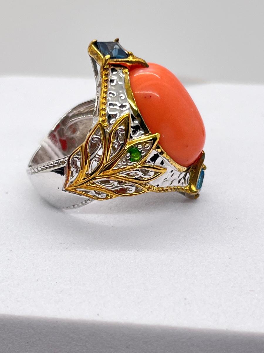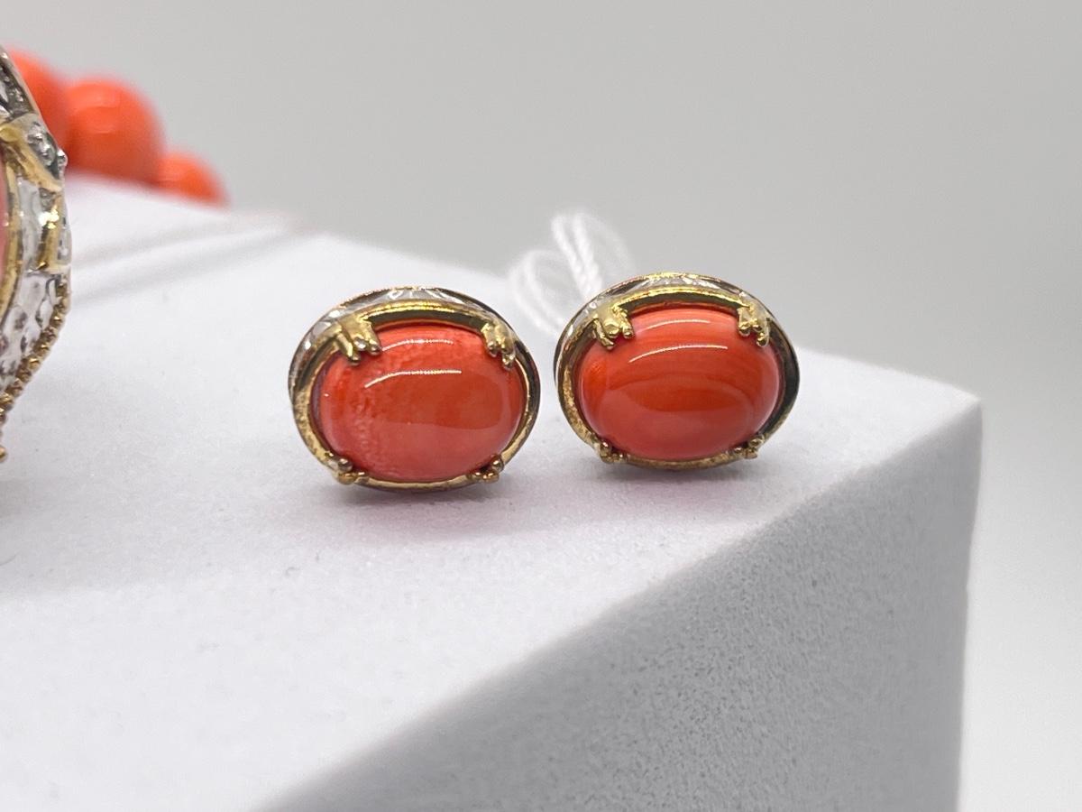 LOT 171J: NEW! Stunning Sterling and Palladium Salmon Colored Coral - 7" Bracelet, Ring Size 8 and Post Earrings-All New by Gems En Vogue