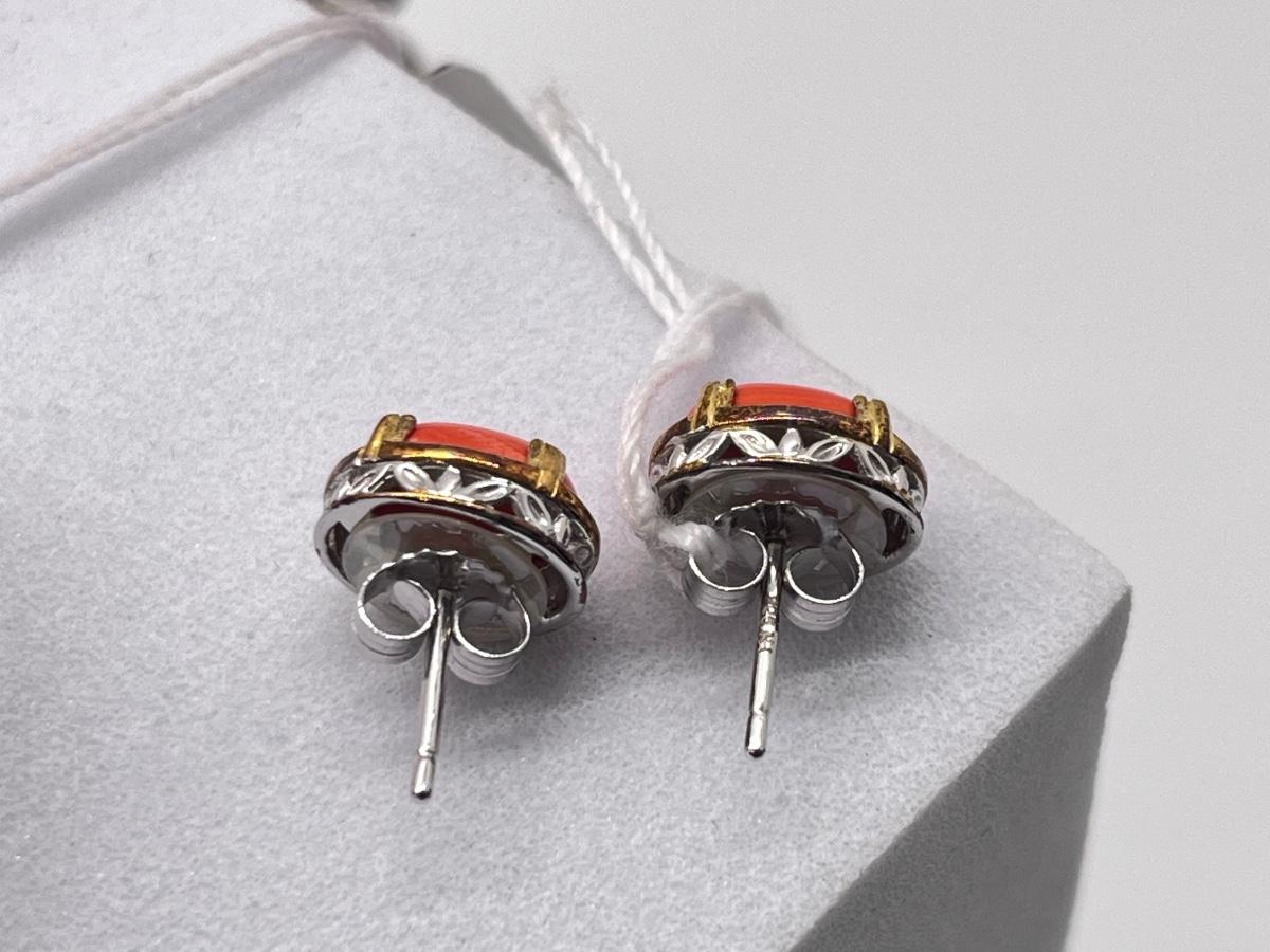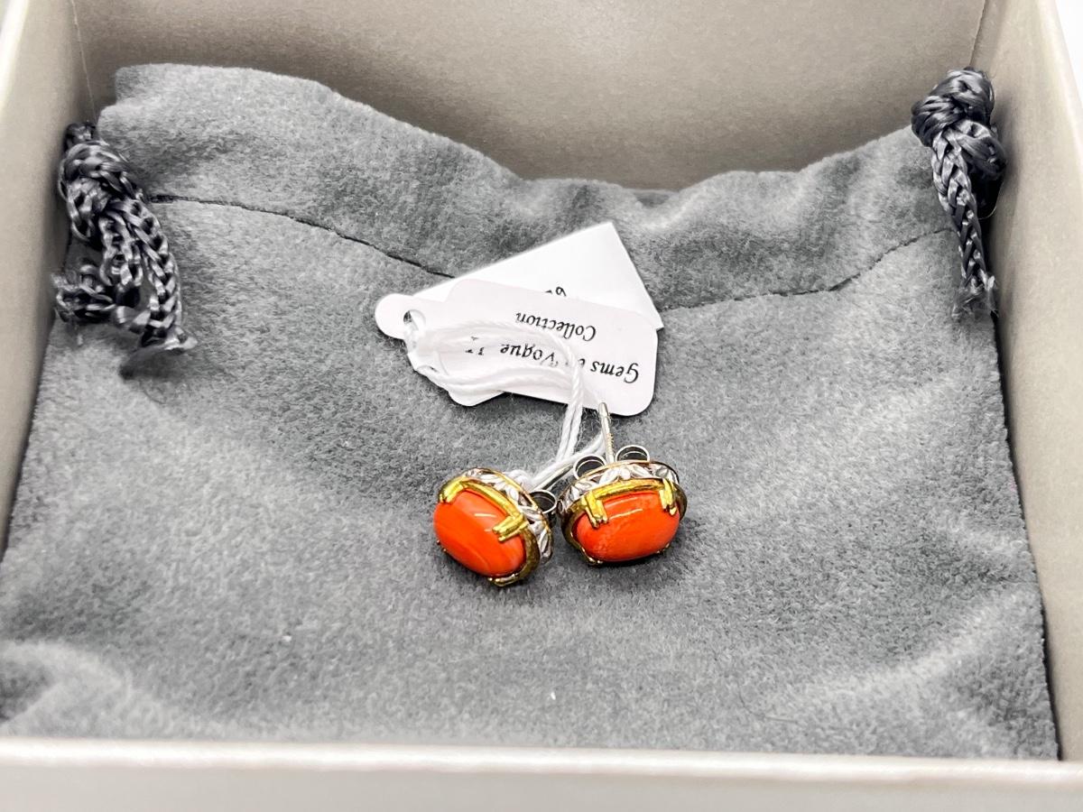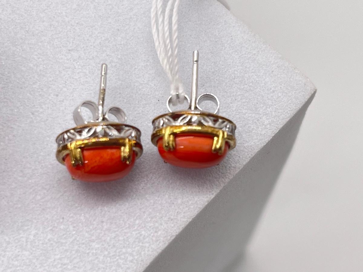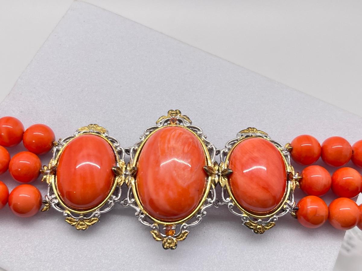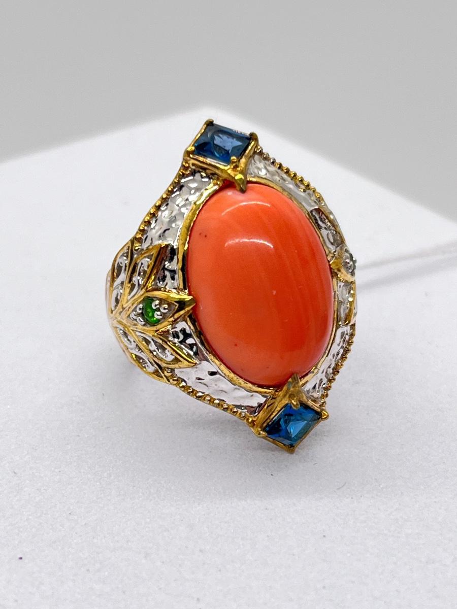 LOT 171J: NEW! Stunning Sterling and Palladium Salmon Colored Coral - 7" Bracelet, Ring Size 8 and Post Earrings-All New by Gems En Vogue