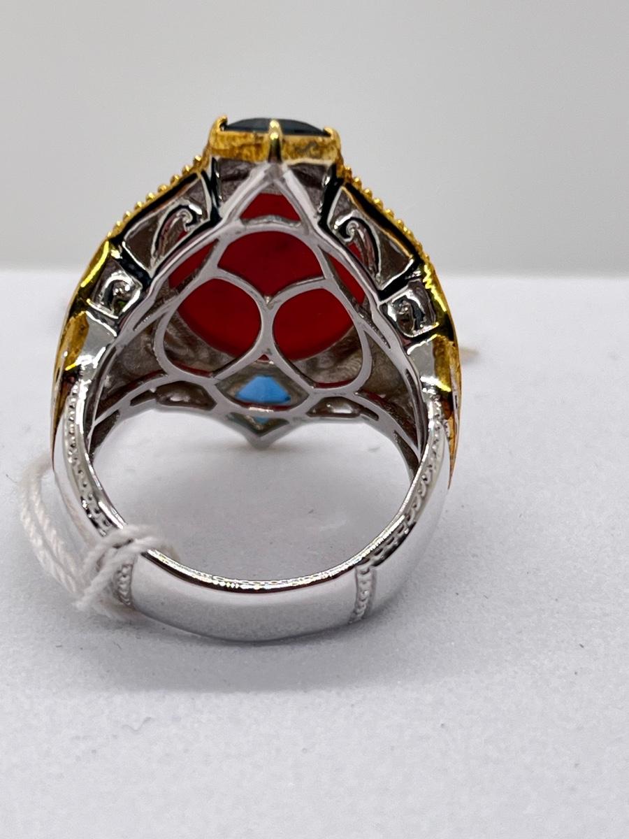 Ring is highlighted with Lonfon blue topaz gems! Please see all pictures as they are the best representation of the items. The pictures show condition, measurements if taken, and what is included in the lot. Due to the large amount that we photograph and the time frame, we are not always able to take measurements. All items unless noted, are pre-owned and have been used. If you purchased furniture, you must bring help. We do not allow one person to carry large furniture out on their own. Bring help, tools and a truck for the safety of our client’s homes, and your personal safety. Any damages that result to the property including walls, and floors due to moving of the furniture will be charged to the buyer. Company policy. Thank you.