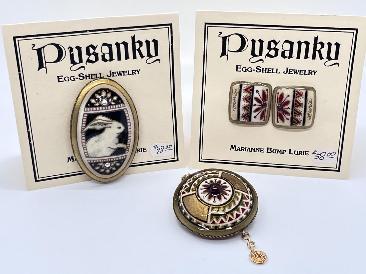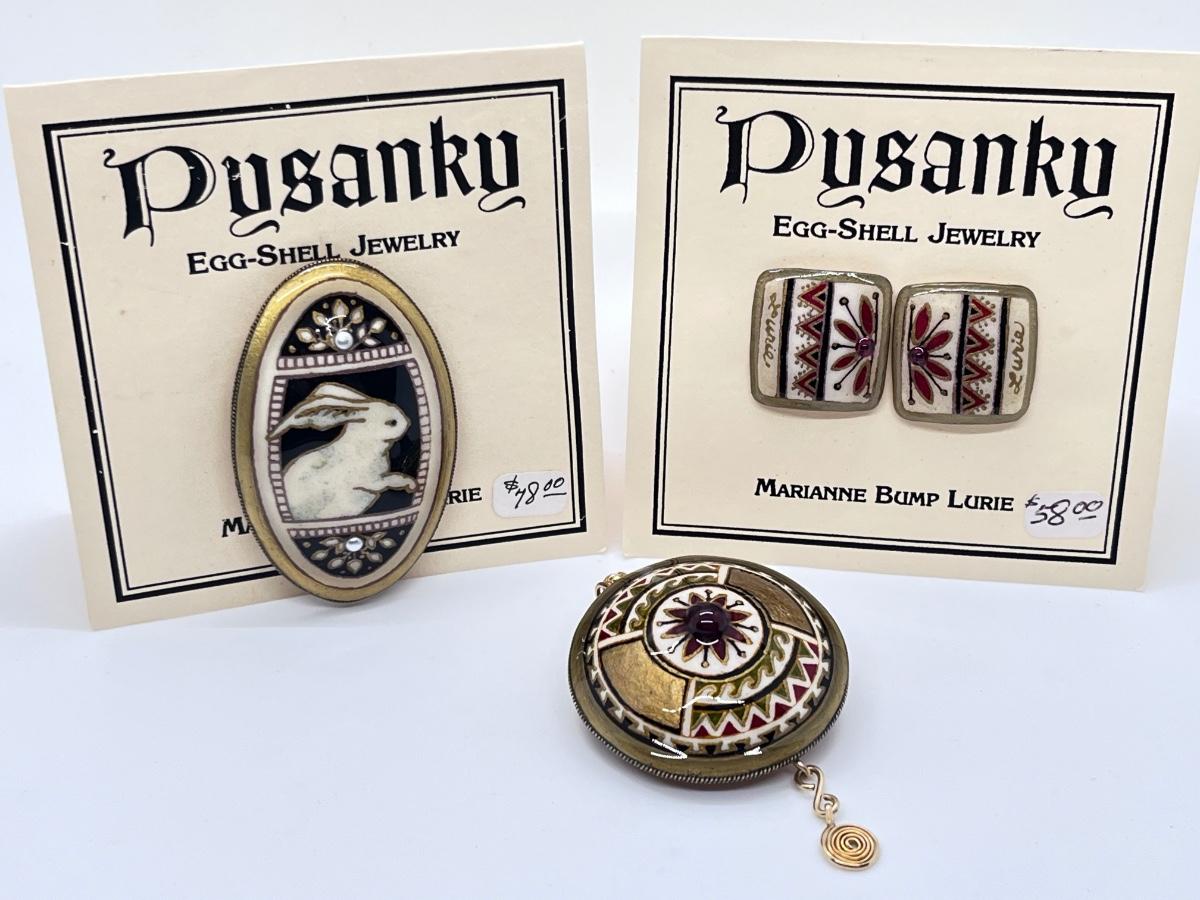 LOT 172J: Awesome Pysanky Signed Handmade Eggshell Jewelry-Pins and a Pendant