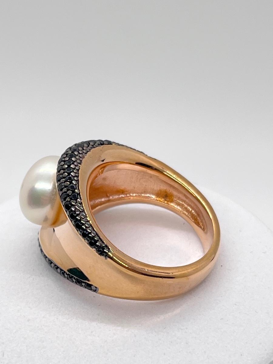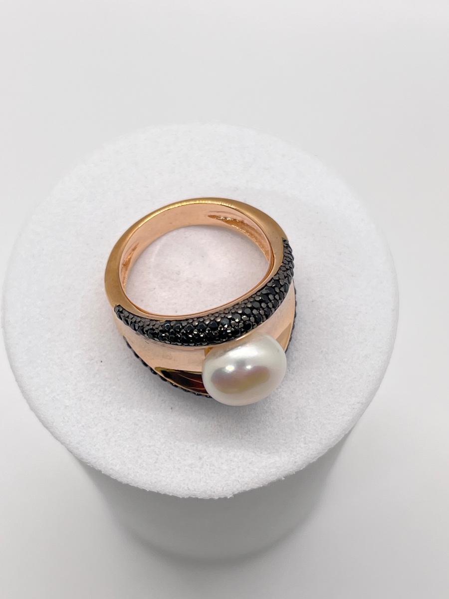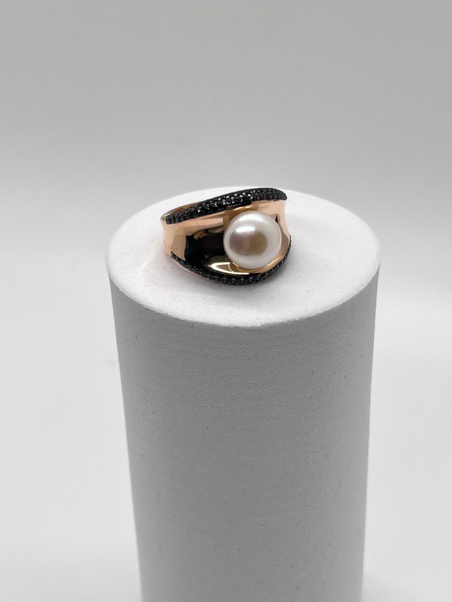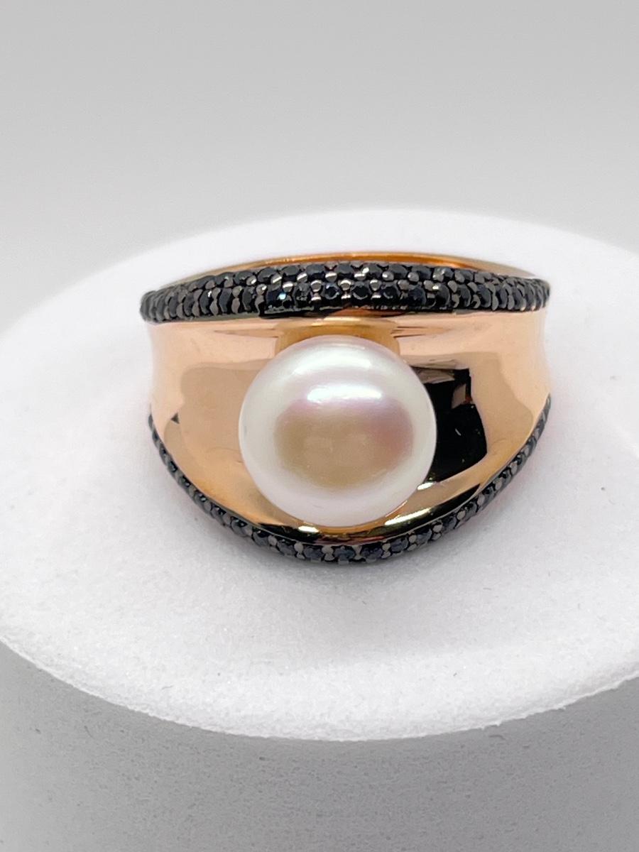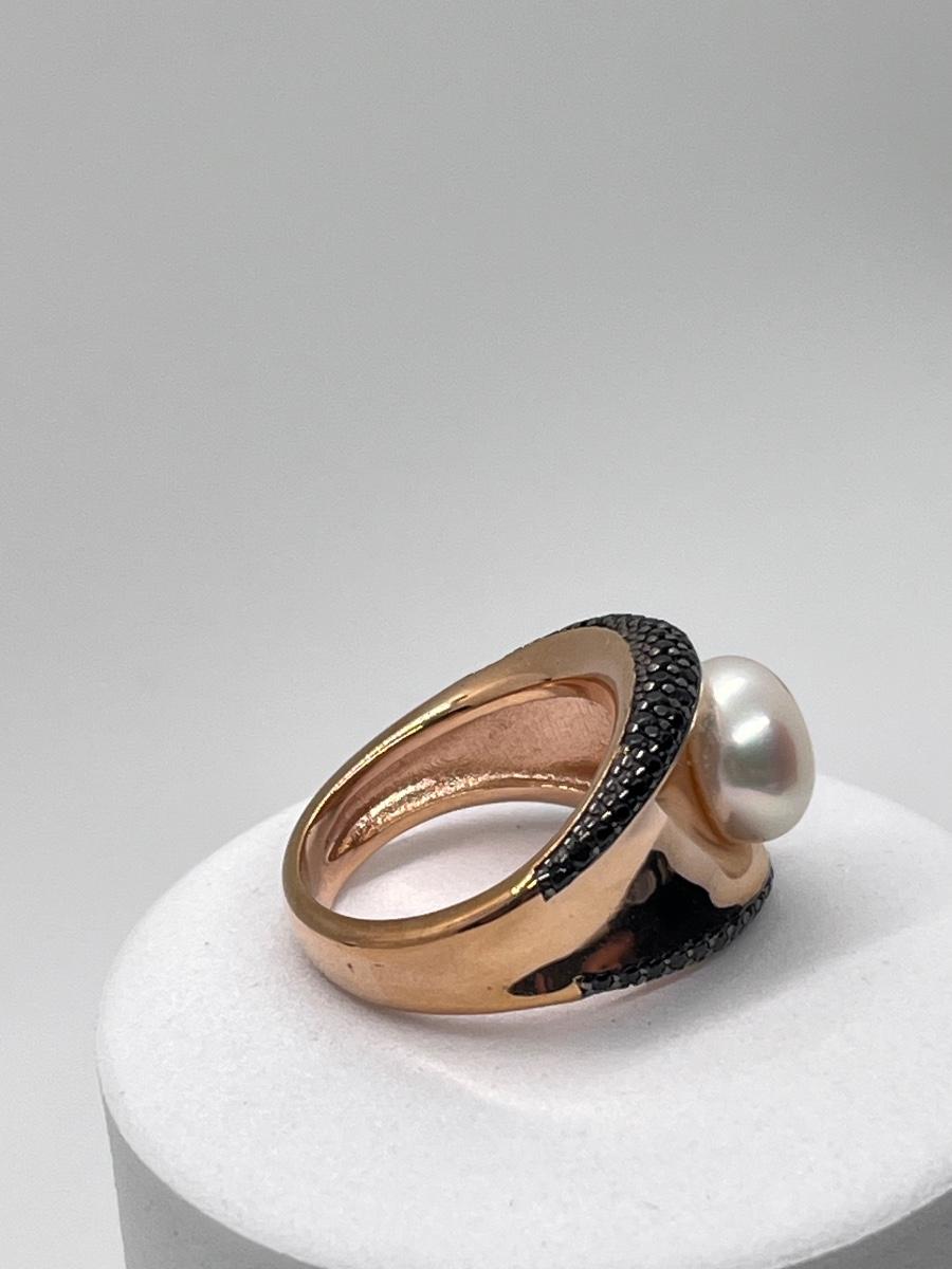 LOT 174J: Honora Cultered Pearl Black Spinel Concave Bronze Ring Size 8