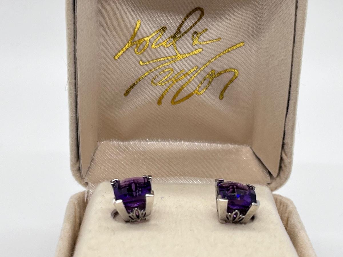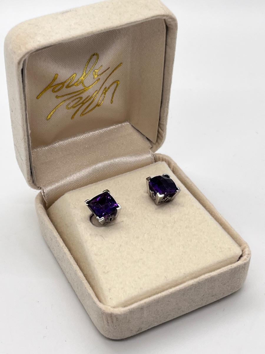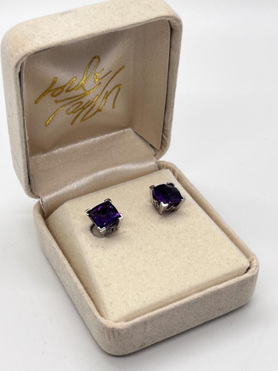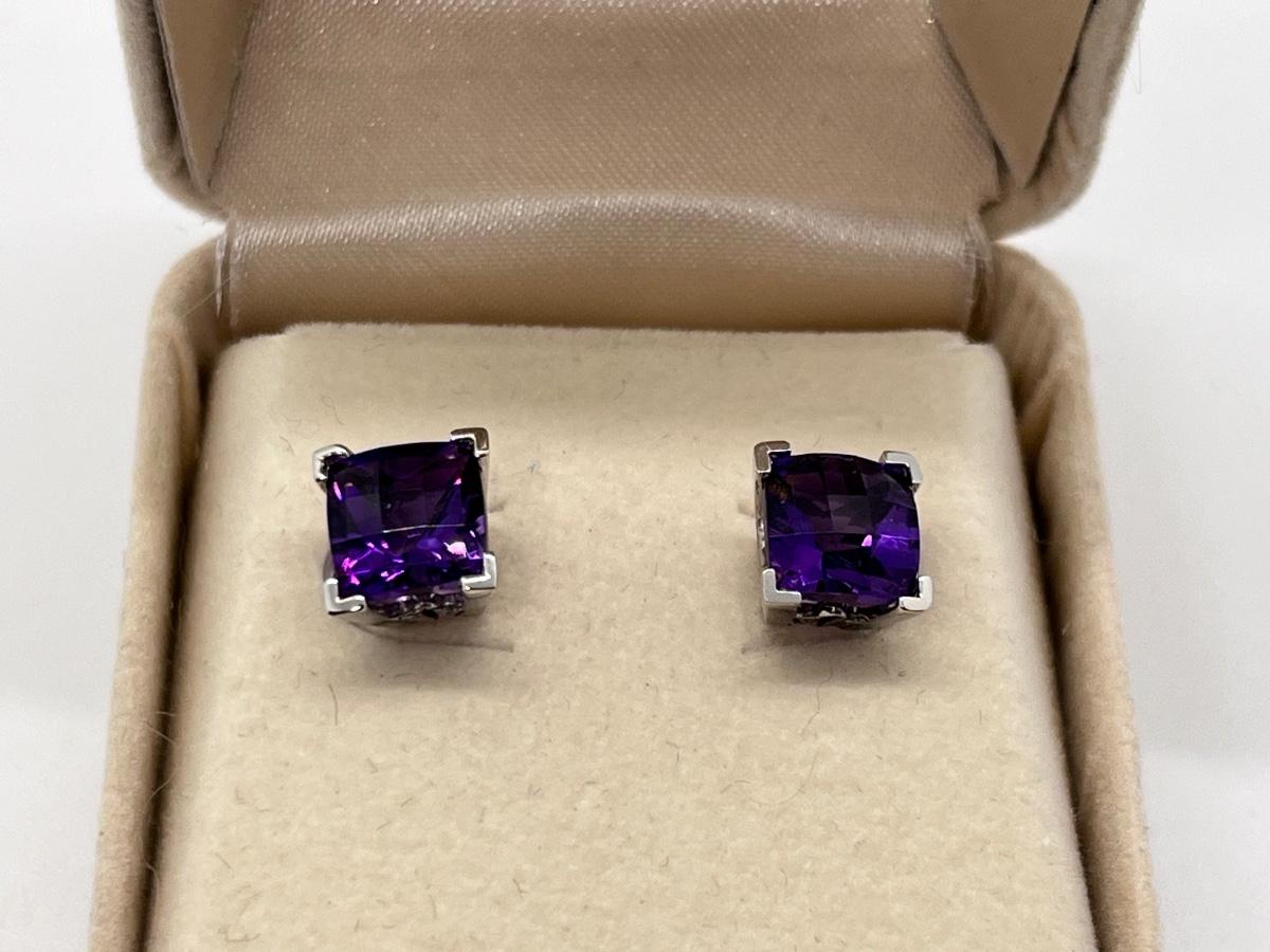 LOT 176J: 14K White Gold Amethyst Pierced Earrings