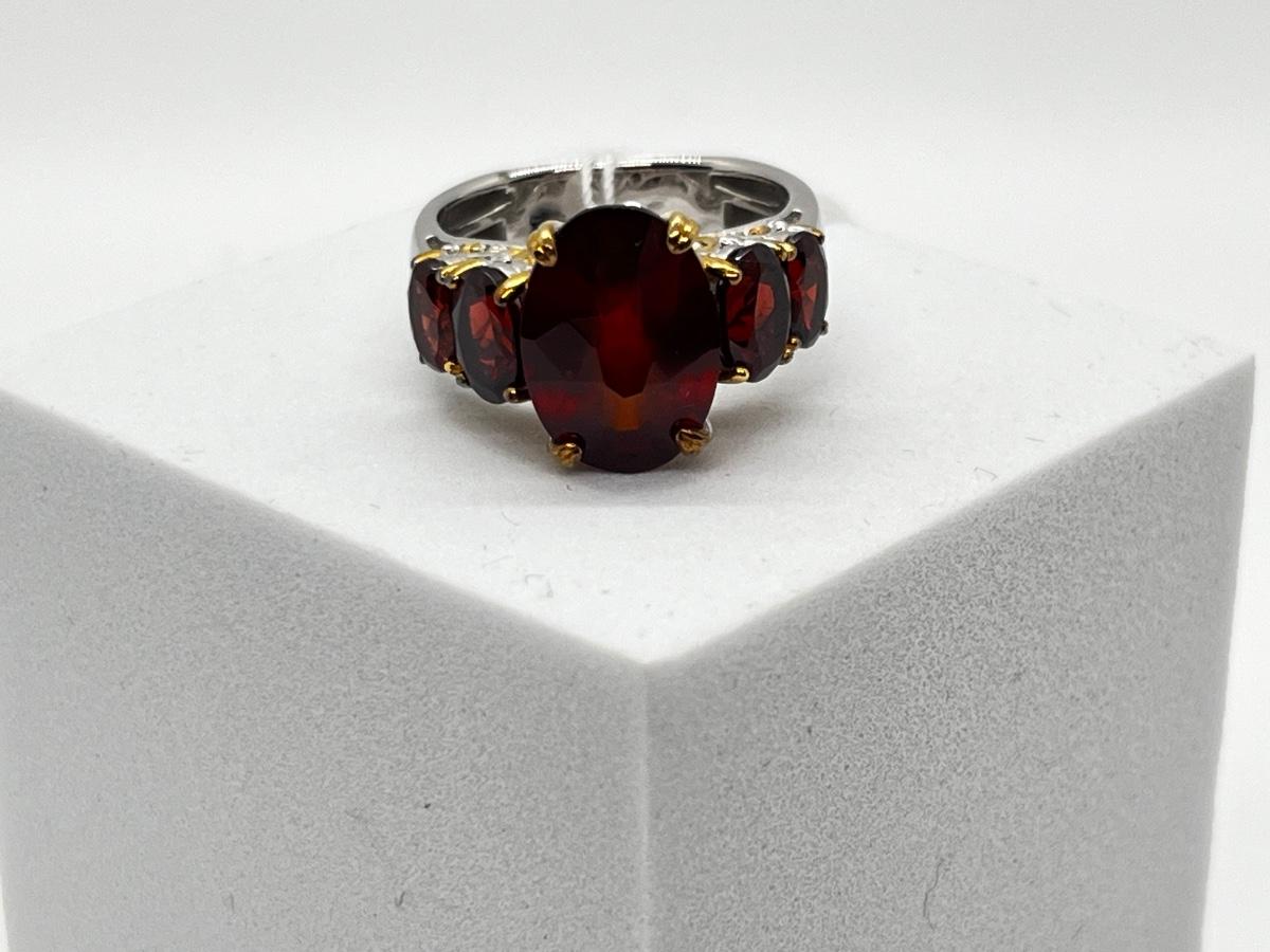 LOT 181J: NEW! Hessonite Garnet 5 Stone Ring-Size 8-925 NH Gems rn Vogue