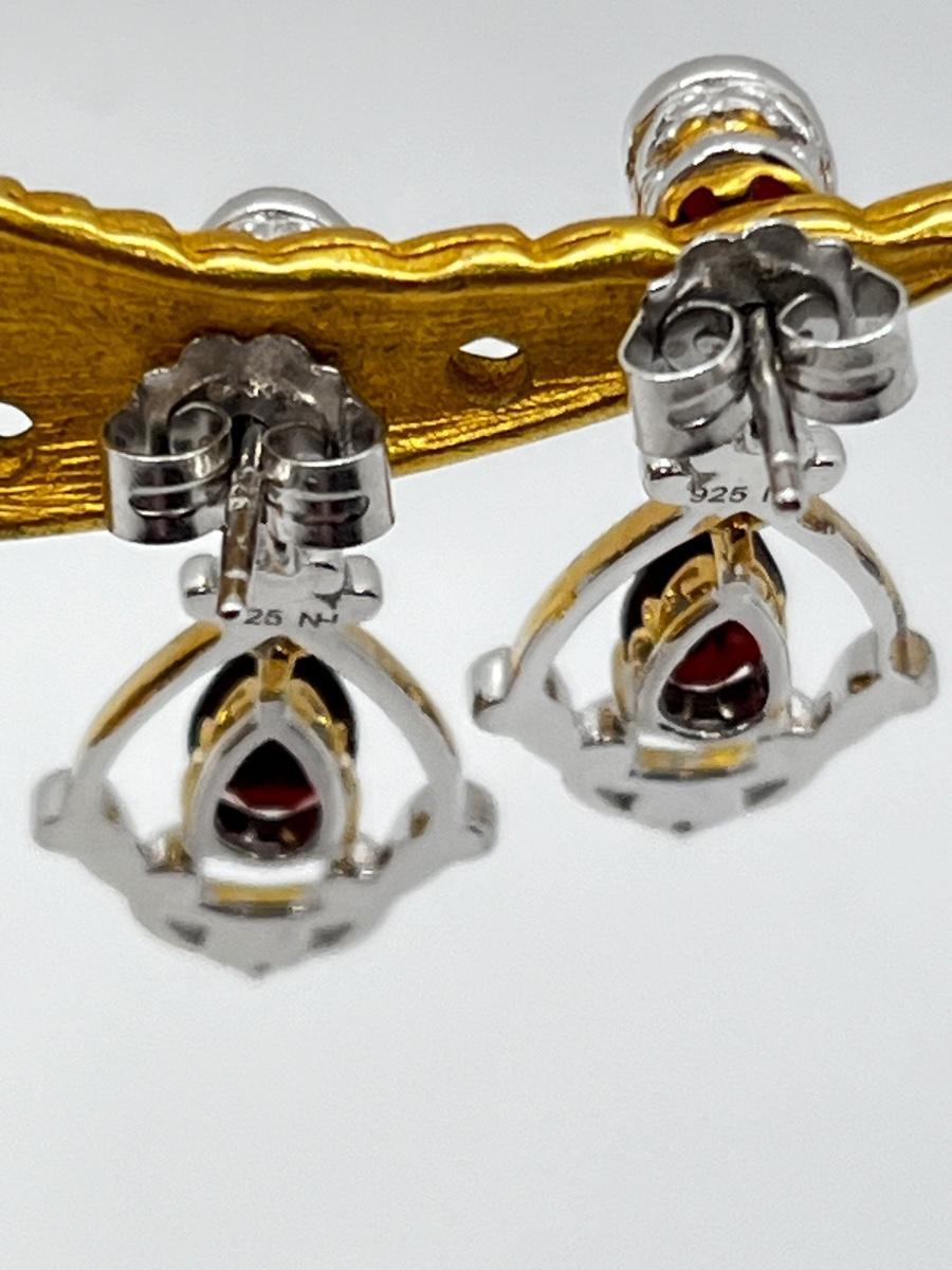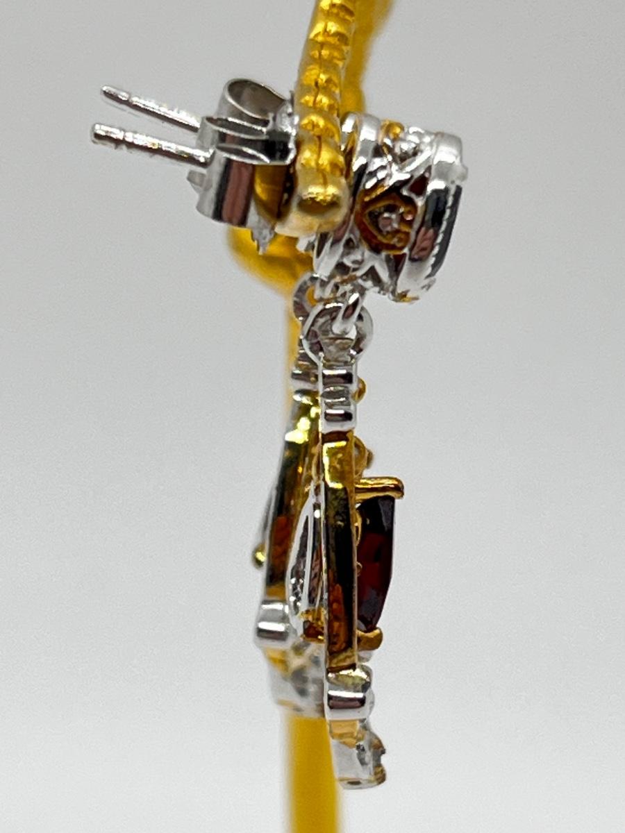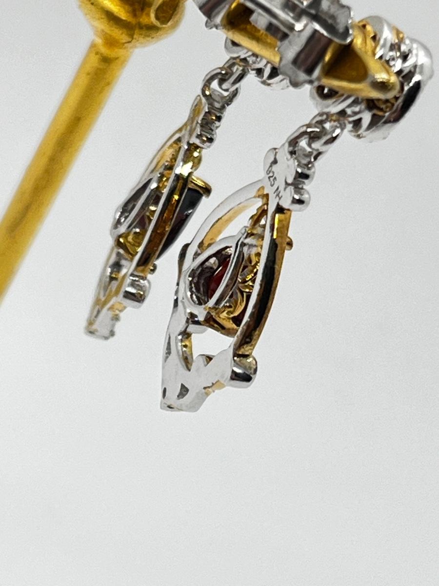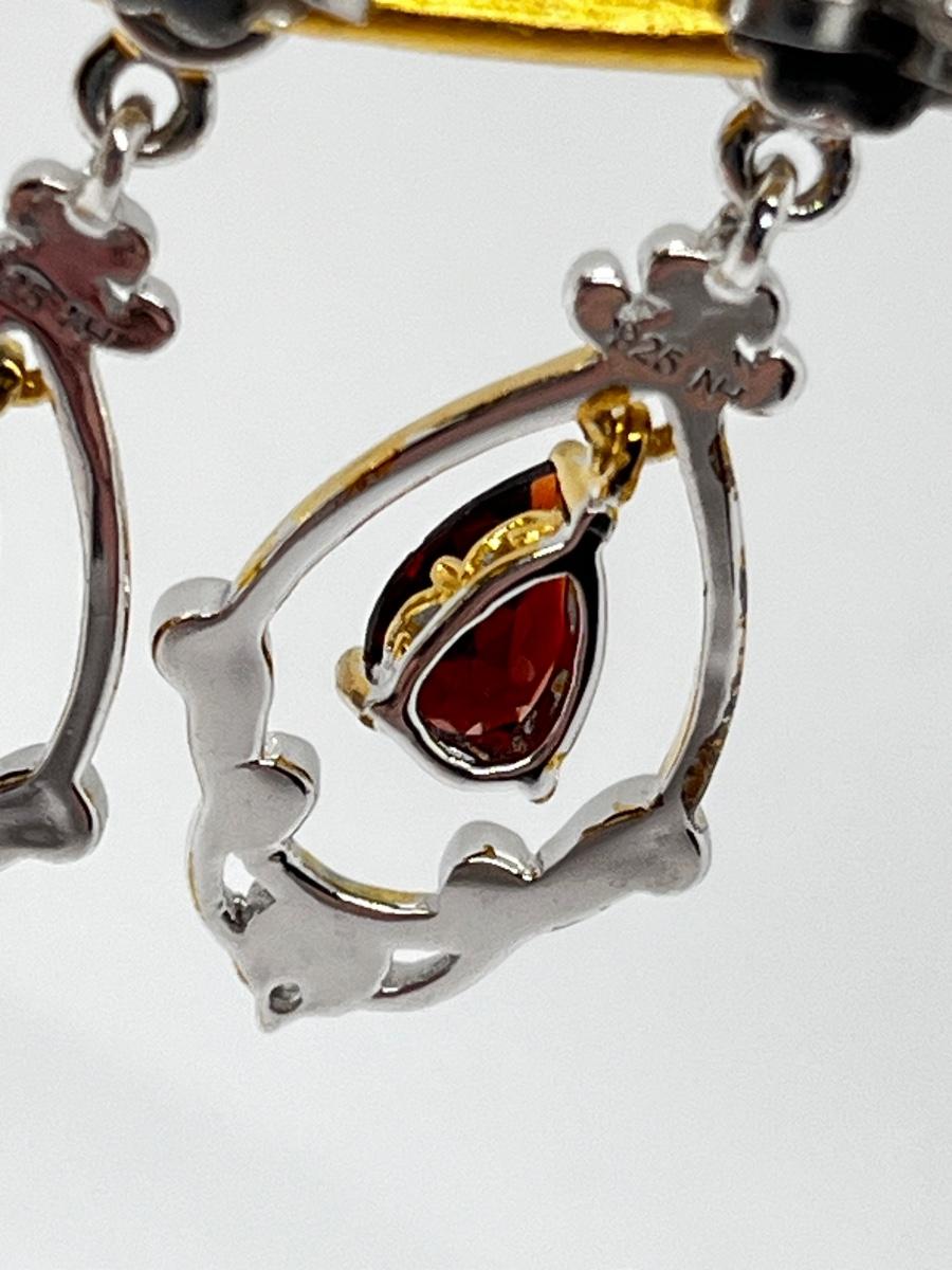 LOT 183J: NEW! Spectacular Garnet Filigree Two Toned Drop Earrings-18K Gold overlay on 925 Sterling and Palladium Almondite Garnet Gems en Vogue