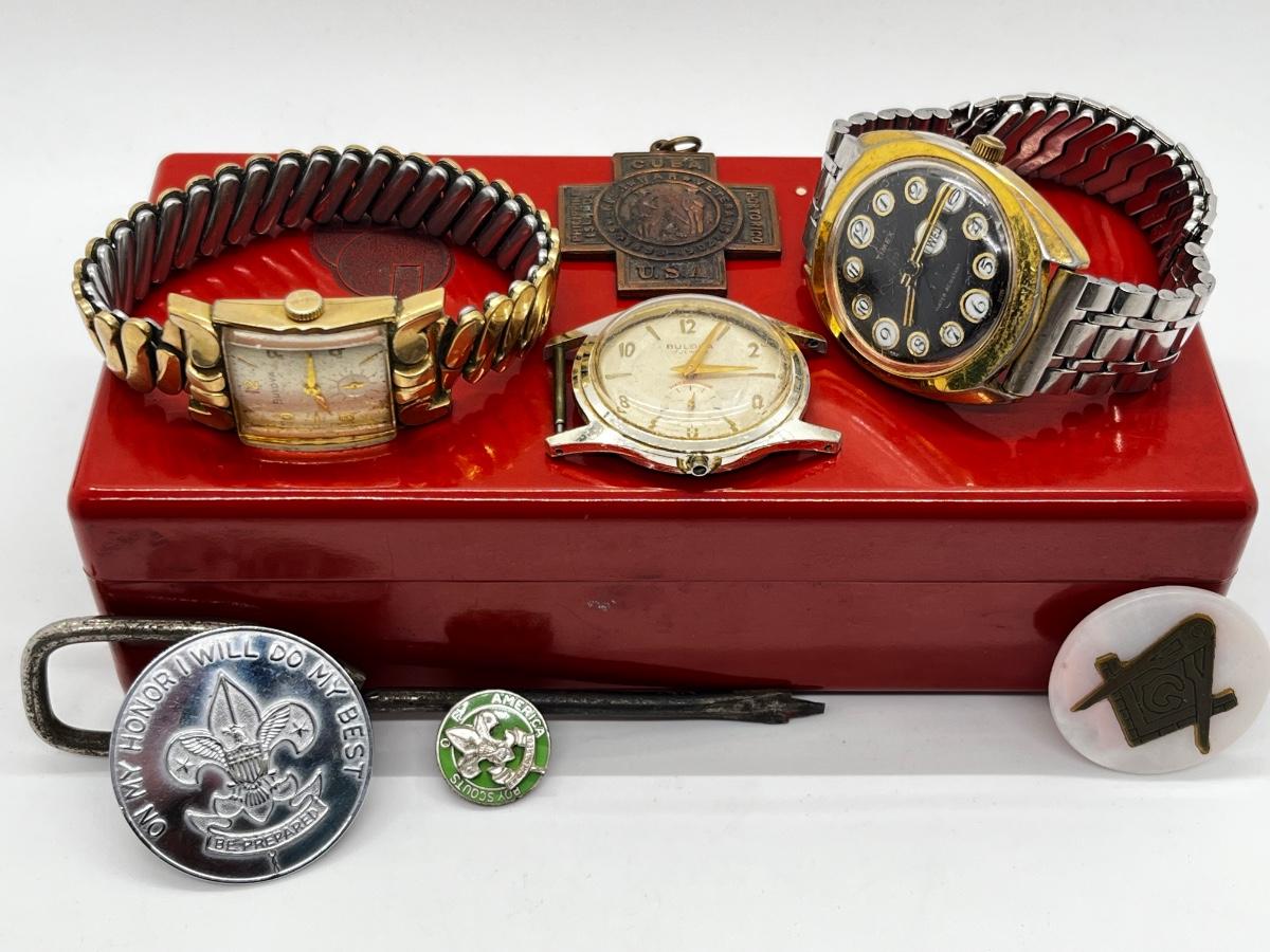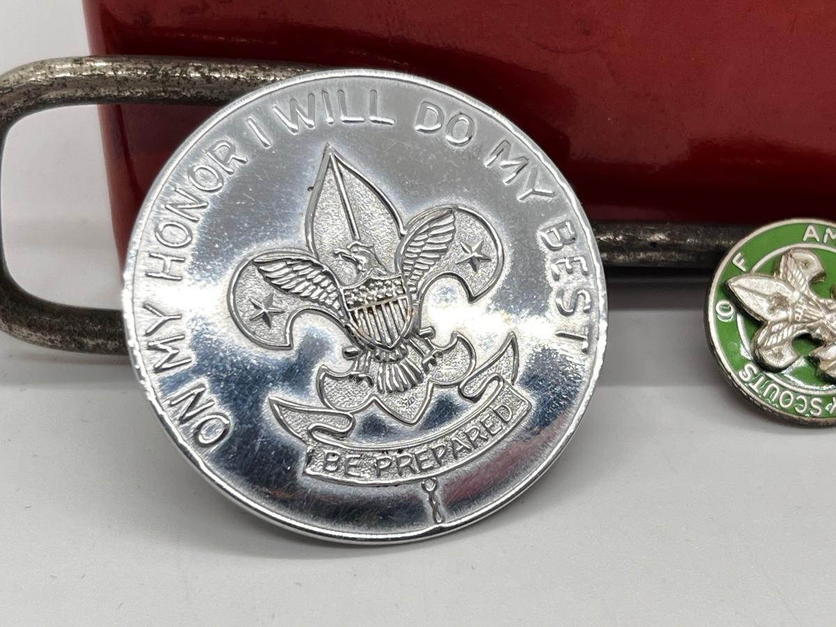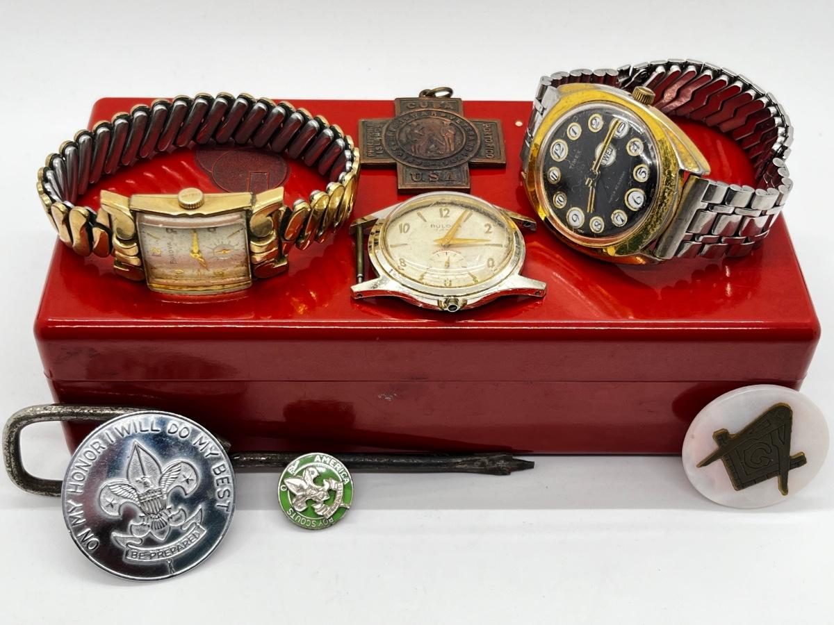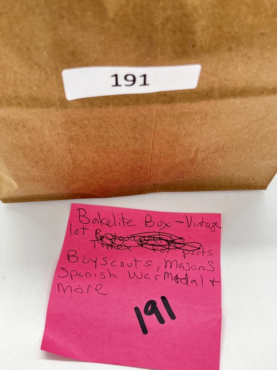 LOT 191J: Vintage Lot - Bakelite Box, Boy Scouts, Mason’s Spanish War Medal & More