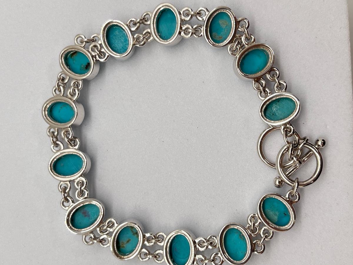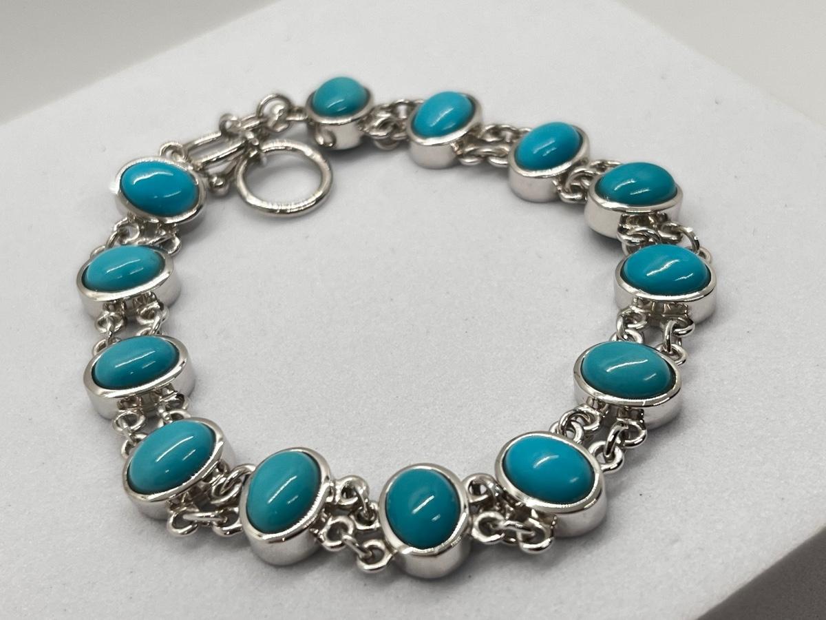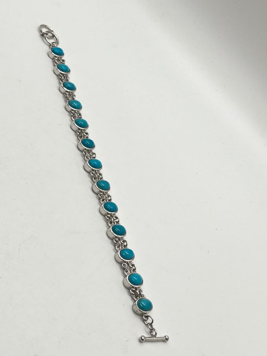 LOT 192J: NEW! Sterling Silver 8” Turquoise Toggle Bracelet