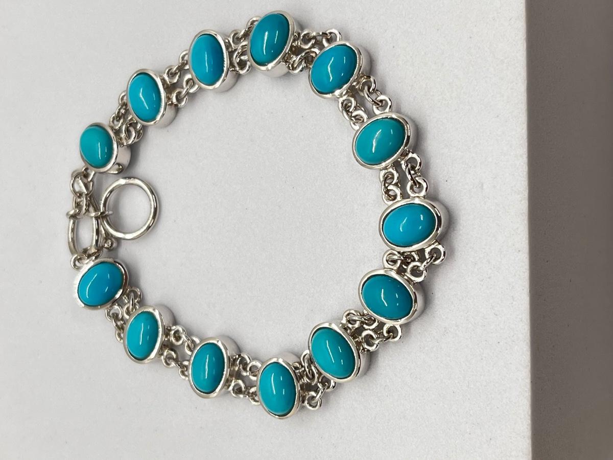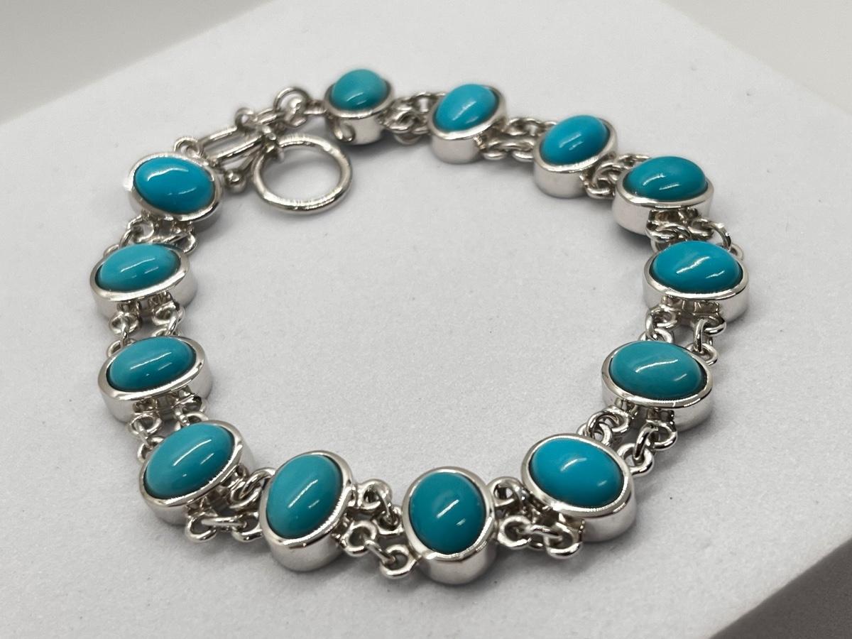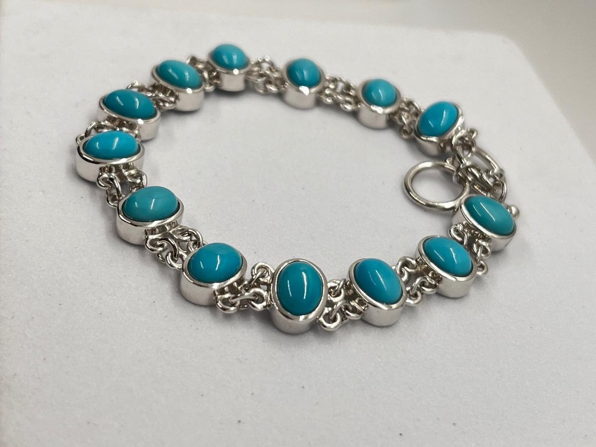 LOT 192J: NEW! Sterling Silver 8” Turquoise Toggle Bracelet