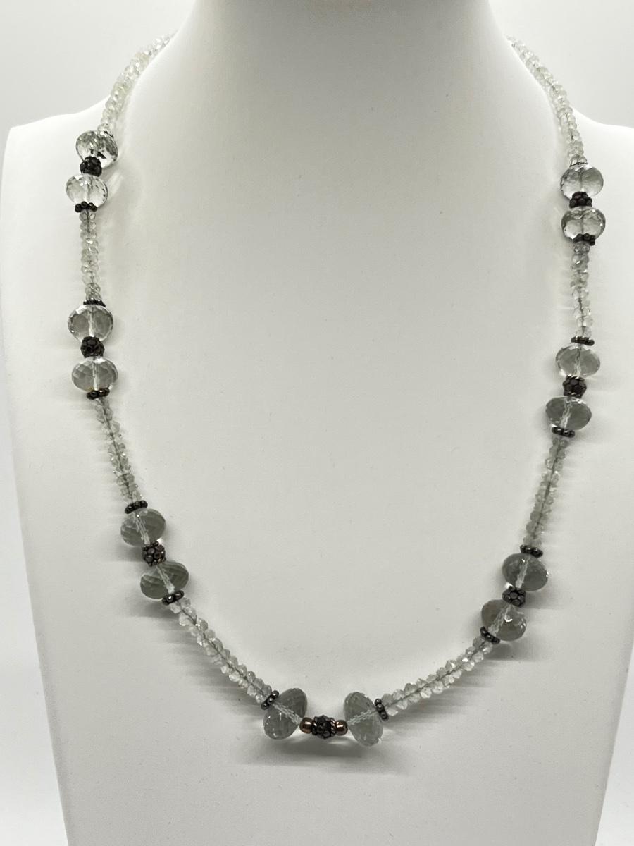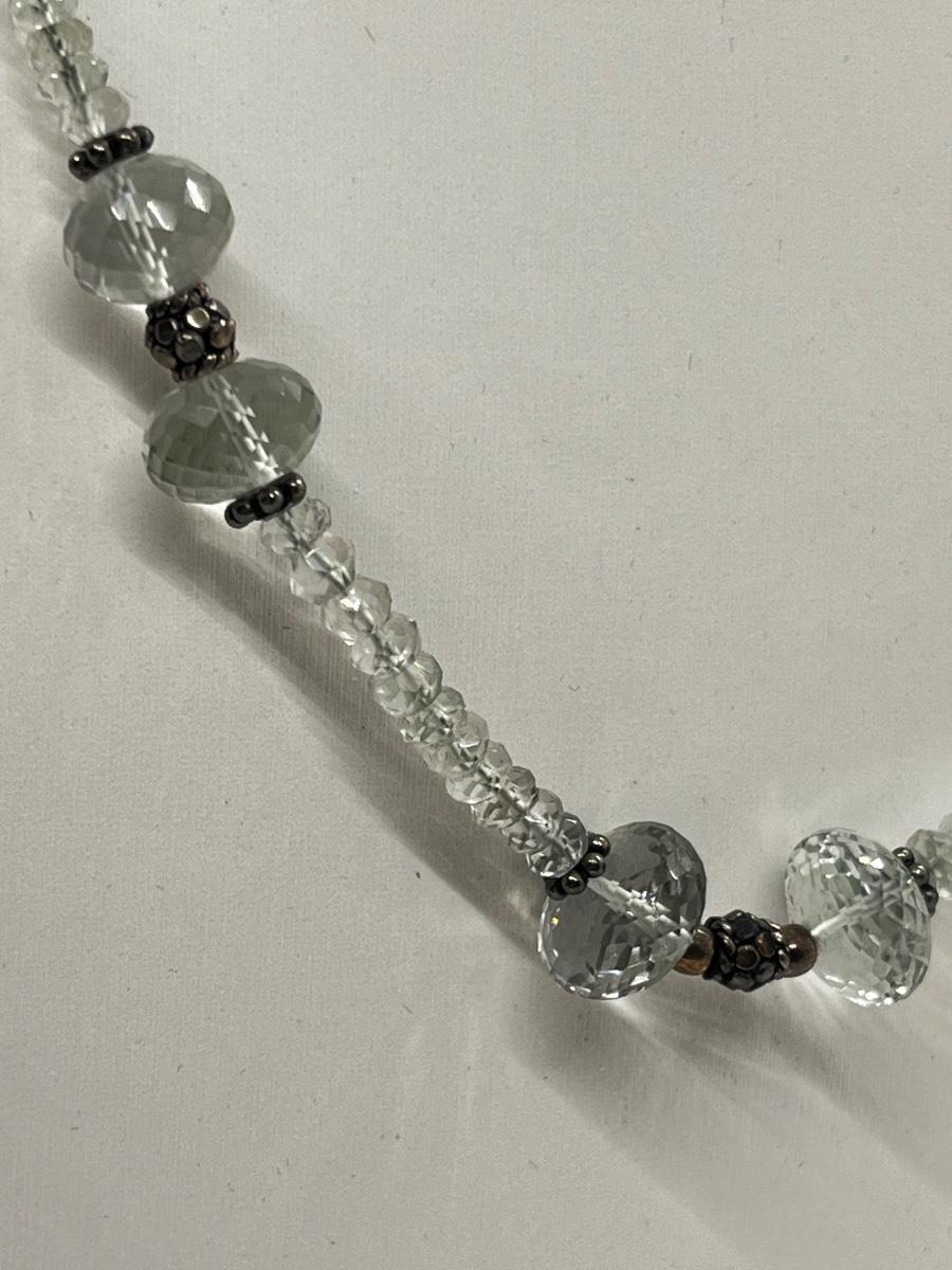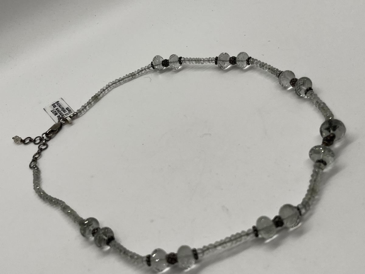 LOT 194J: Pale Green Faceted Crystal Bead Necklace w/ Sterling Silver Clasp. - 17-20”