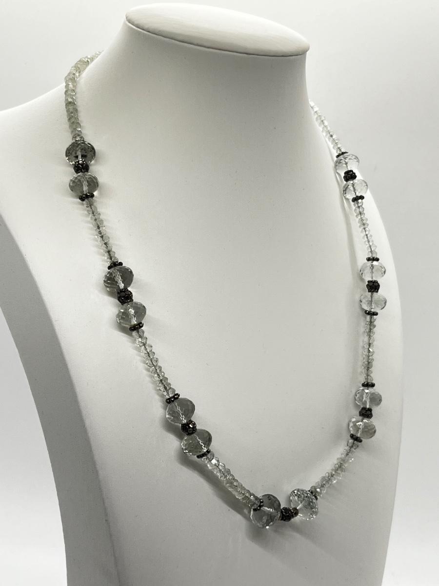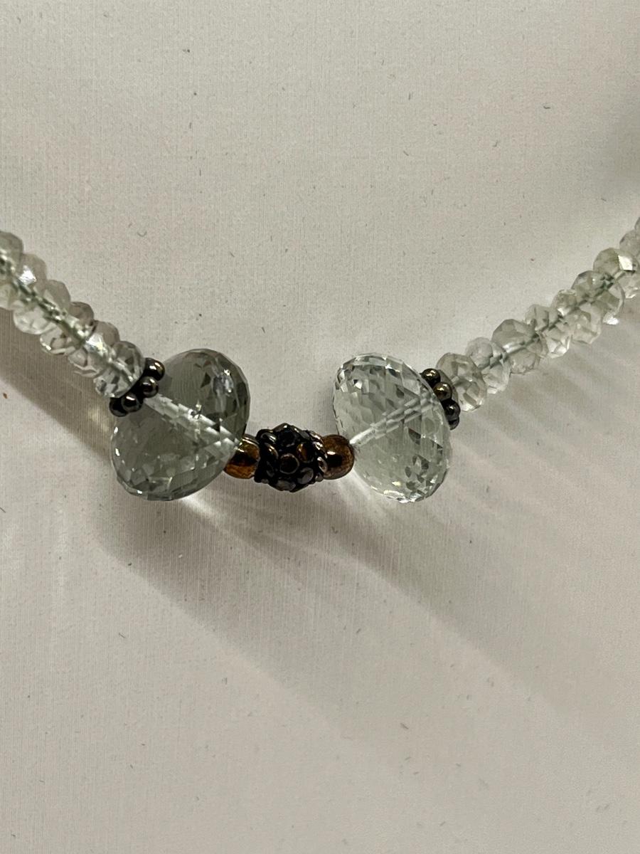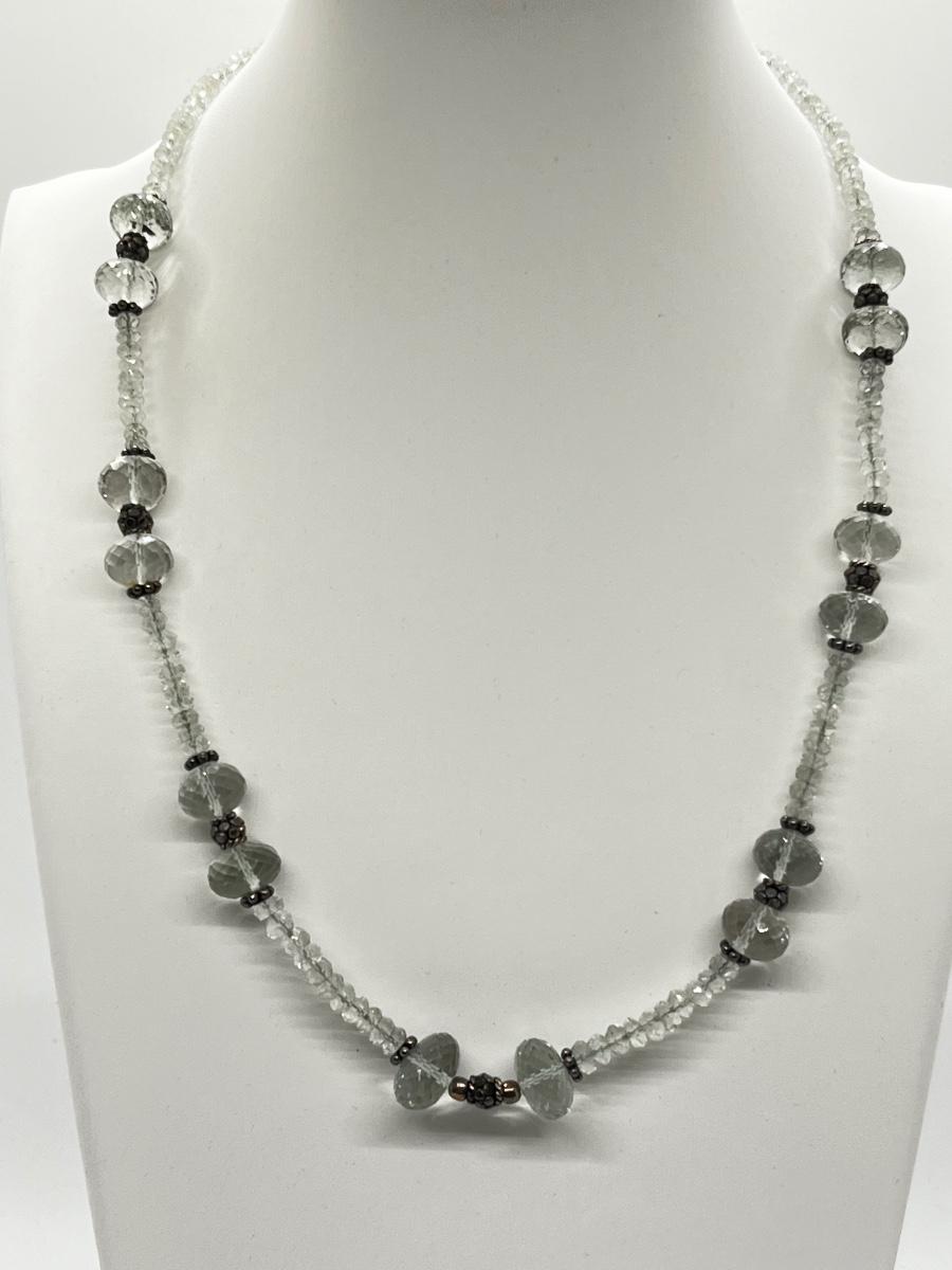 LOT 194J: Pale Green Faceted Crystal Bead Necklace w/ Sterling Silver Clasp. - 17-20”