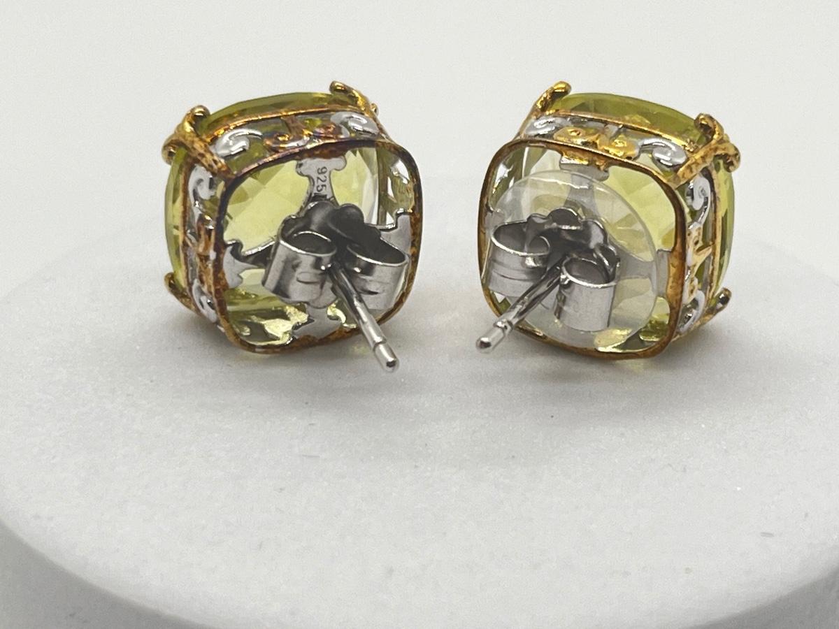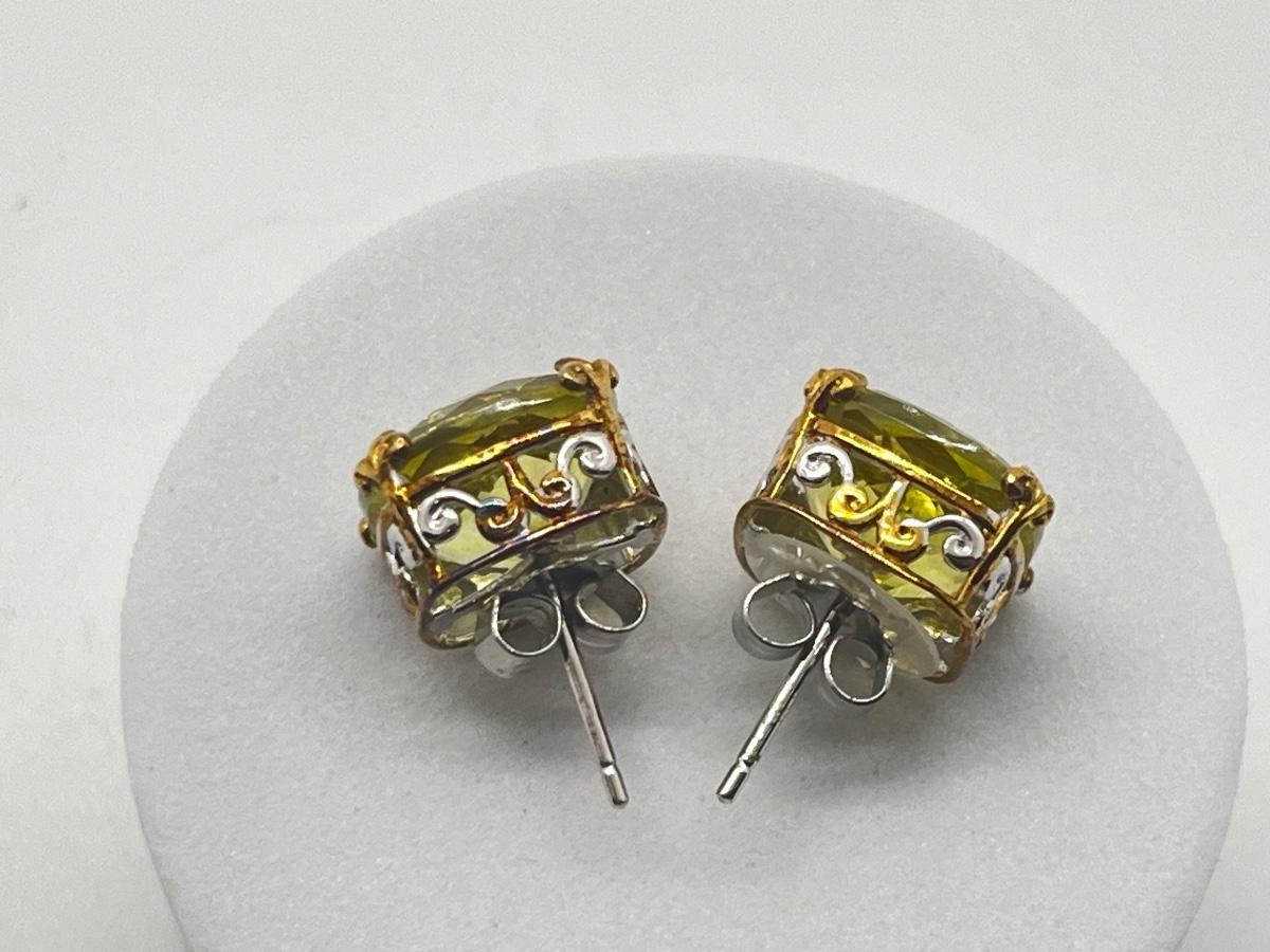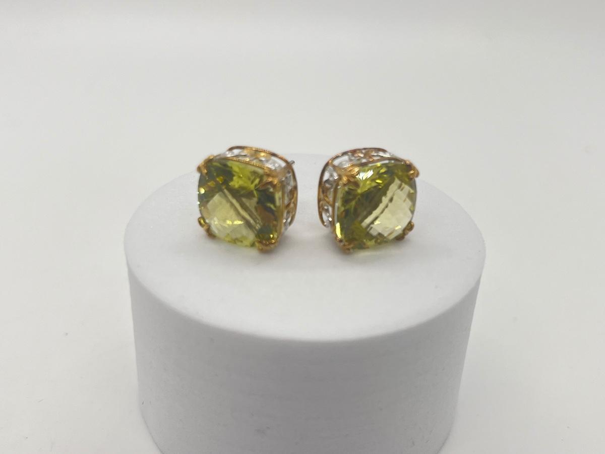 LOT 204J: 925 Green Amethyst (Prasiolite) Cushion Cut Earrings