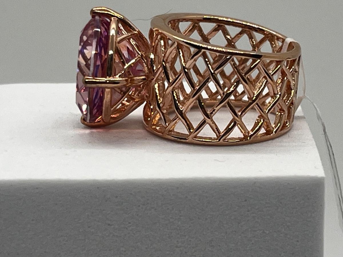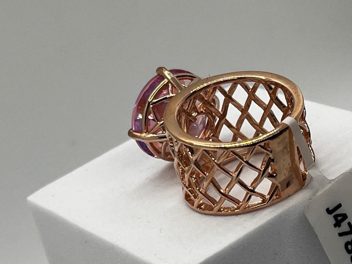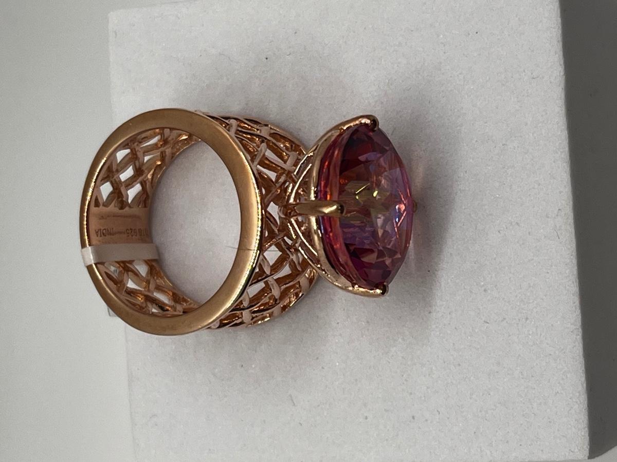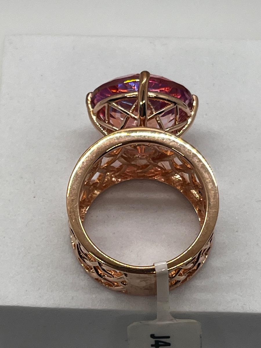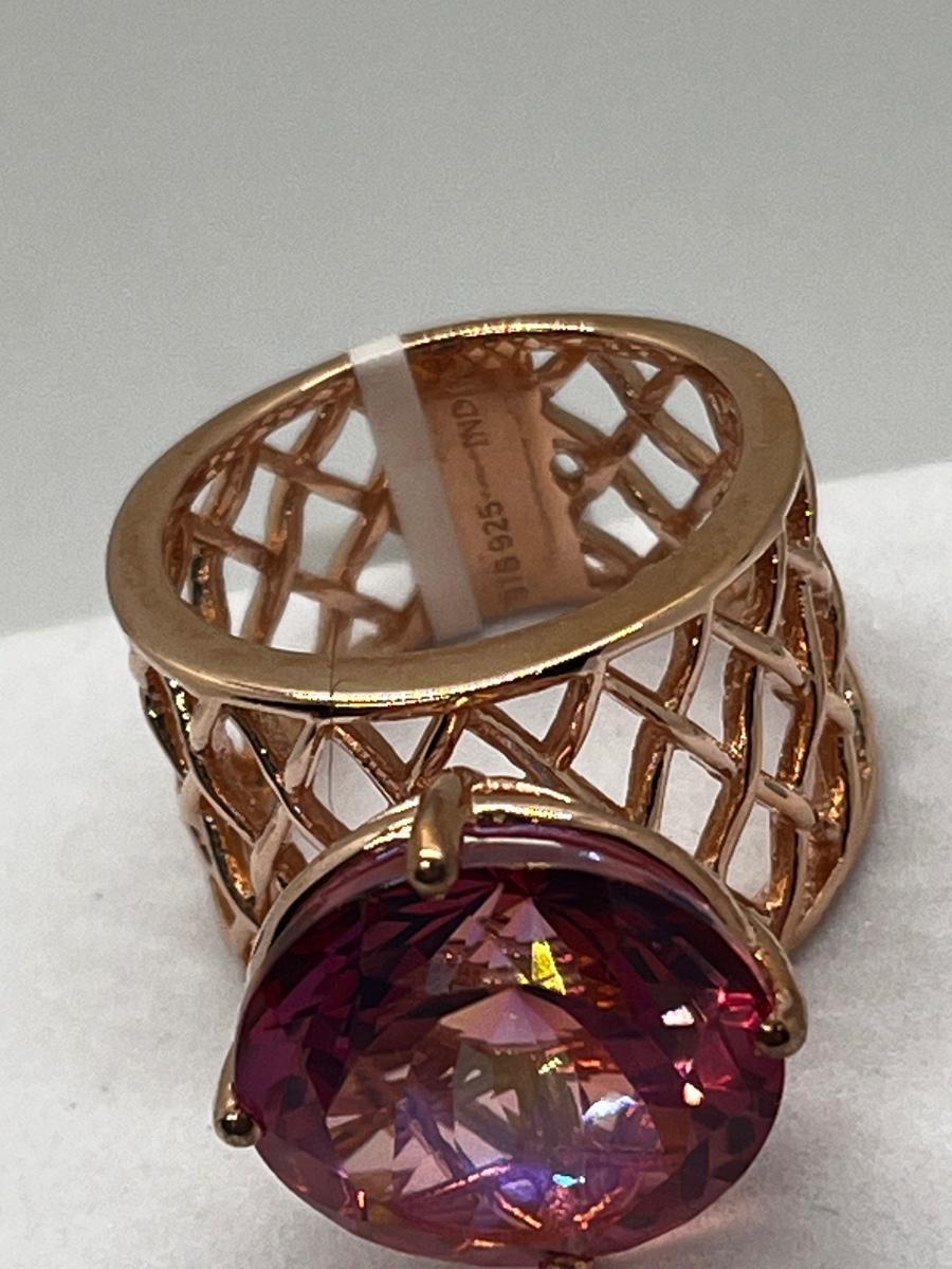 LOT 225: Sterling Silver Large Pink Stone Cocktail Size 8 Ring