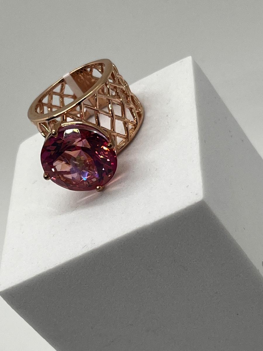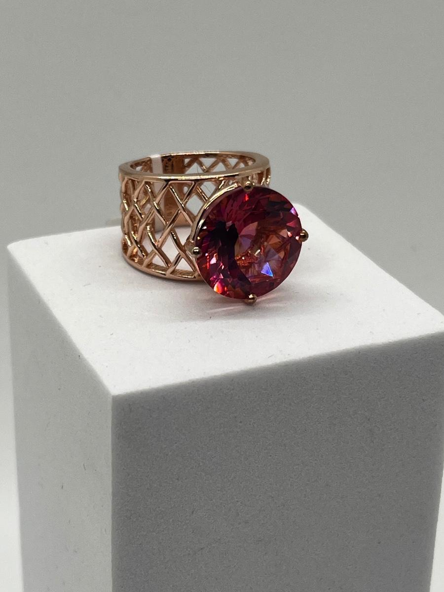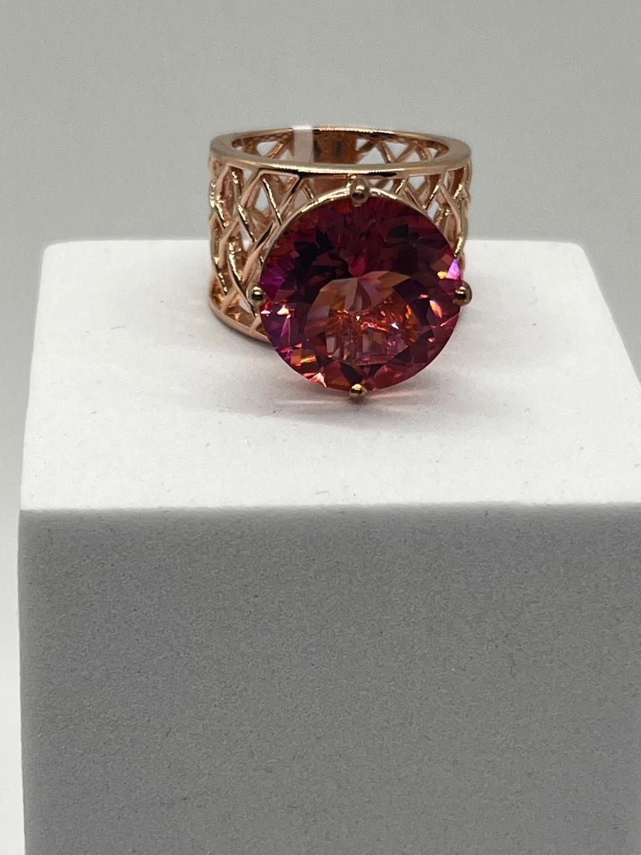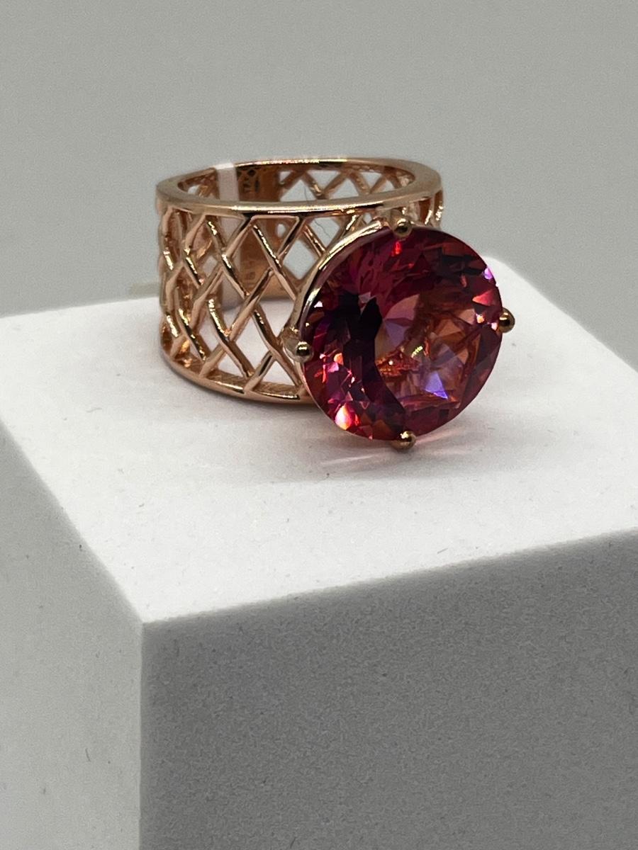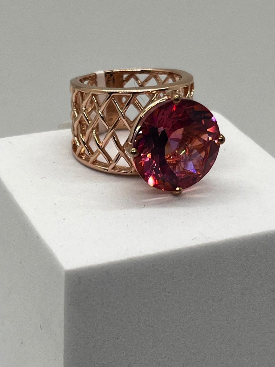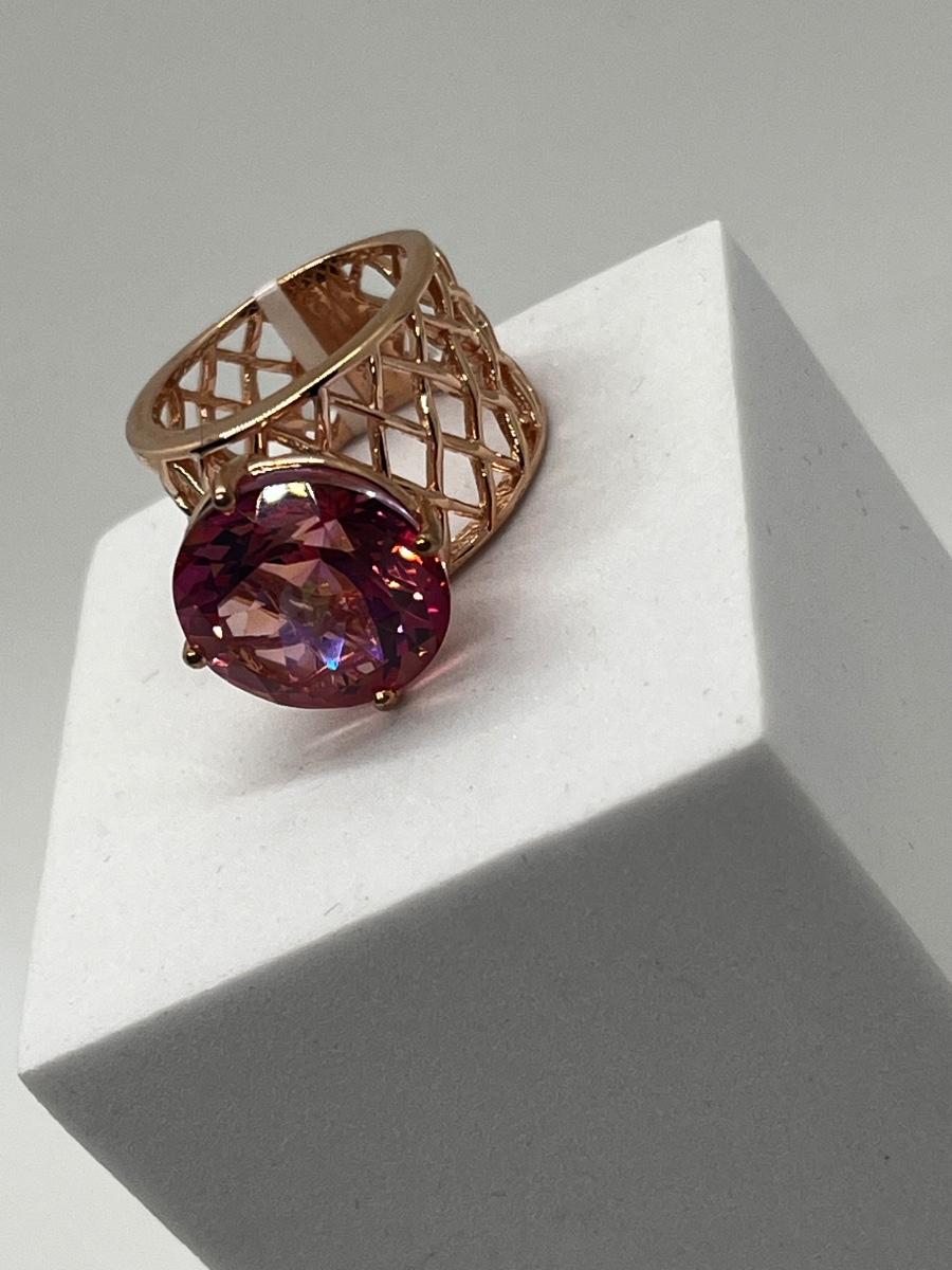 LOT 225: Sterling Silver Large Pink Stone Cocktail Size 8 Ring