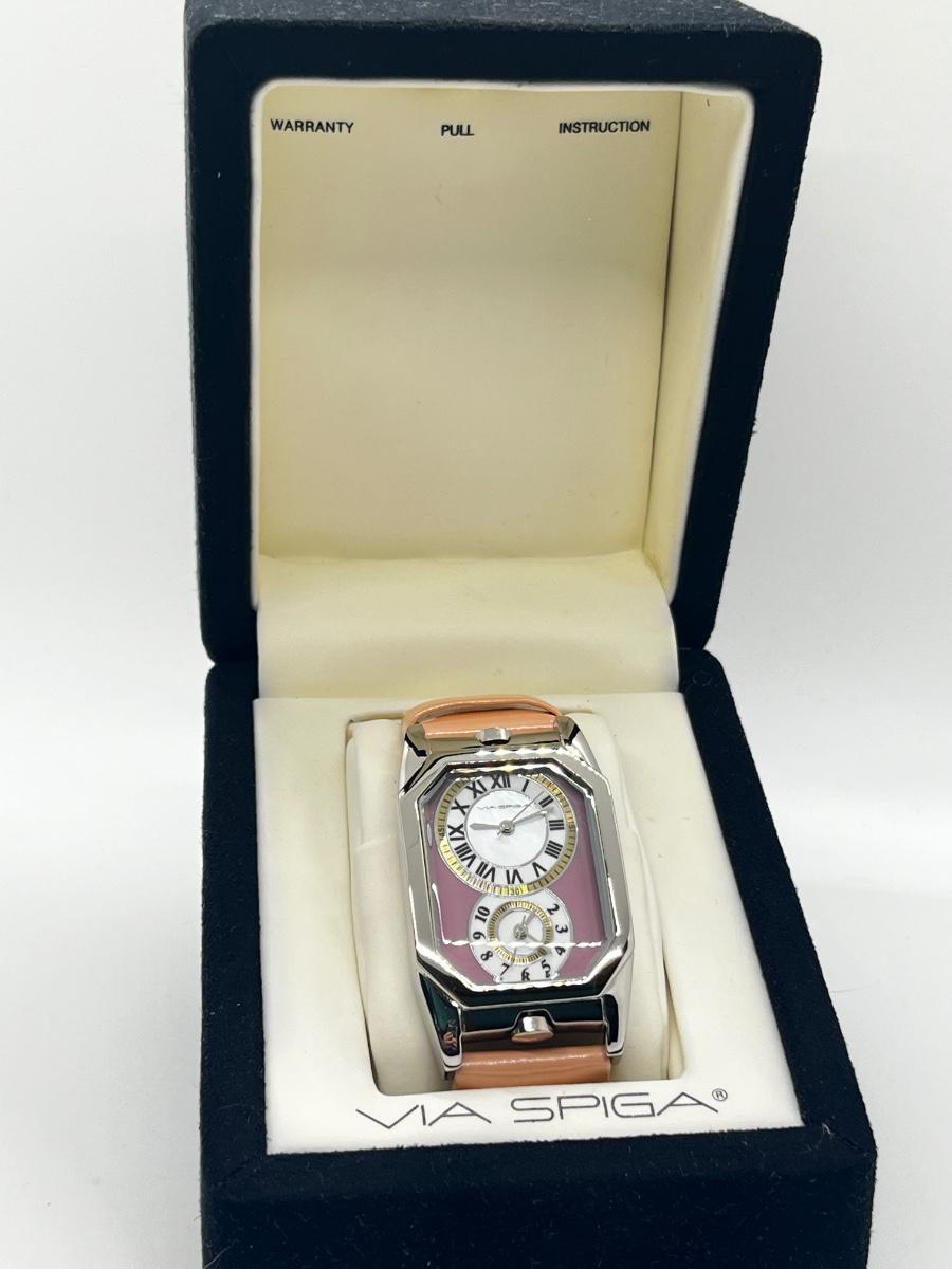 LOT 236J: Via Spiga Leather Banded Multi-Clock Face Watch