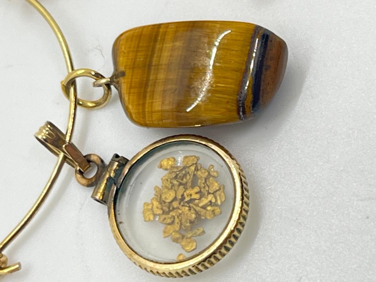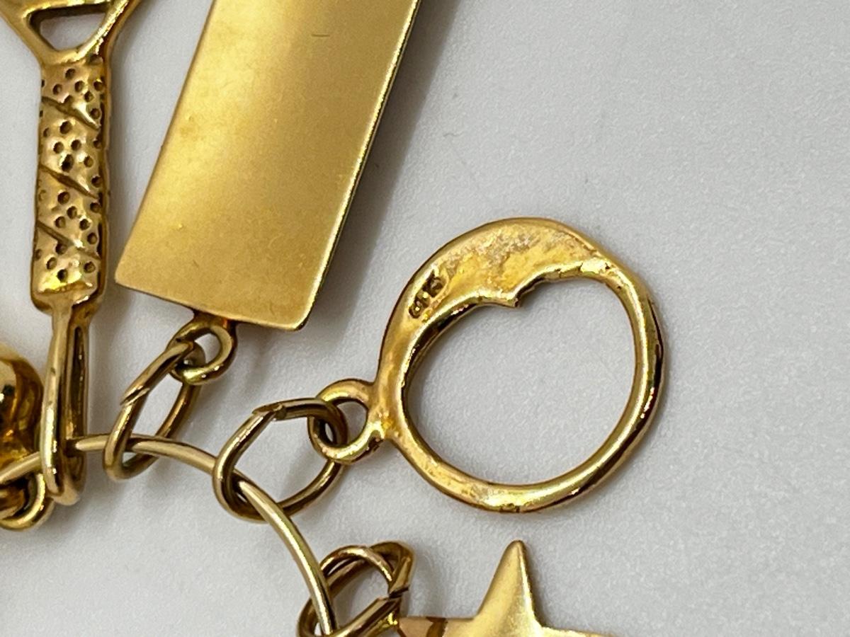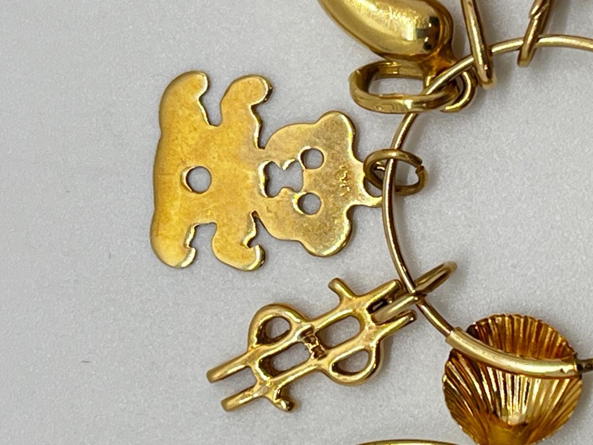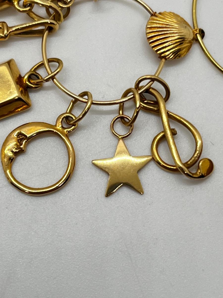 LOT 252J: 14K Double Gold Charm Holder Pendant w/ Eight 14K Charms - 8.6 g and 2 others unmarked