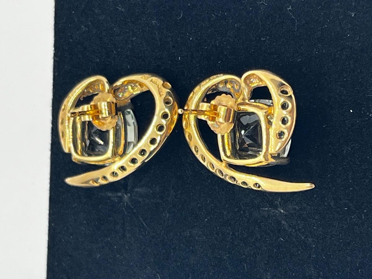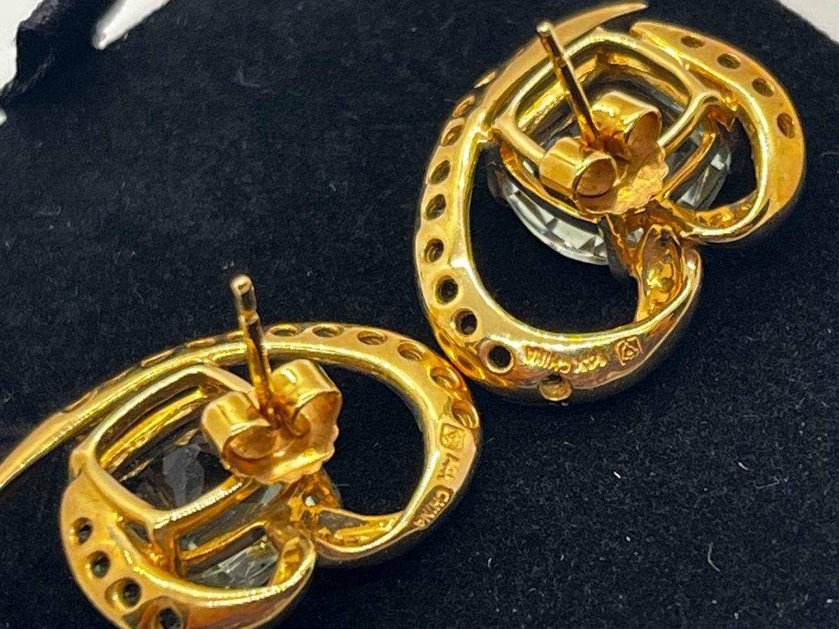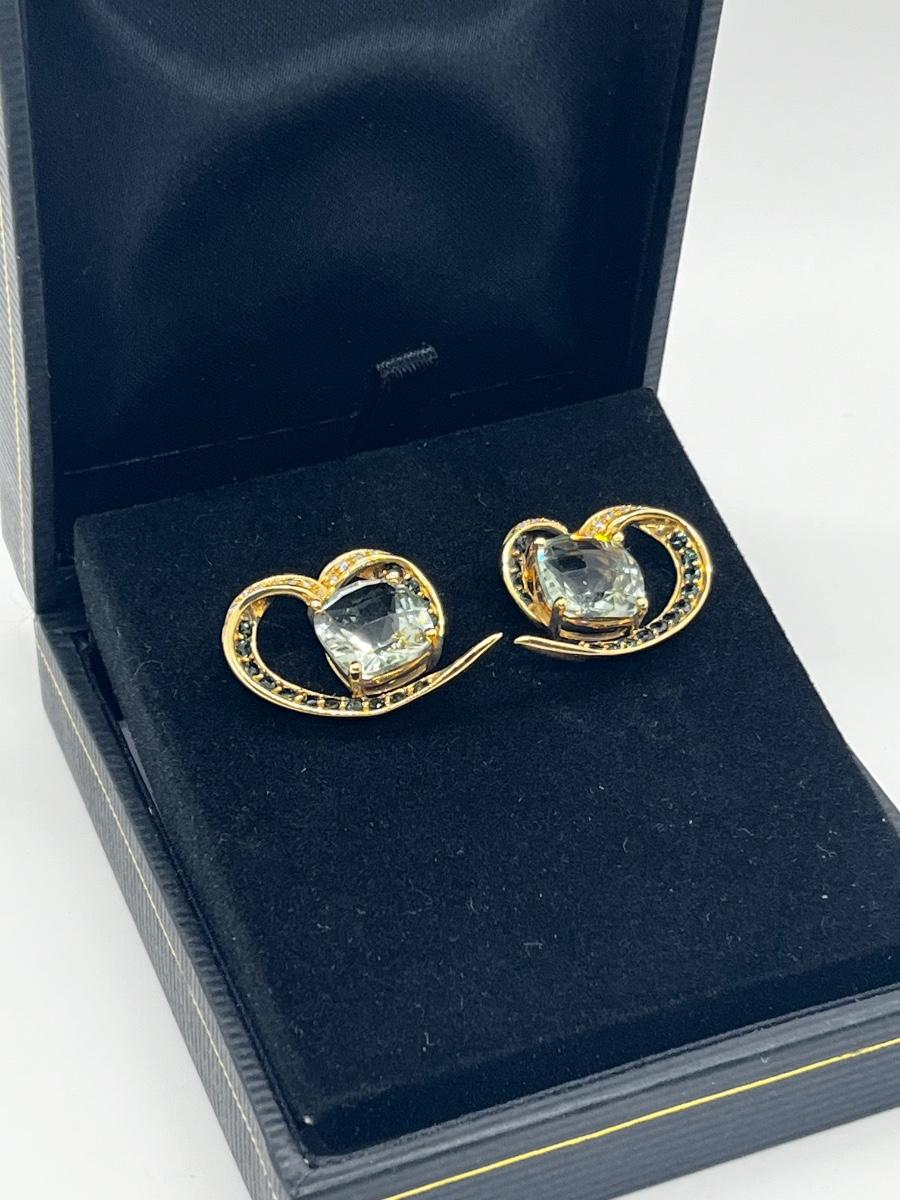LOT 253J: Big and Beautiful 14K Gold & Diamond Heart Earrings w/ Green Amethyst - 8.6 gtw