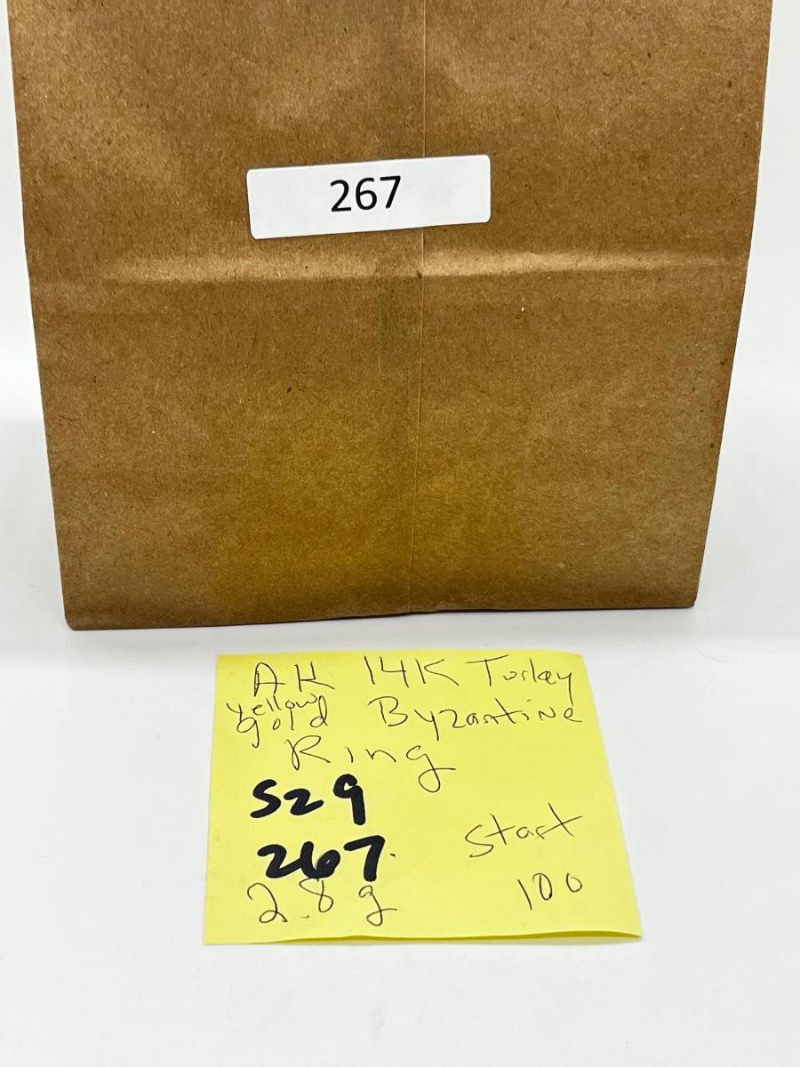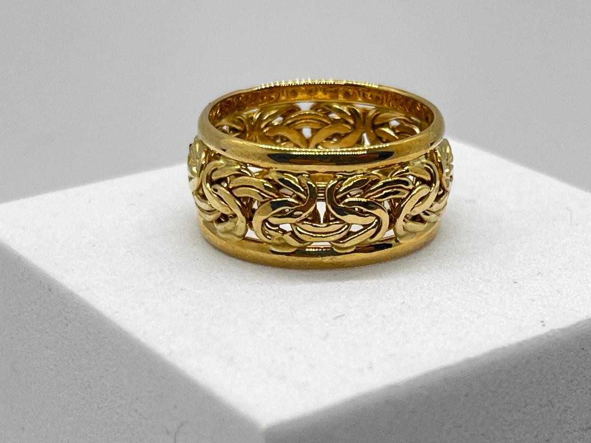 LOT 267J: 14K Yellow Gold Turkey Byzantine Size 9 Ring - 2.8 g