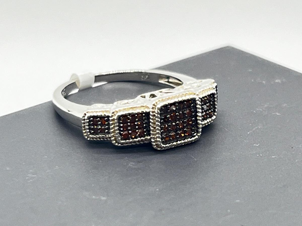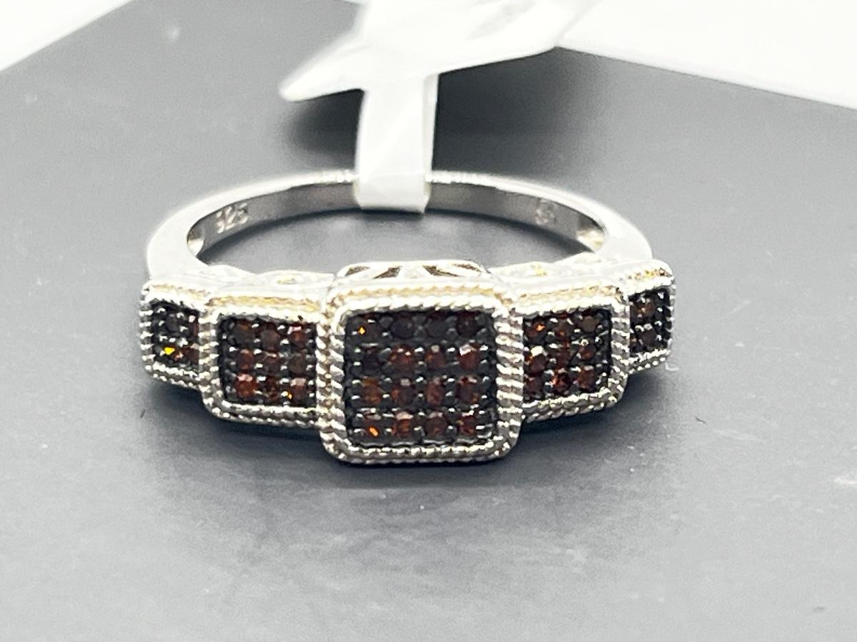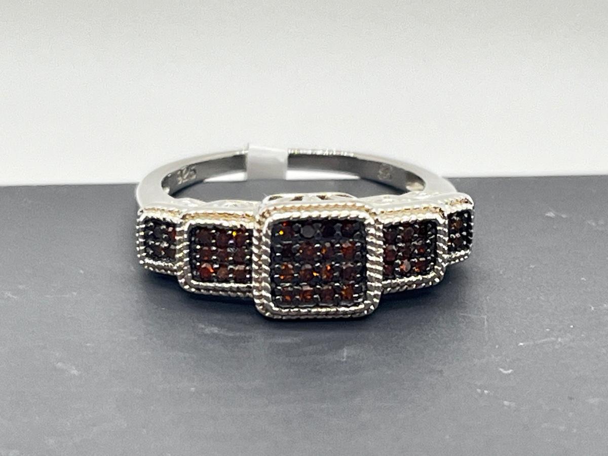 LOT 277J: Sterling Silver & Red Diamond Step Style Choice Size 8 Ring