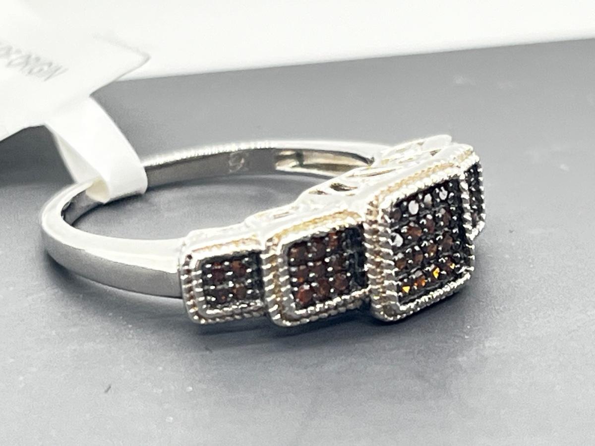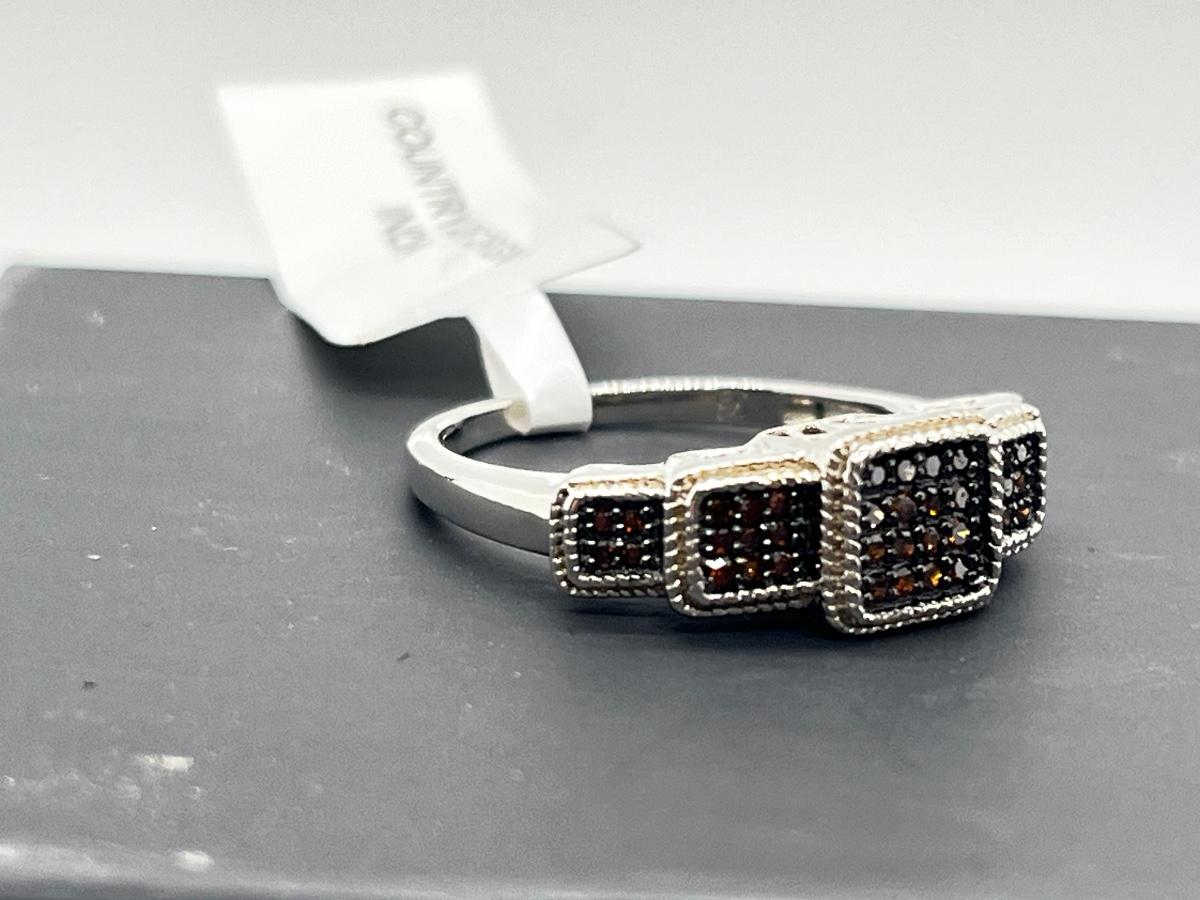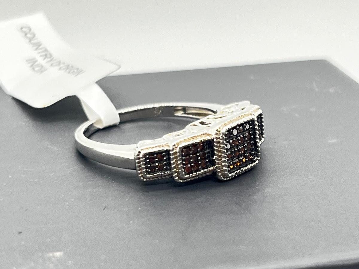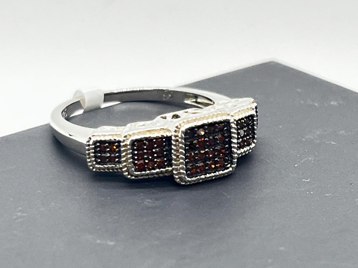 LOT 277J: Sterling Silver & Red Diamond Step Style Choice Size 8 Ring