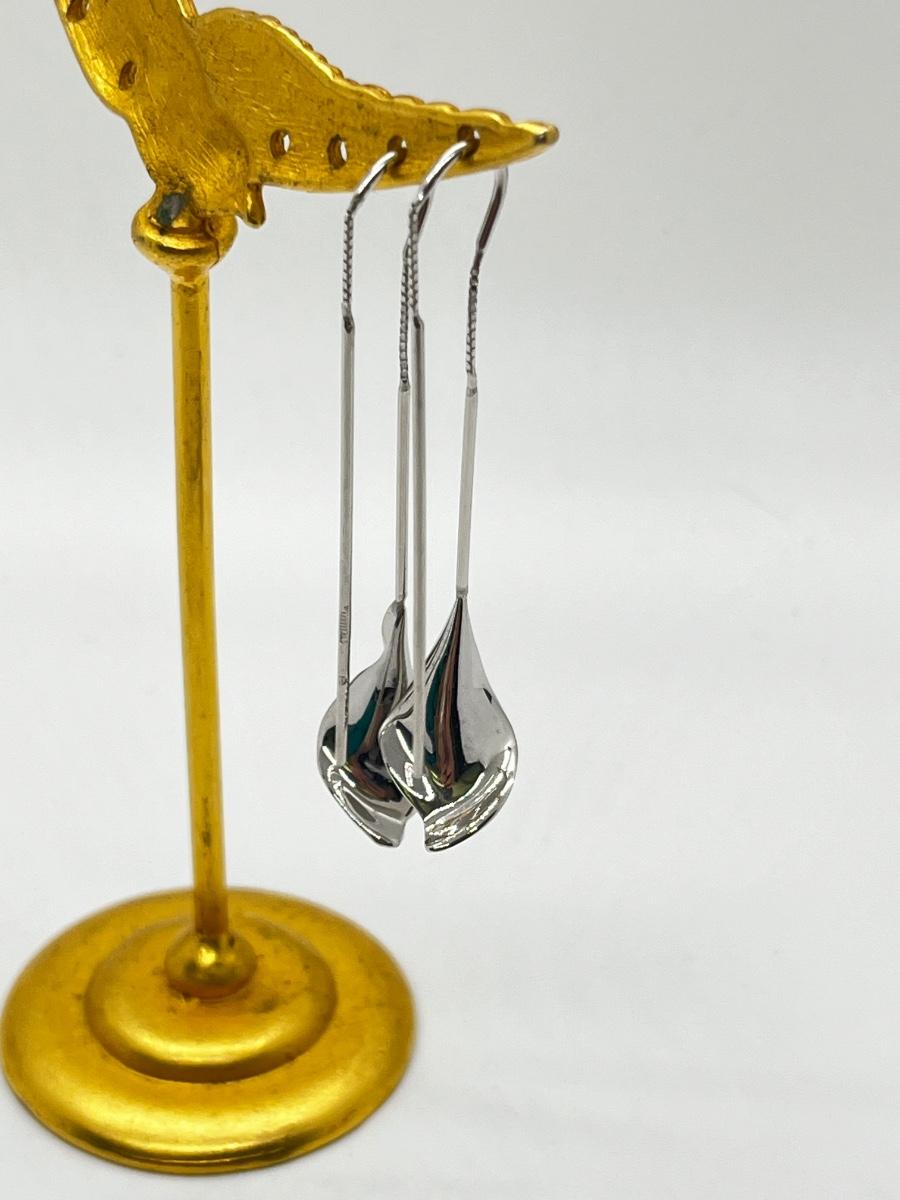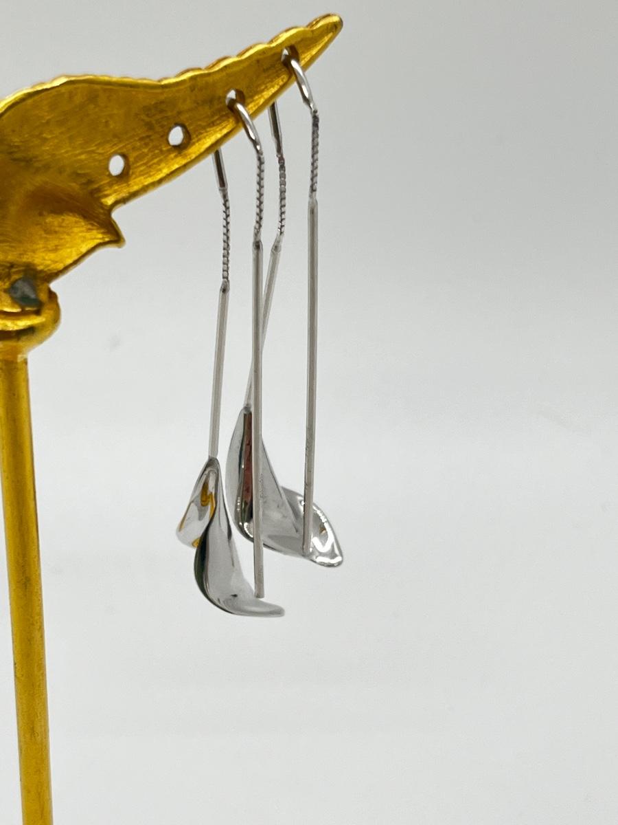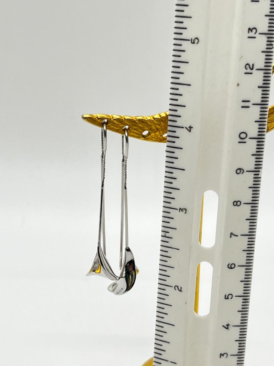 LOT 285J: 14K Italy White Gold Long Floral Drop Earrings - 5.4 g