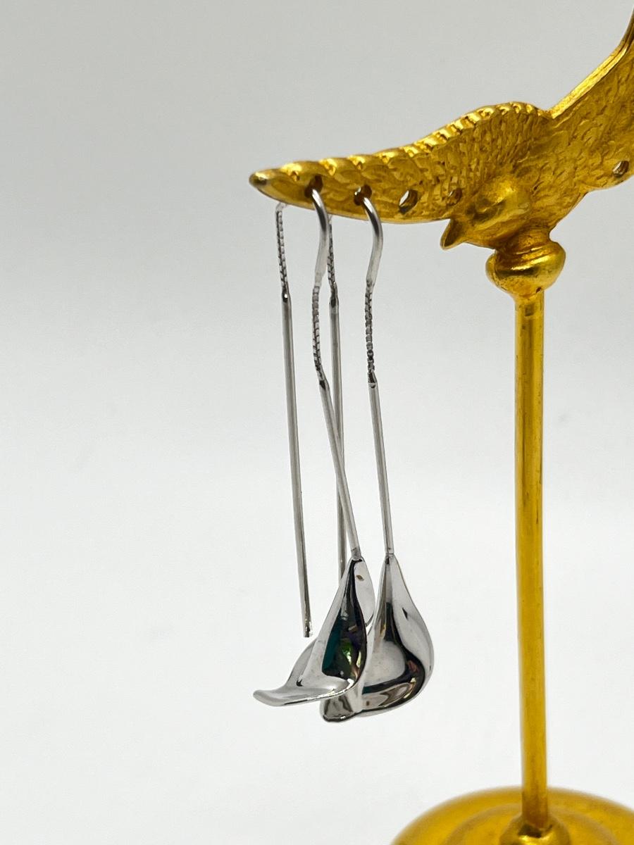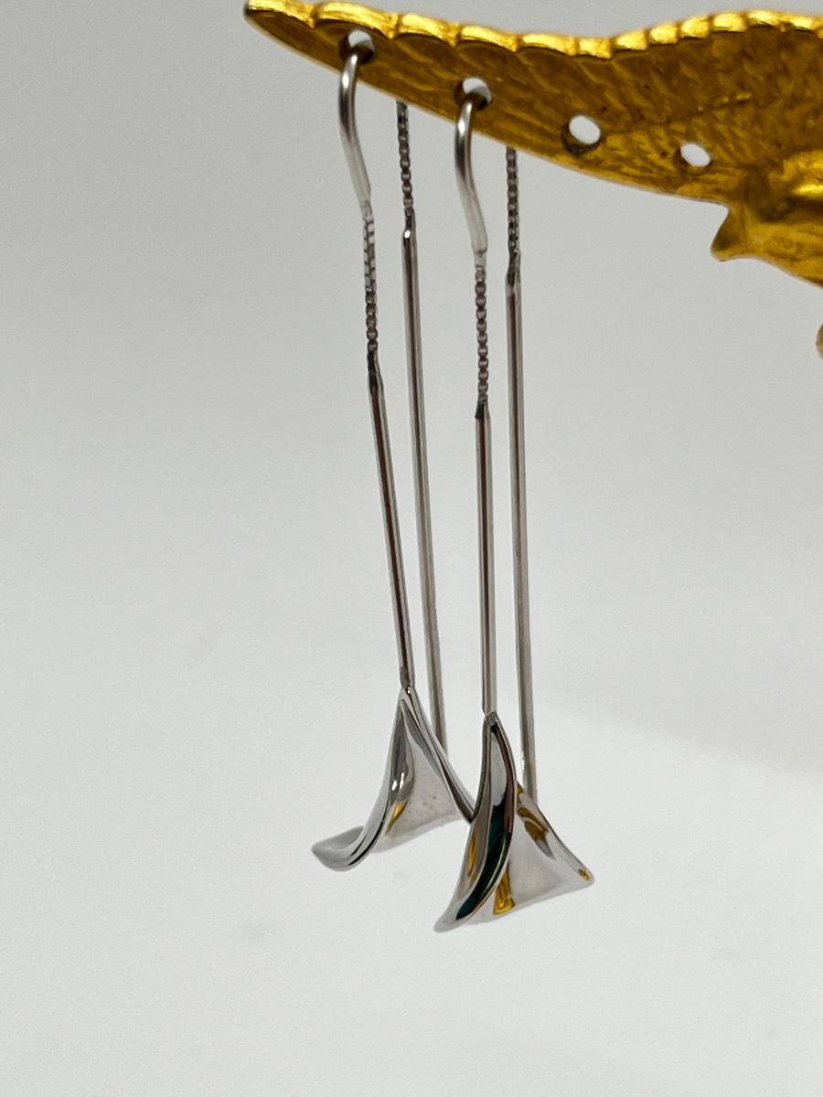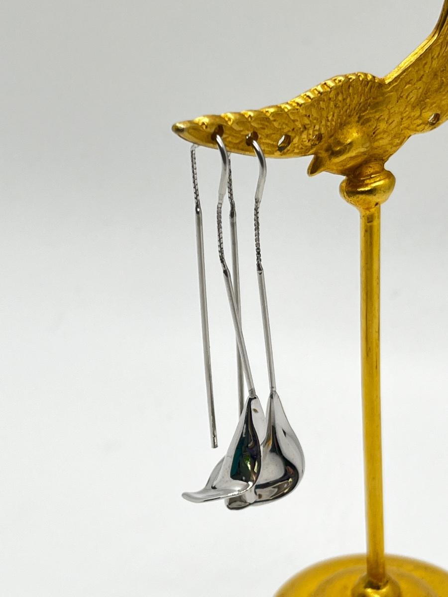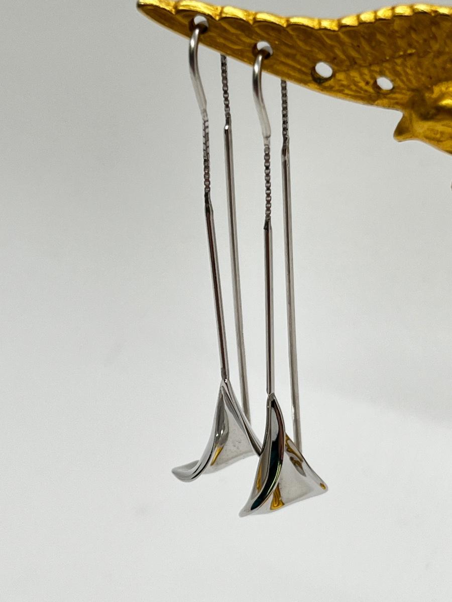 LOT 285J: 14K Italy White Gold Long Floral Drop Earrings - 5.4 g