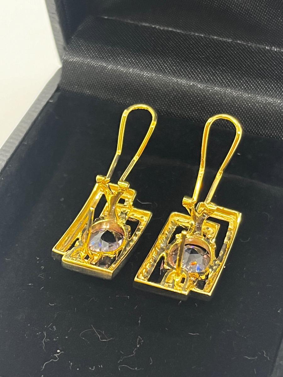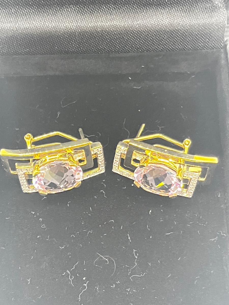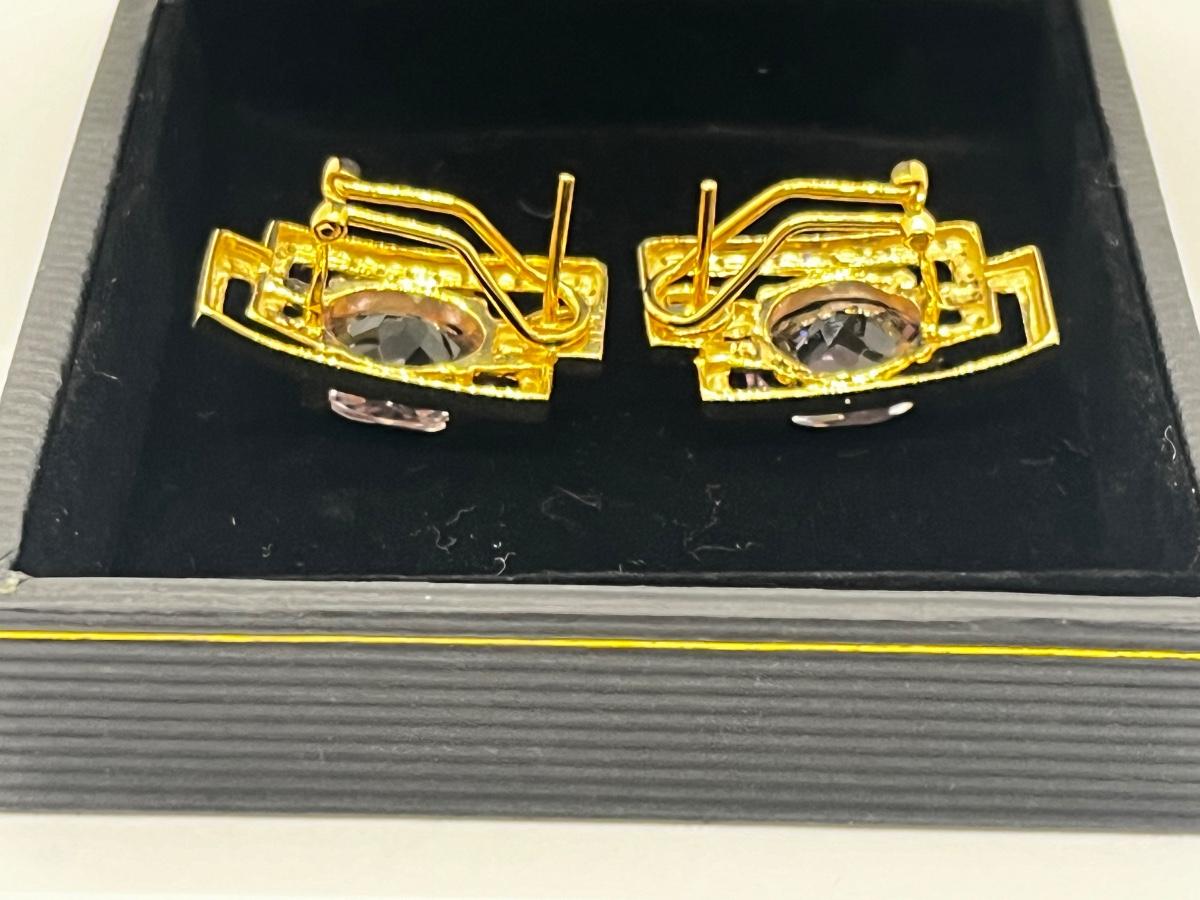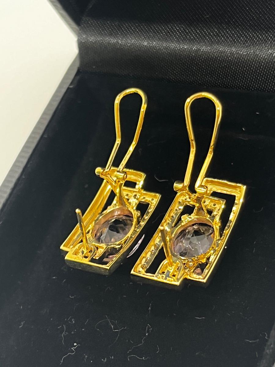LOT 287J: 14K Gold & Diamond Cushion Cut Gemstone Earrings - 5.2 gtw
