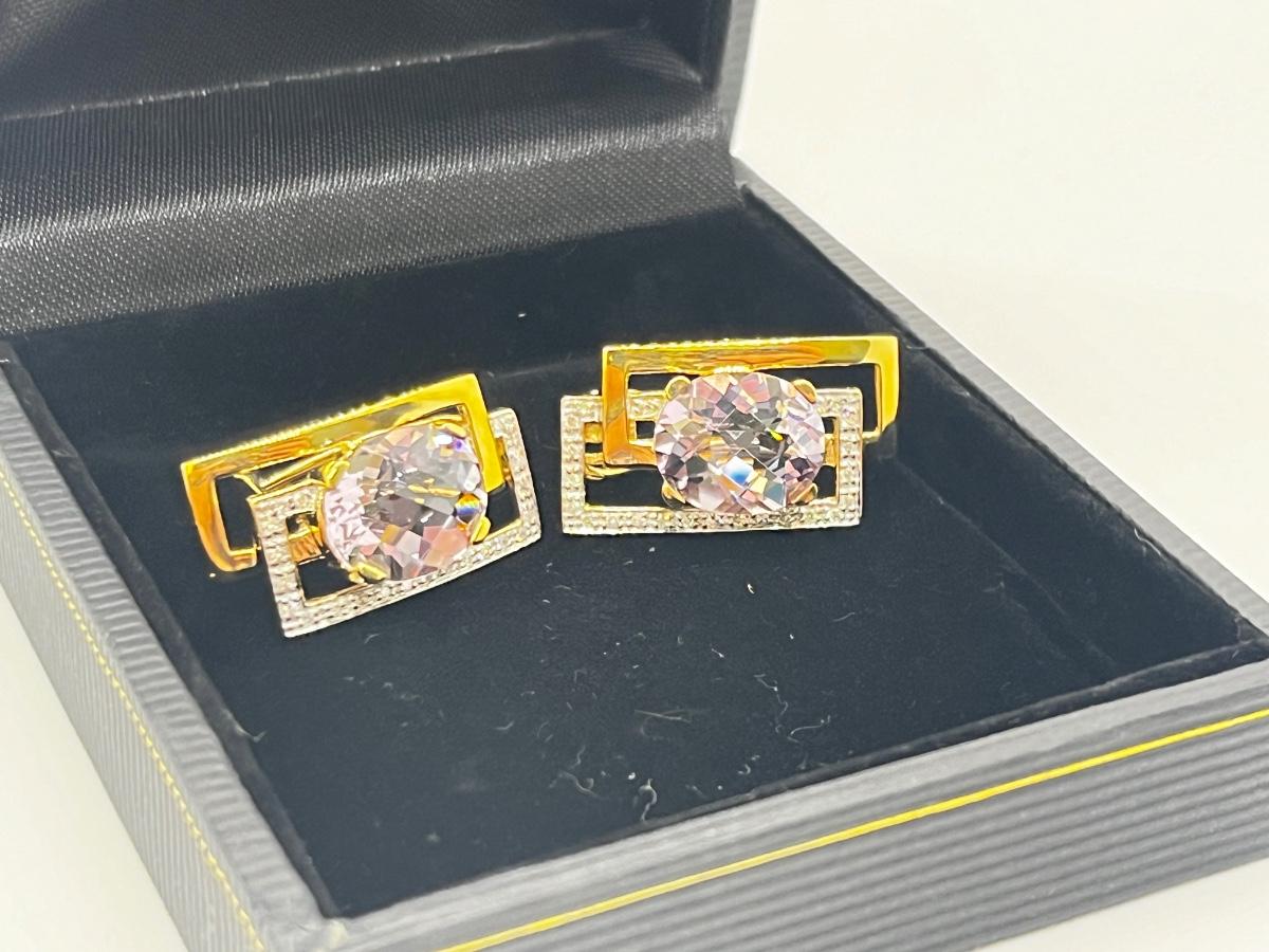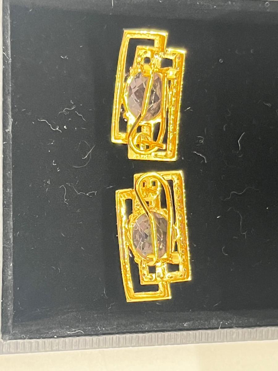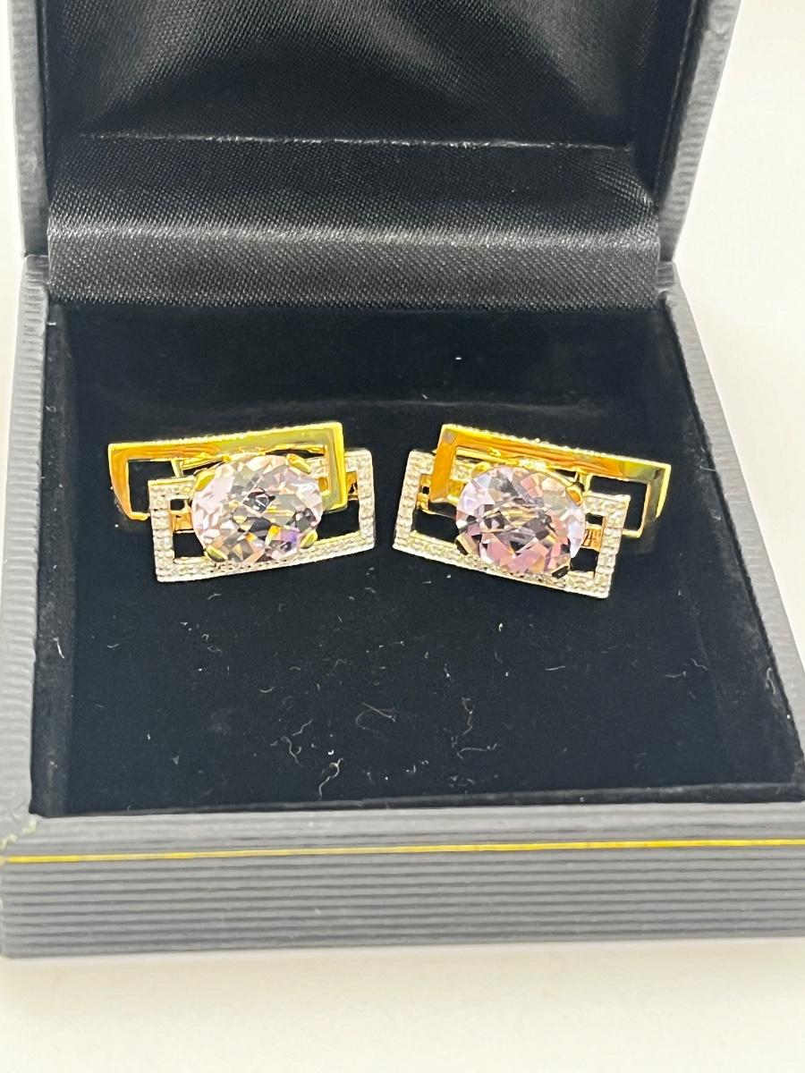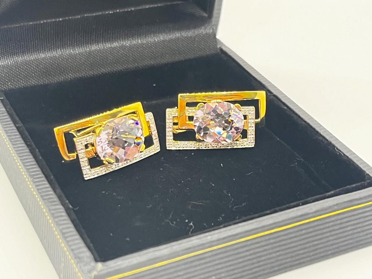 LOT 287J: 14K Gold & Diamond Cushion Cut Gemstone Earrings - 5.2 gtw