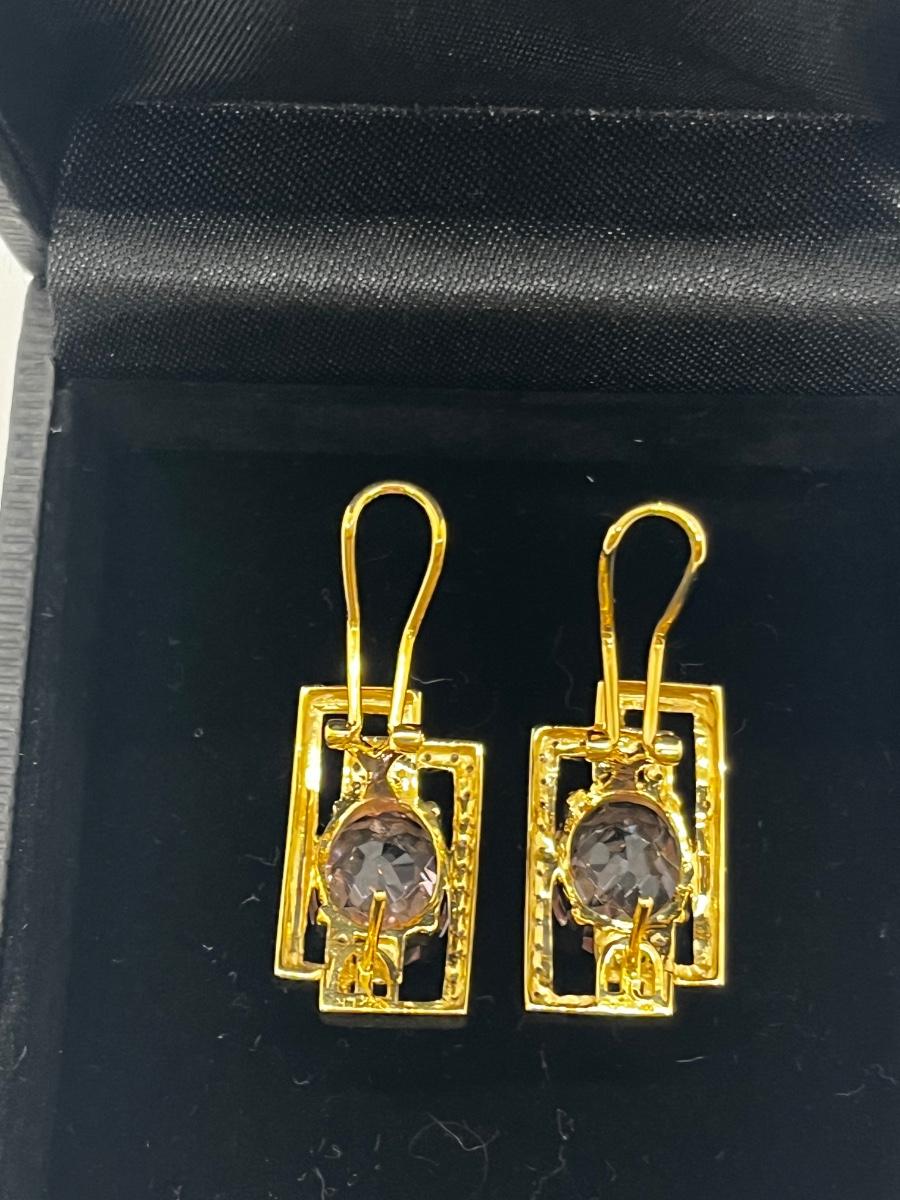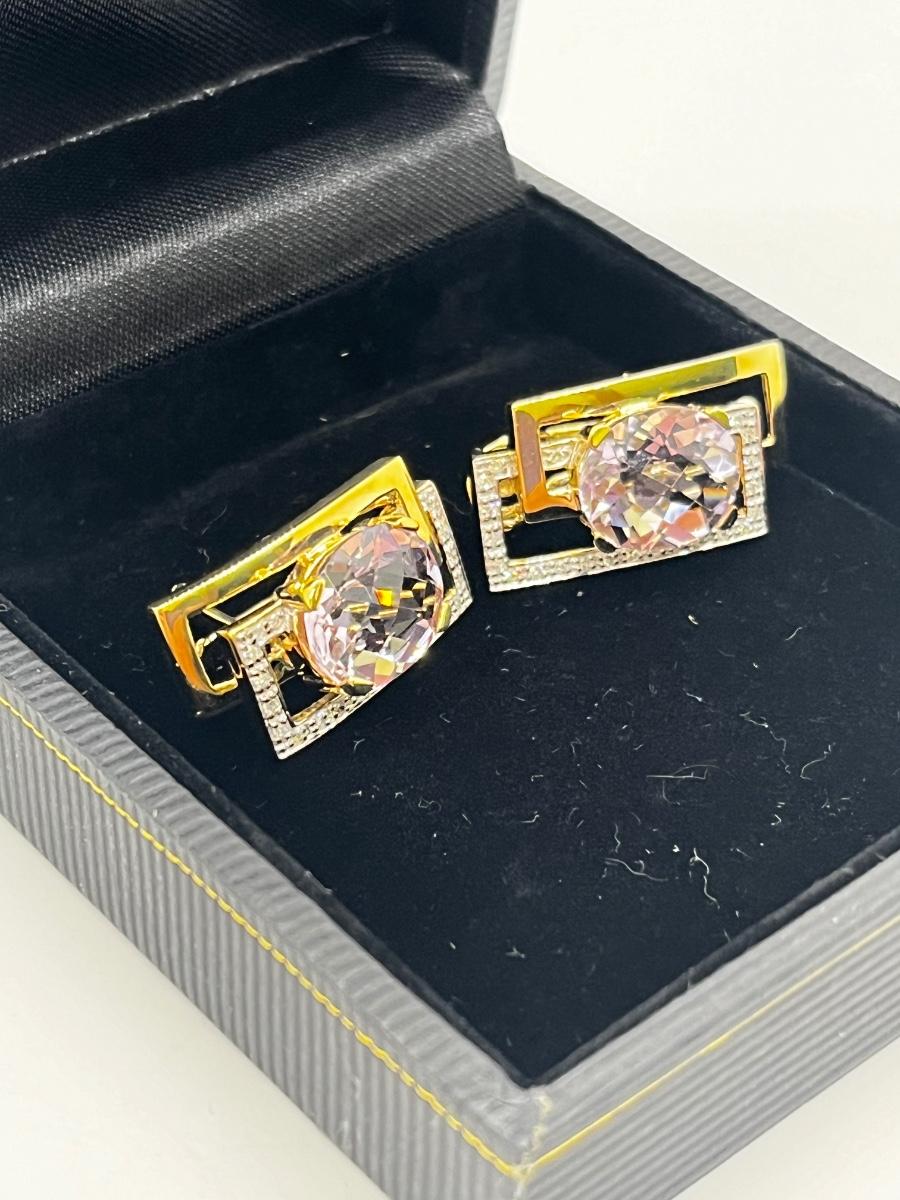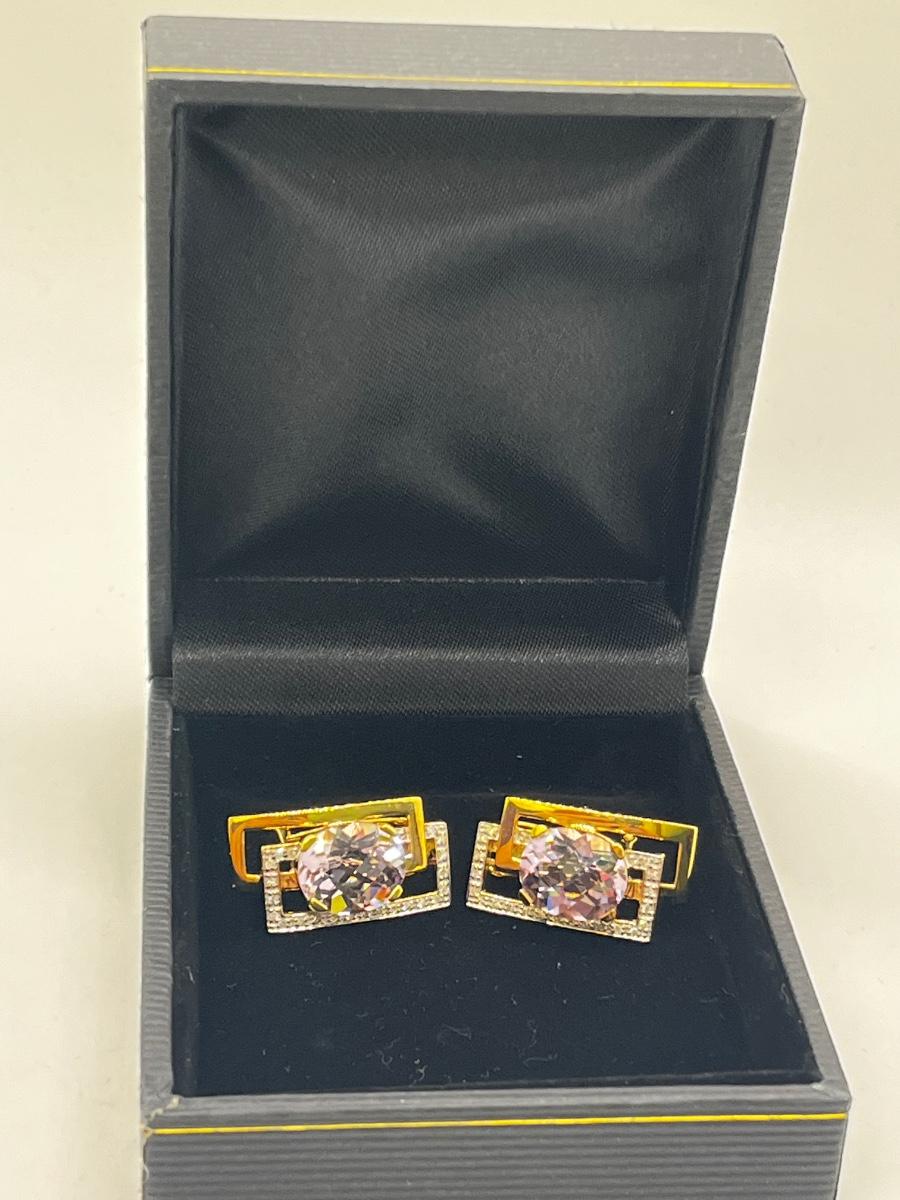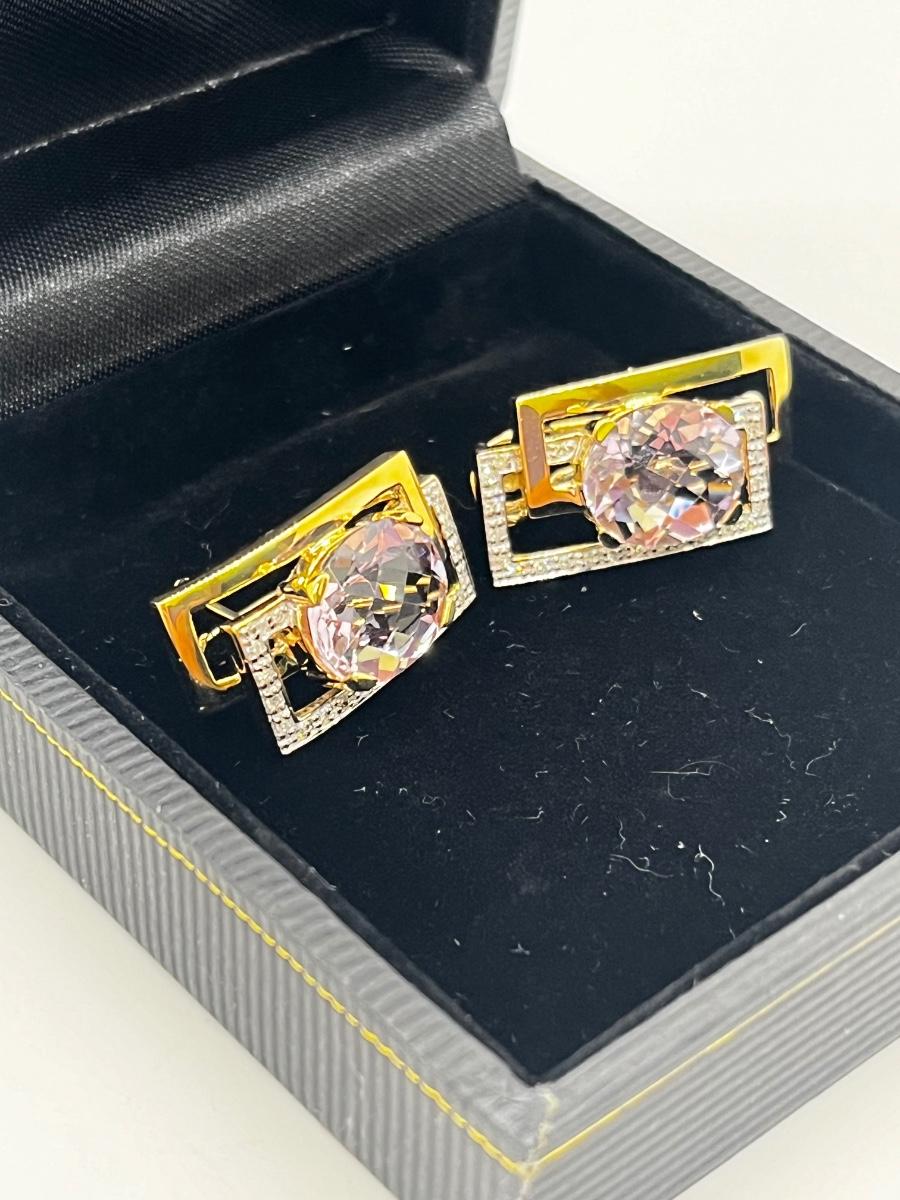 LOT 287J: 14K Gold & Diamond Cushion Cut Gemstone Earrings - 5.2 gtw
