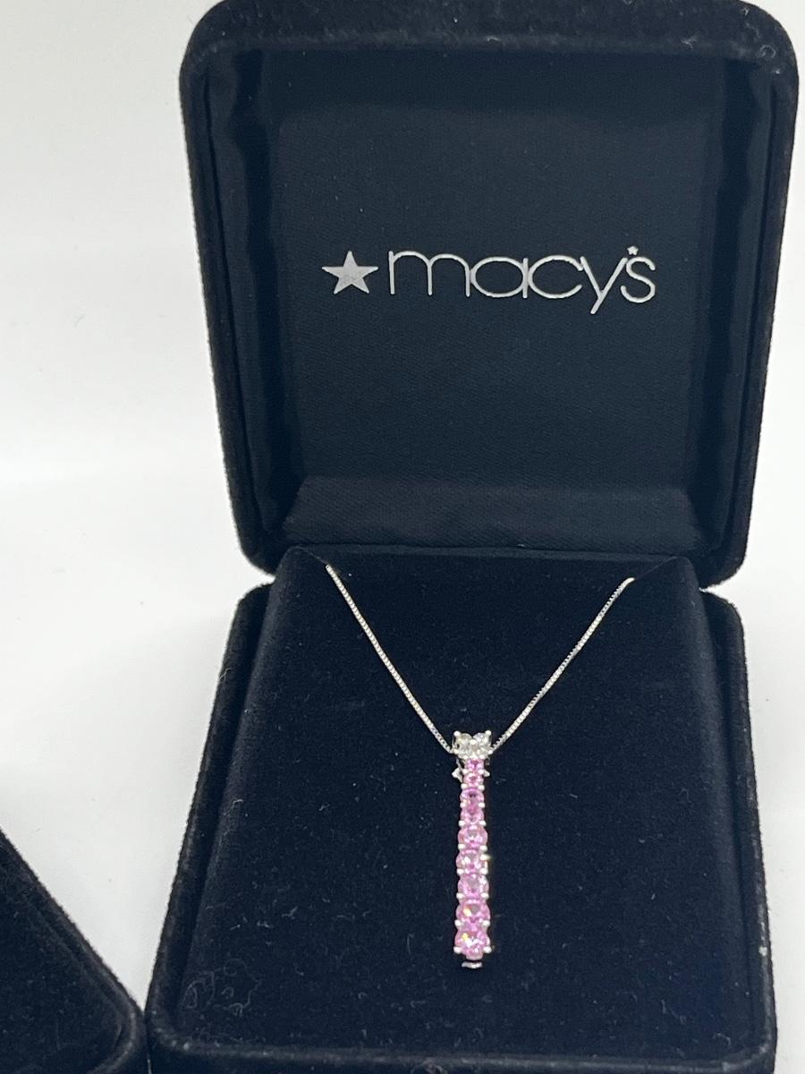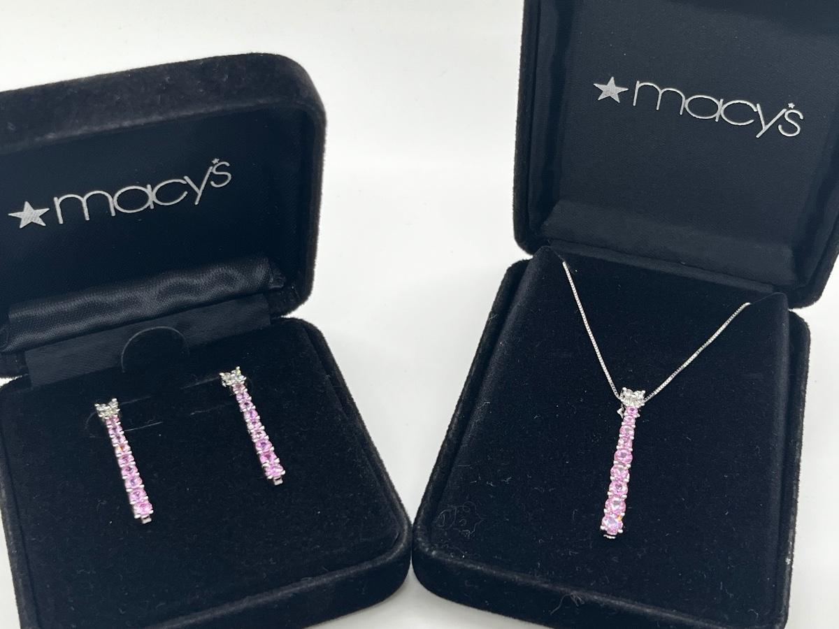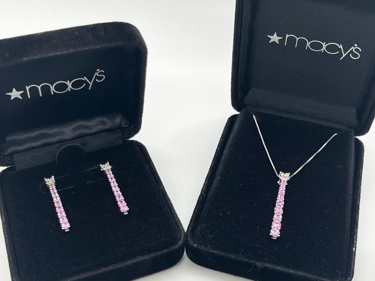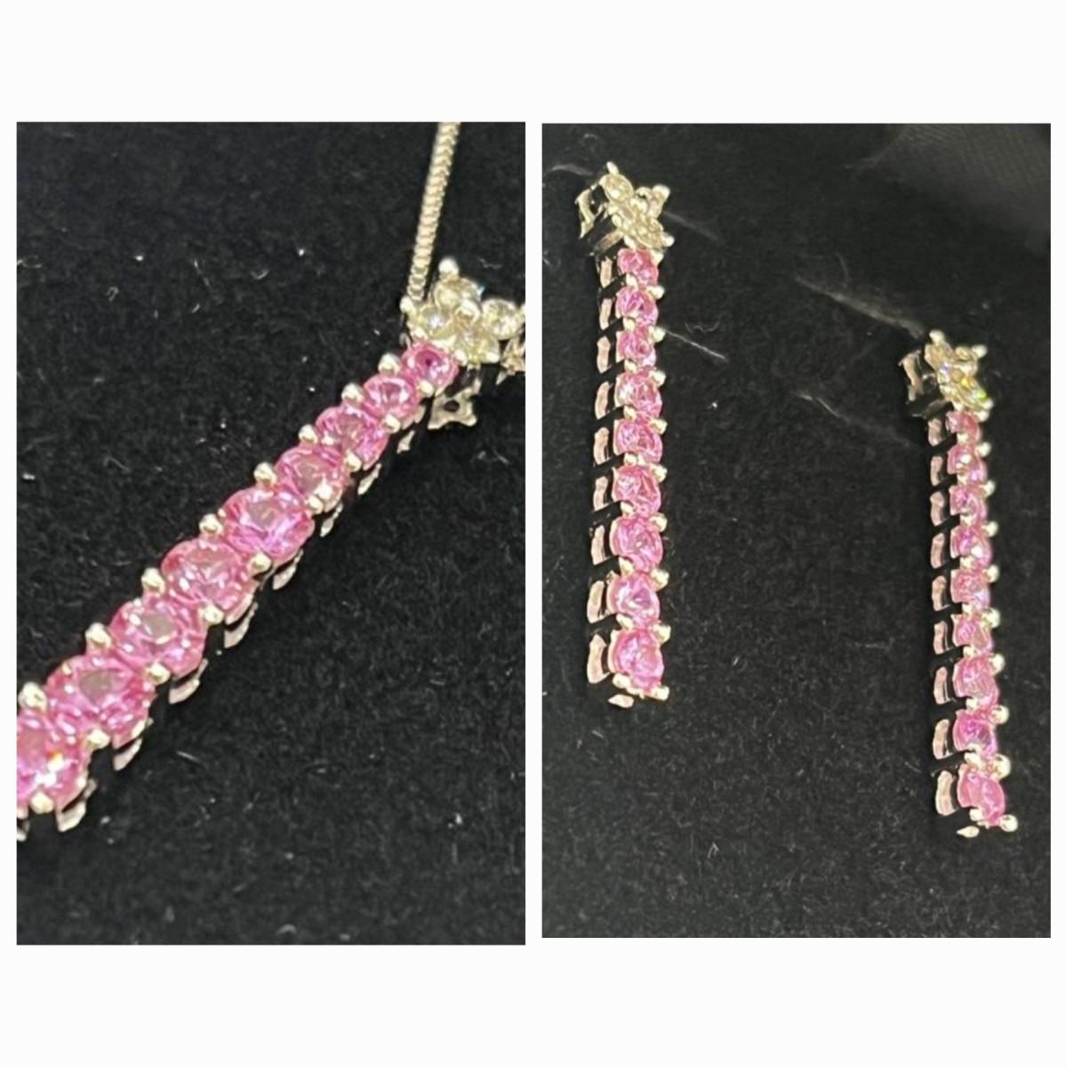 LOT 288J: NEW in Box! Gorgeous 14K White Gold with Clear and Pink DIAMOND Pendant and Earrings-Made in Italy 6.4gtw
