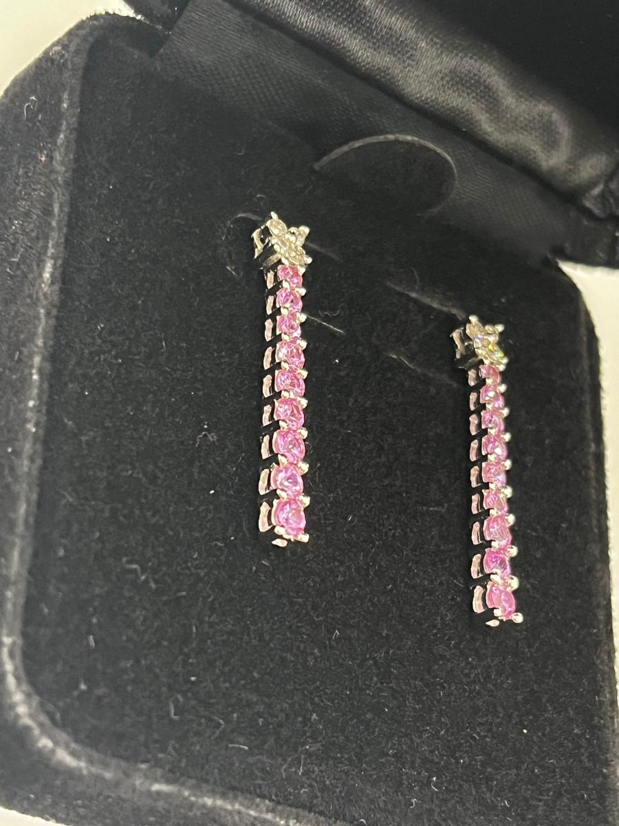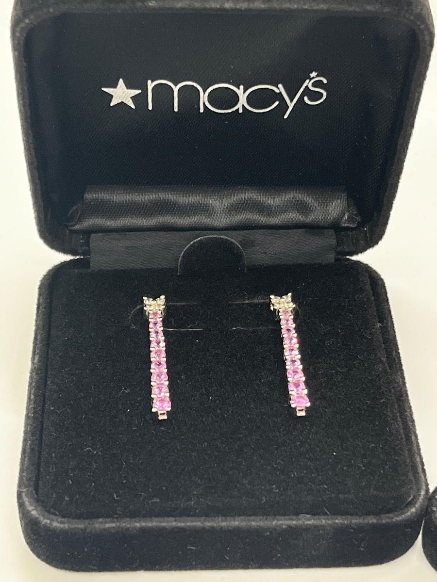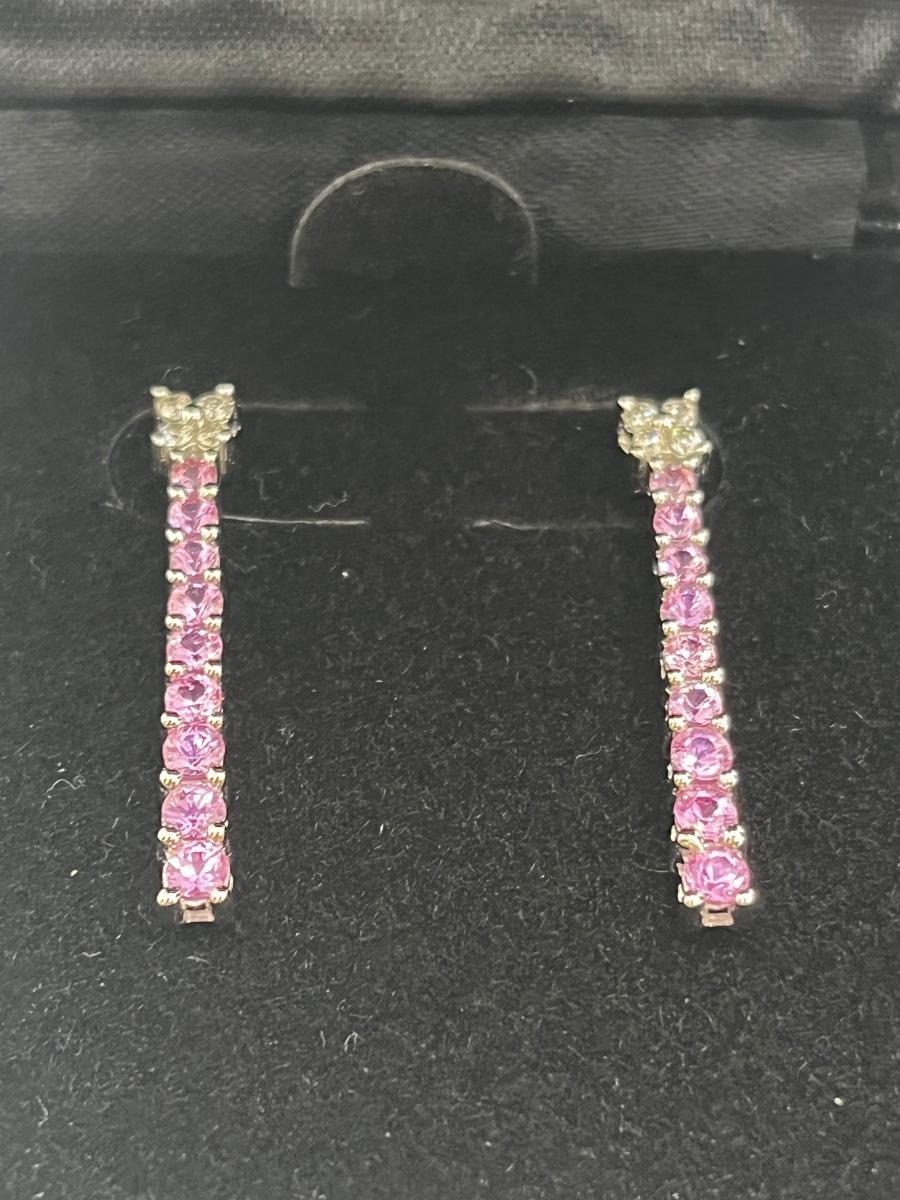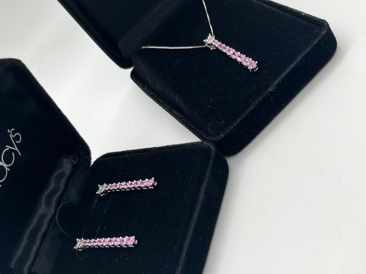 LOT 288J: NEW in Box! Gorgeous 14K White Gold with Clear and Pink DIAMOND Pendant and Earrings-Made in Italy 6.4gtw