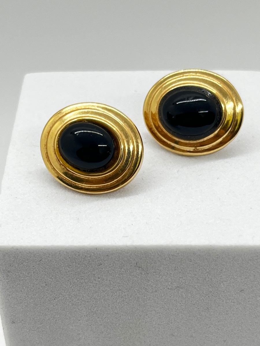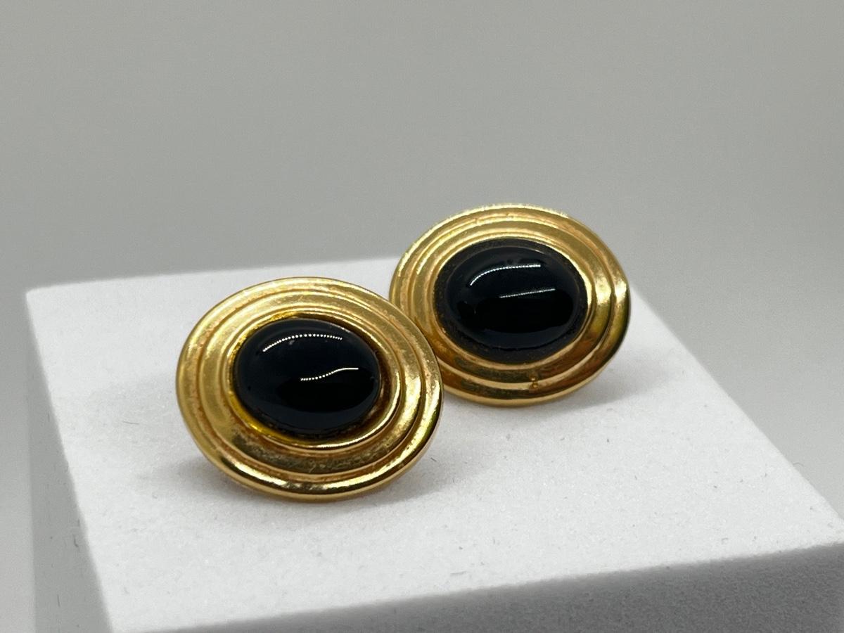 LOT 289J: 14K Gold & Black Onyx Earrings