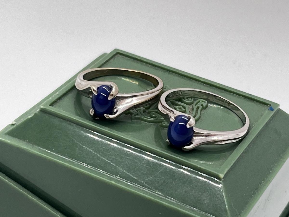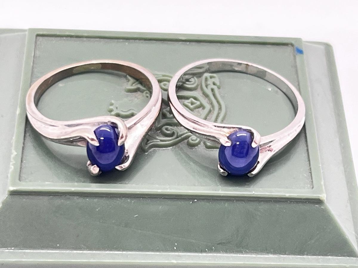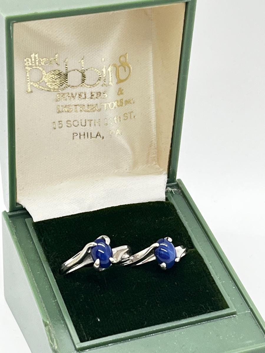 LOT 293J: 14K White Gold Blue Star Sapphire Rings Sizes 6 & 7 - 4.4 gtw