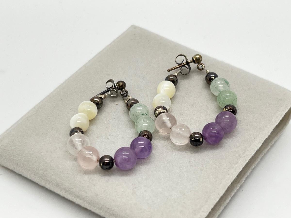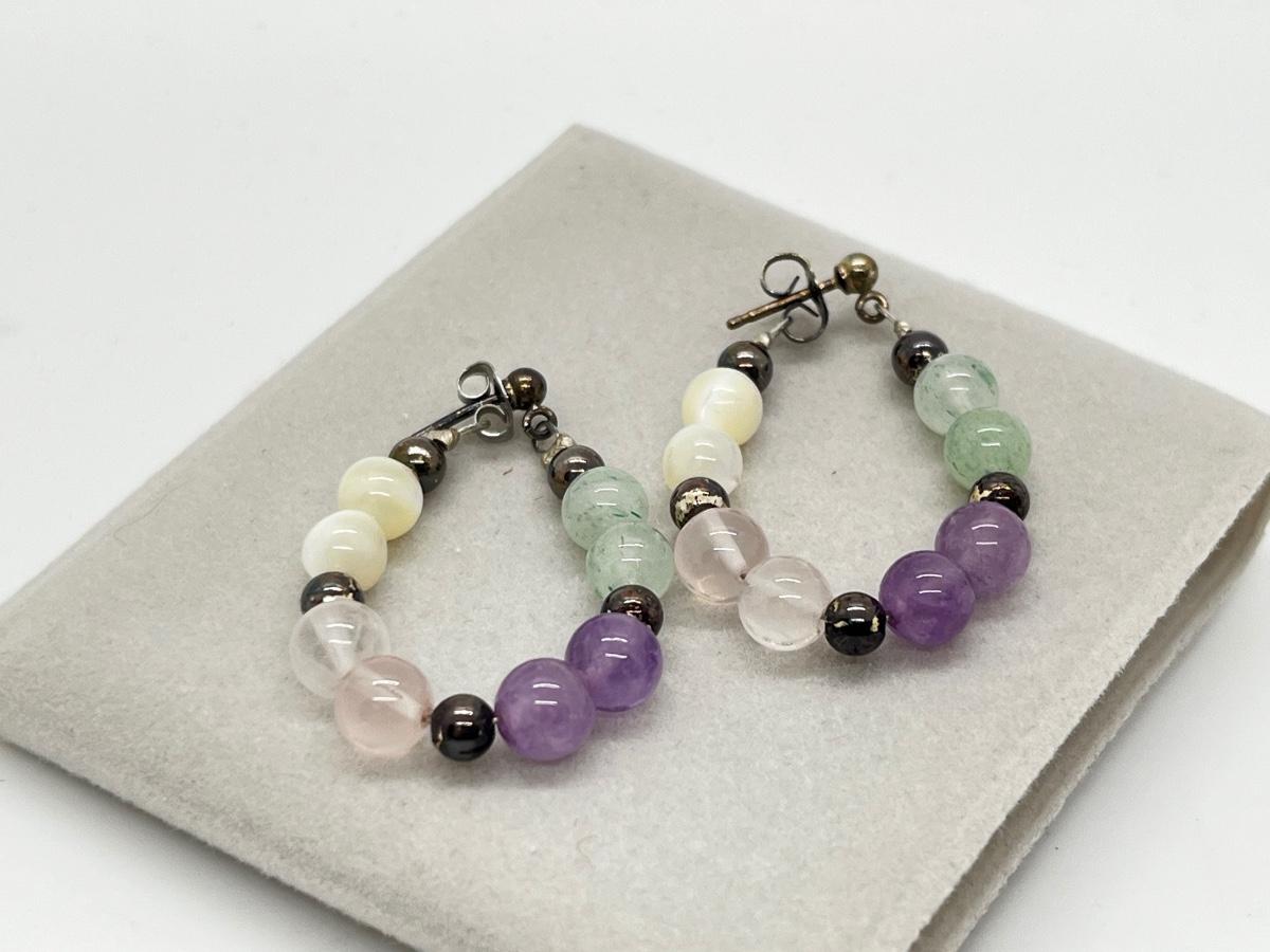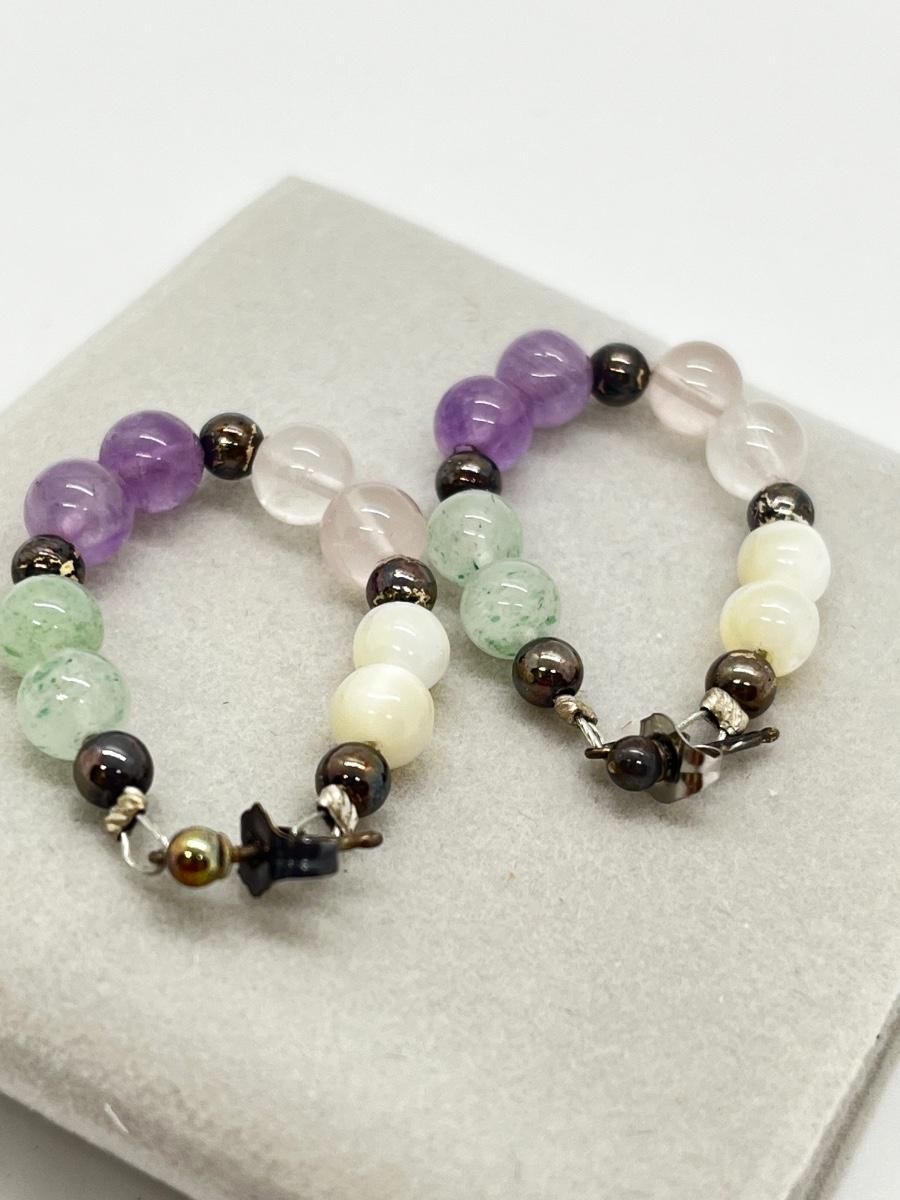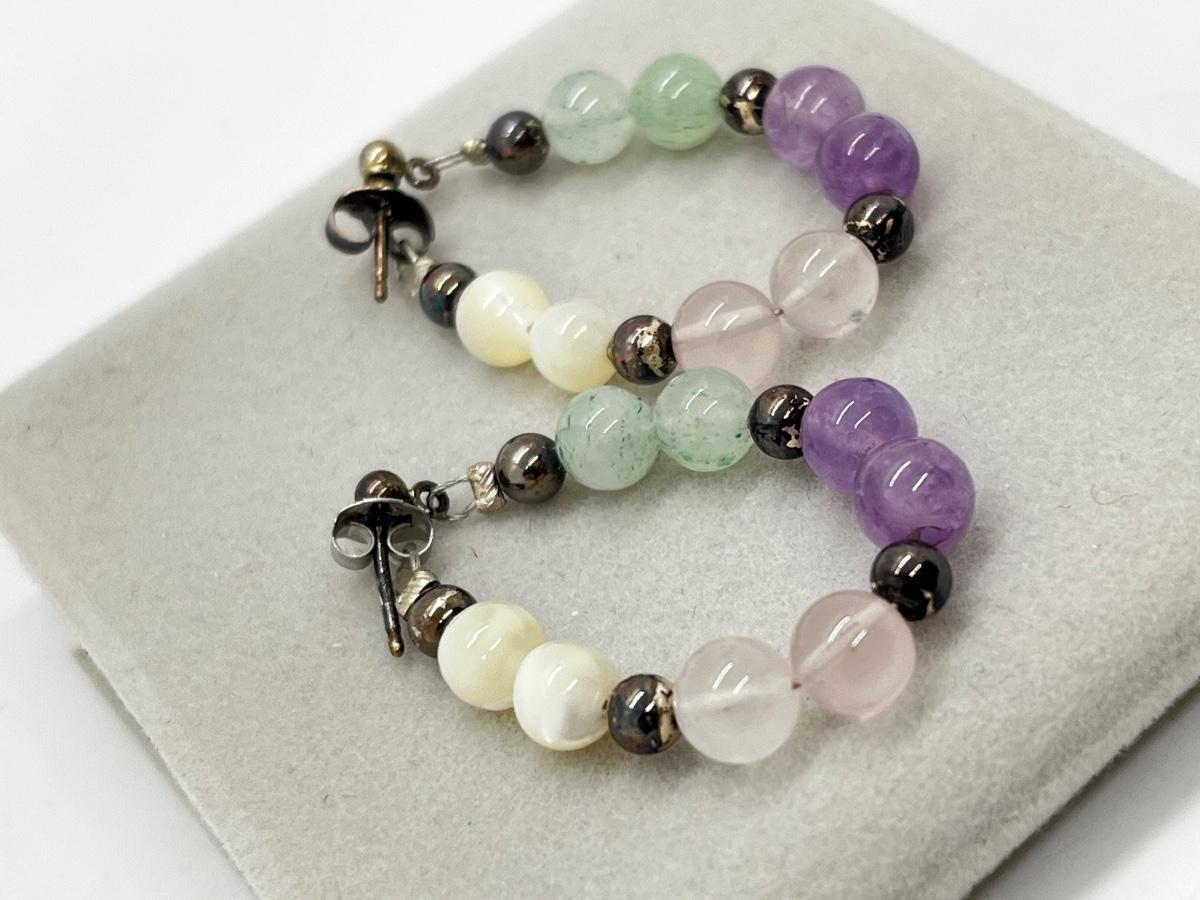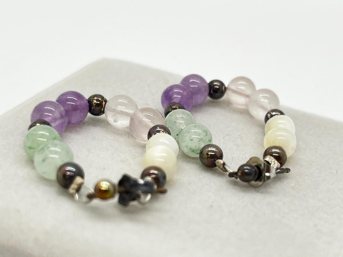 LOT 296J: Surgical Steel Darling Multi-Gemstone Beaded Hoop Earrings