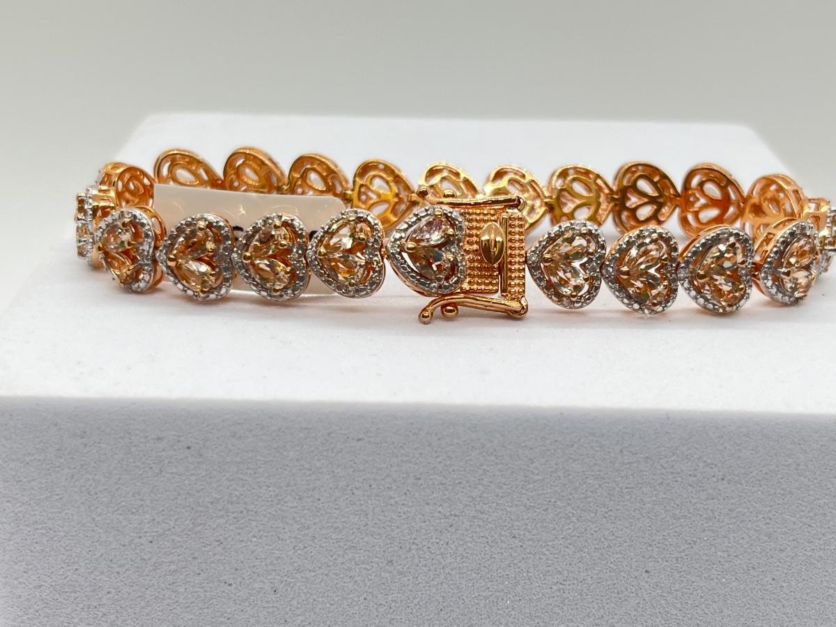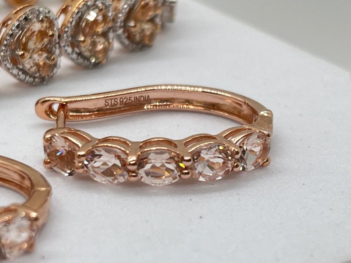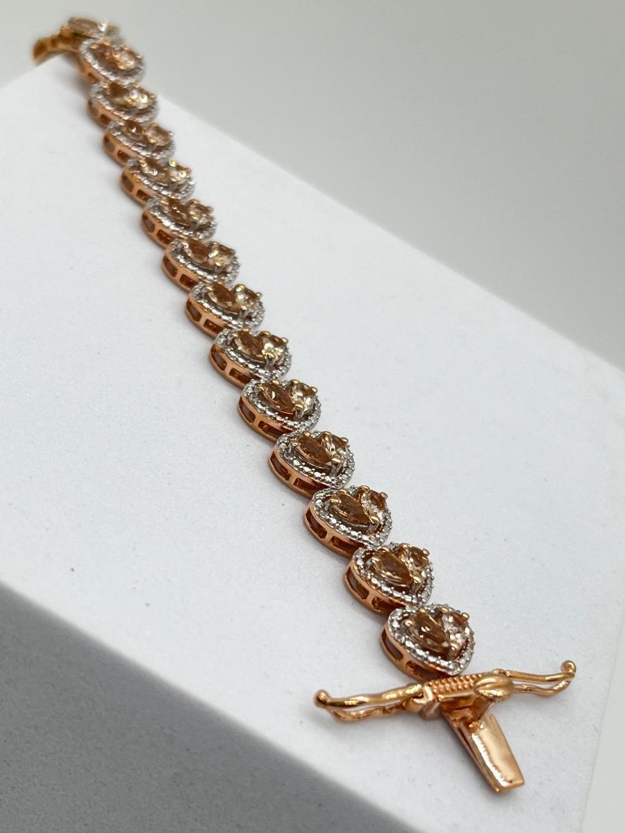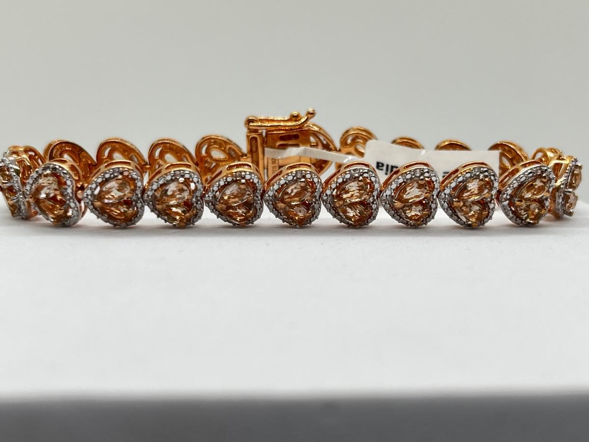 LOT 297J: New! 925 Morganite and Diamond Heart Shaped Tennis Bracelet and Matching Earrings with oval cut gems - Sterling Silver with 18k Rose gold overlay