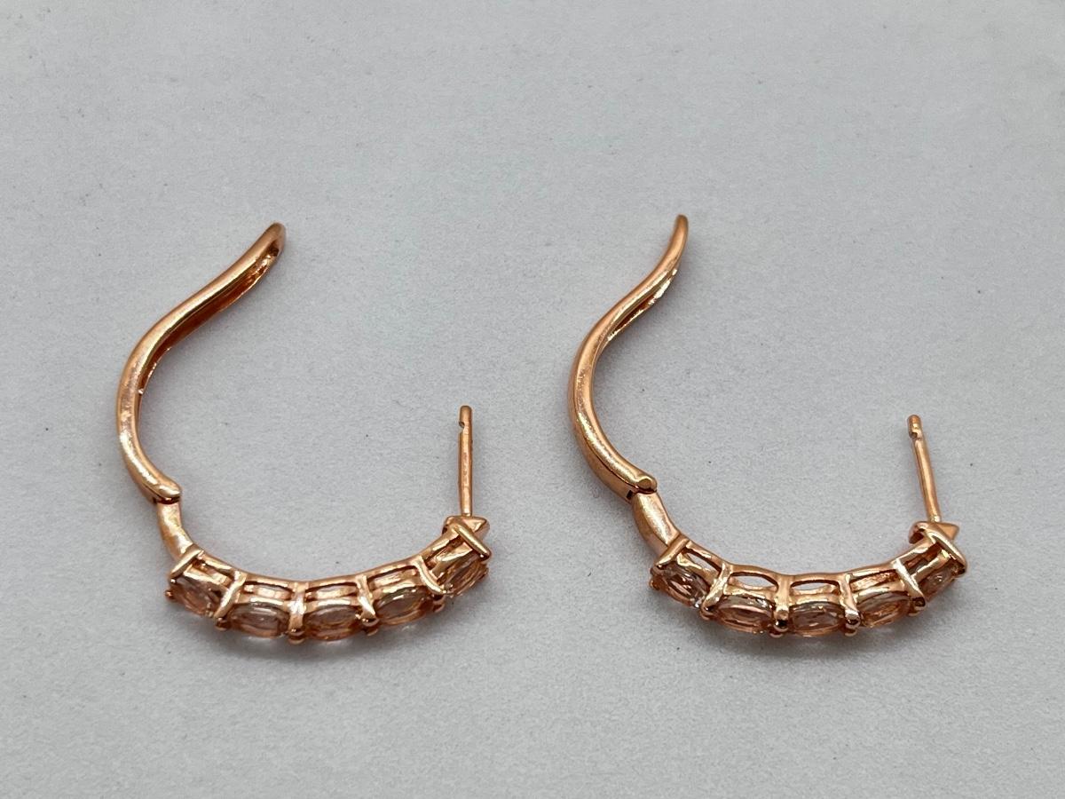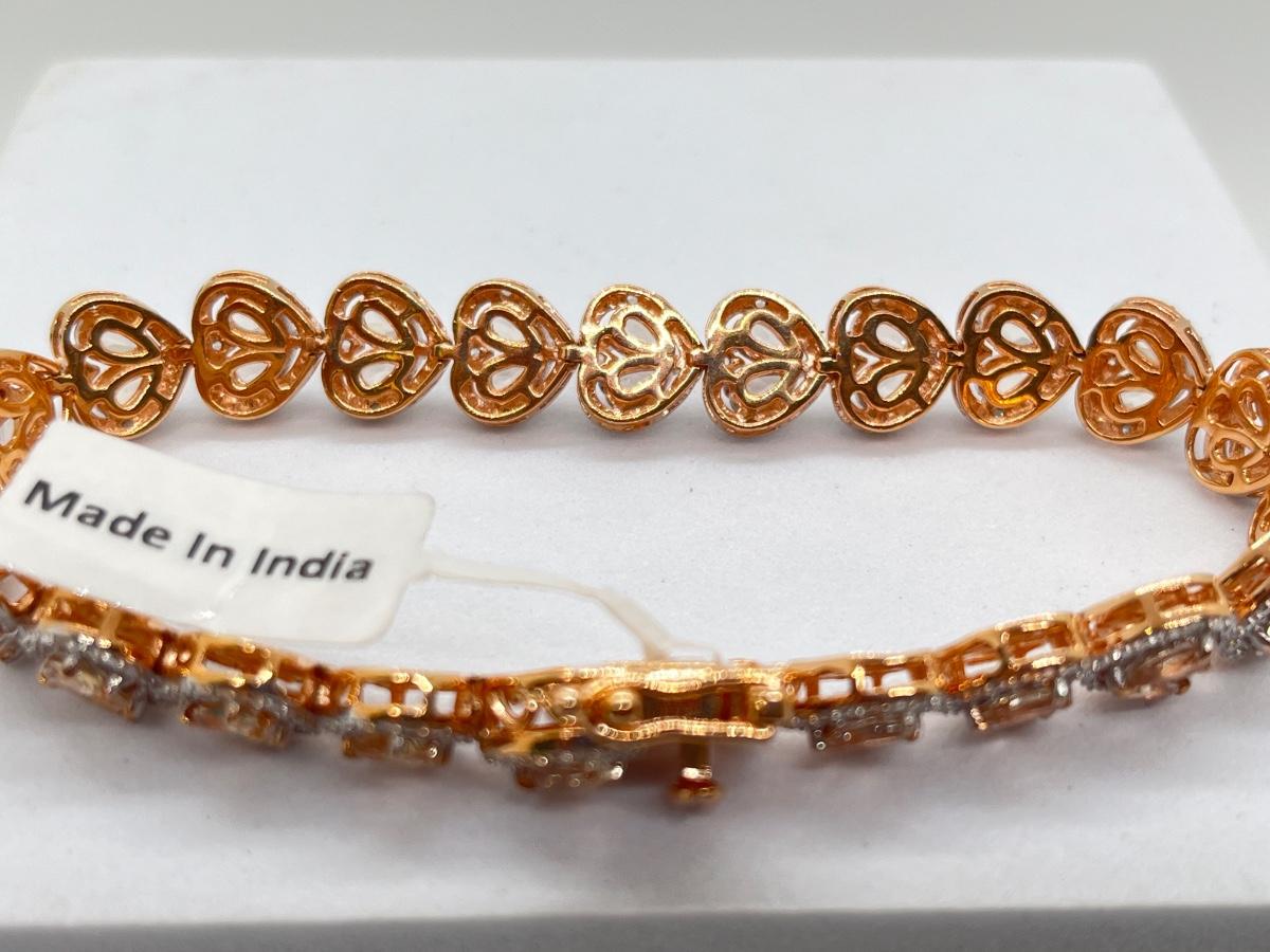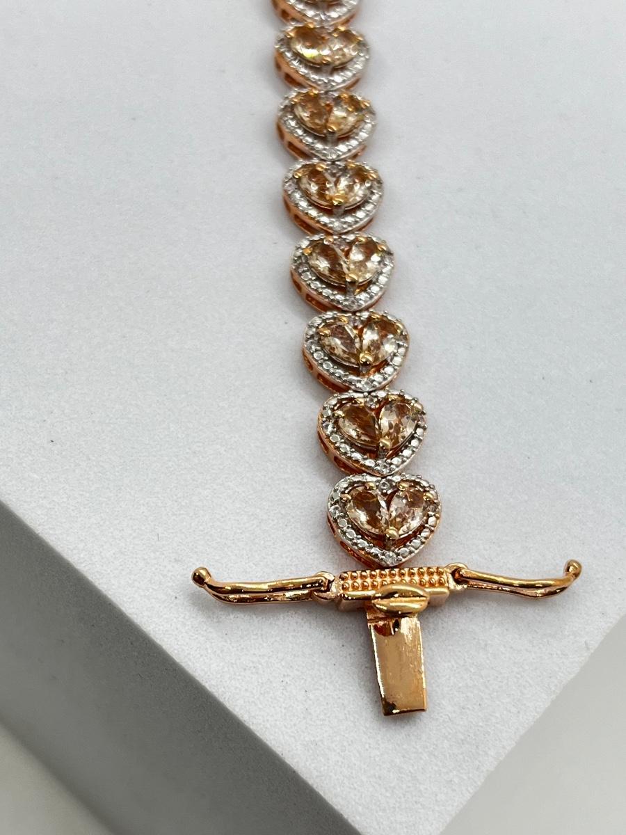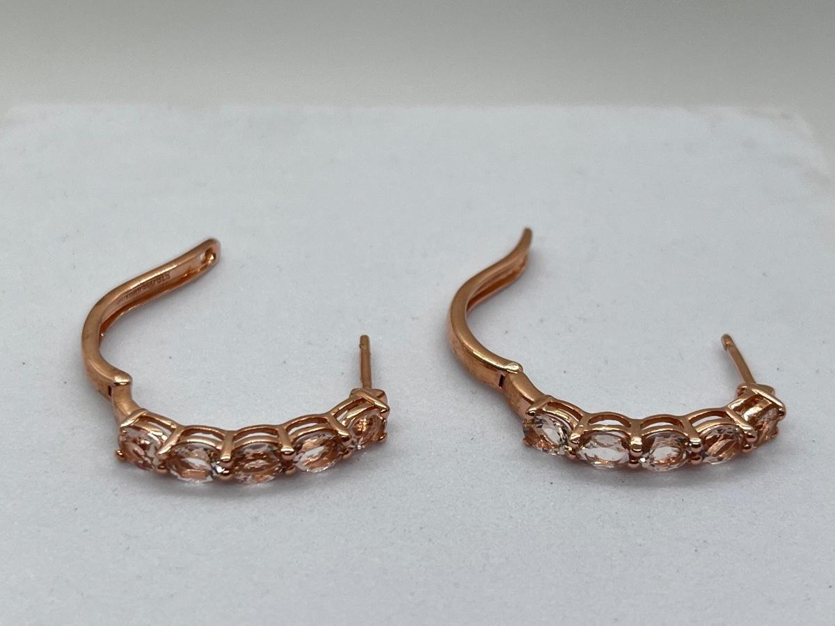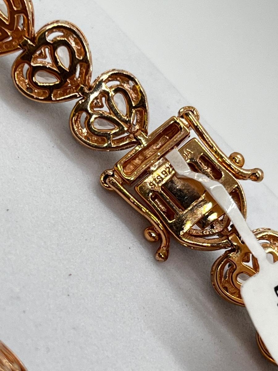 LOT 297J: New! 925 Morganite and Diamond Heart Shaped Tennis Bracelet and Matching Earrings with oval cut gems - Sterling Silver with 18k Rose gold overlay