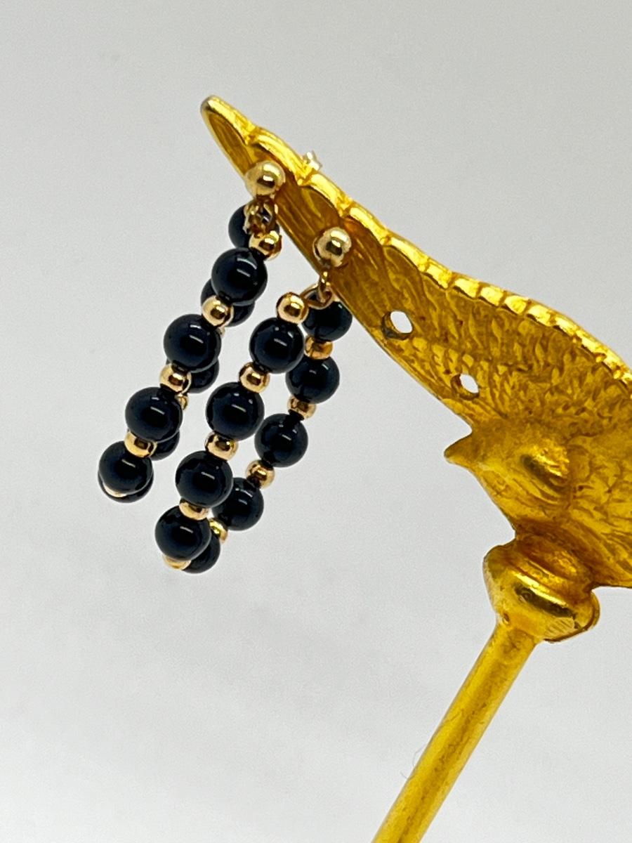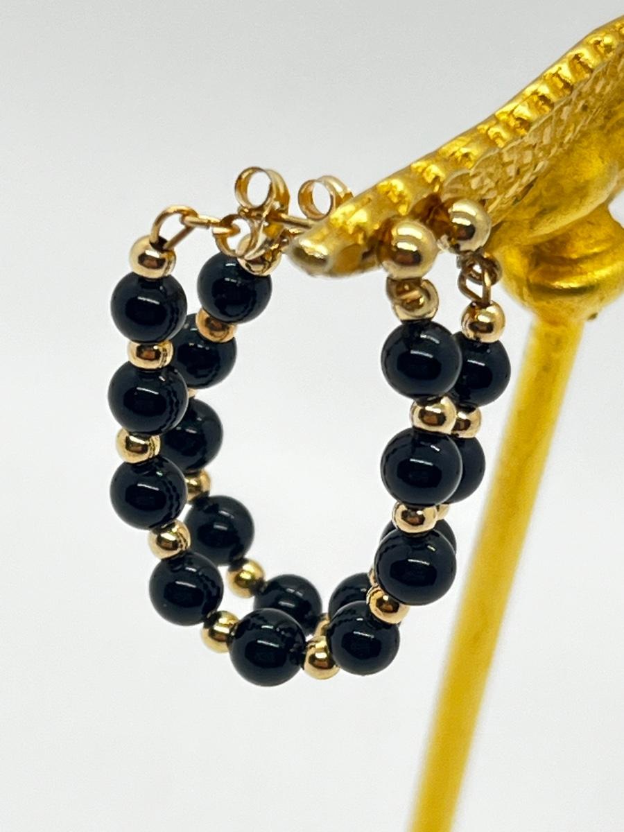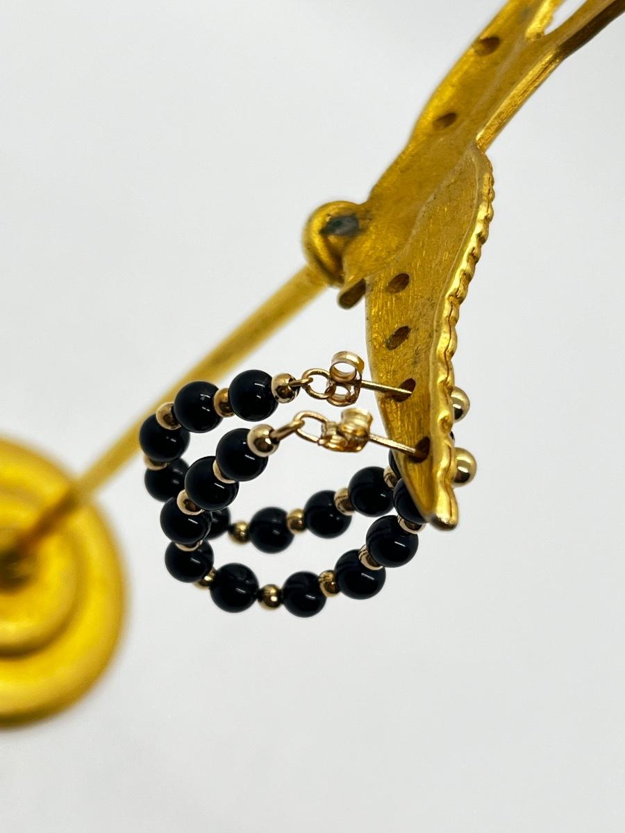 LOT 305J: 14 K Black Onyx Hoop Pierced Earrings-2.5 gtw