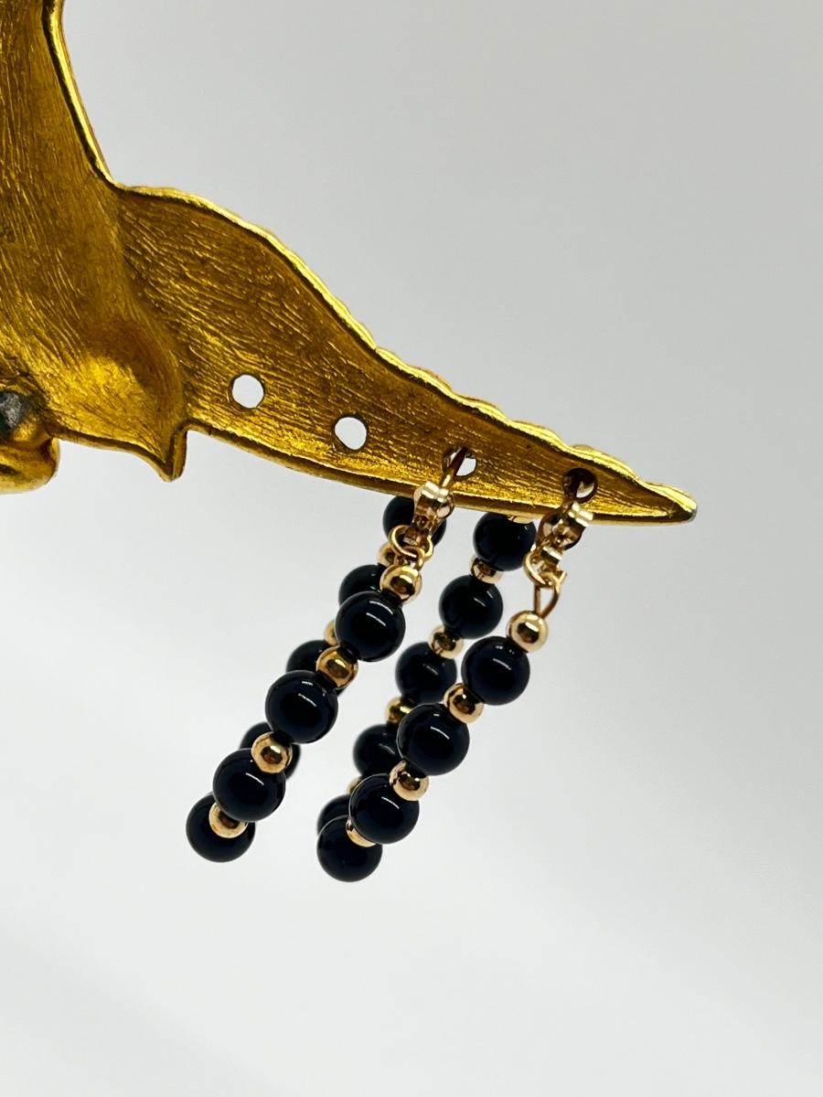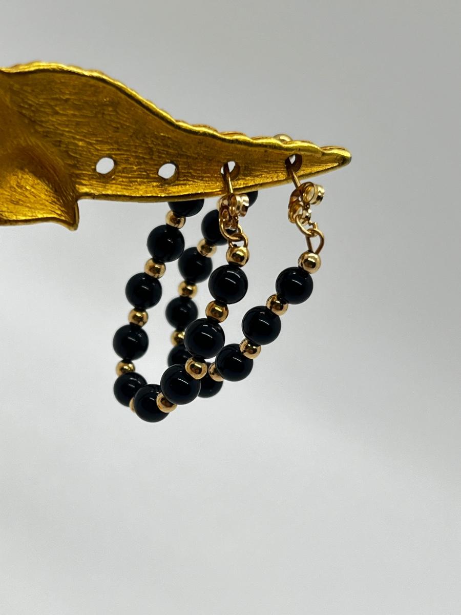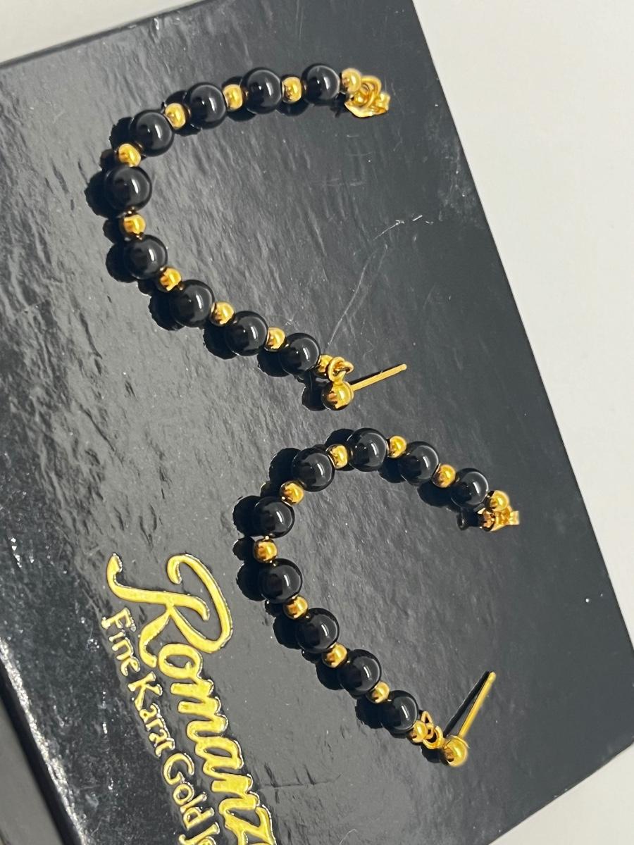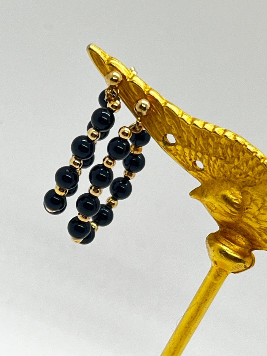 LOT 305J: 14 K Black Onyx Hoop Pierced Earrings-2.5 gtw