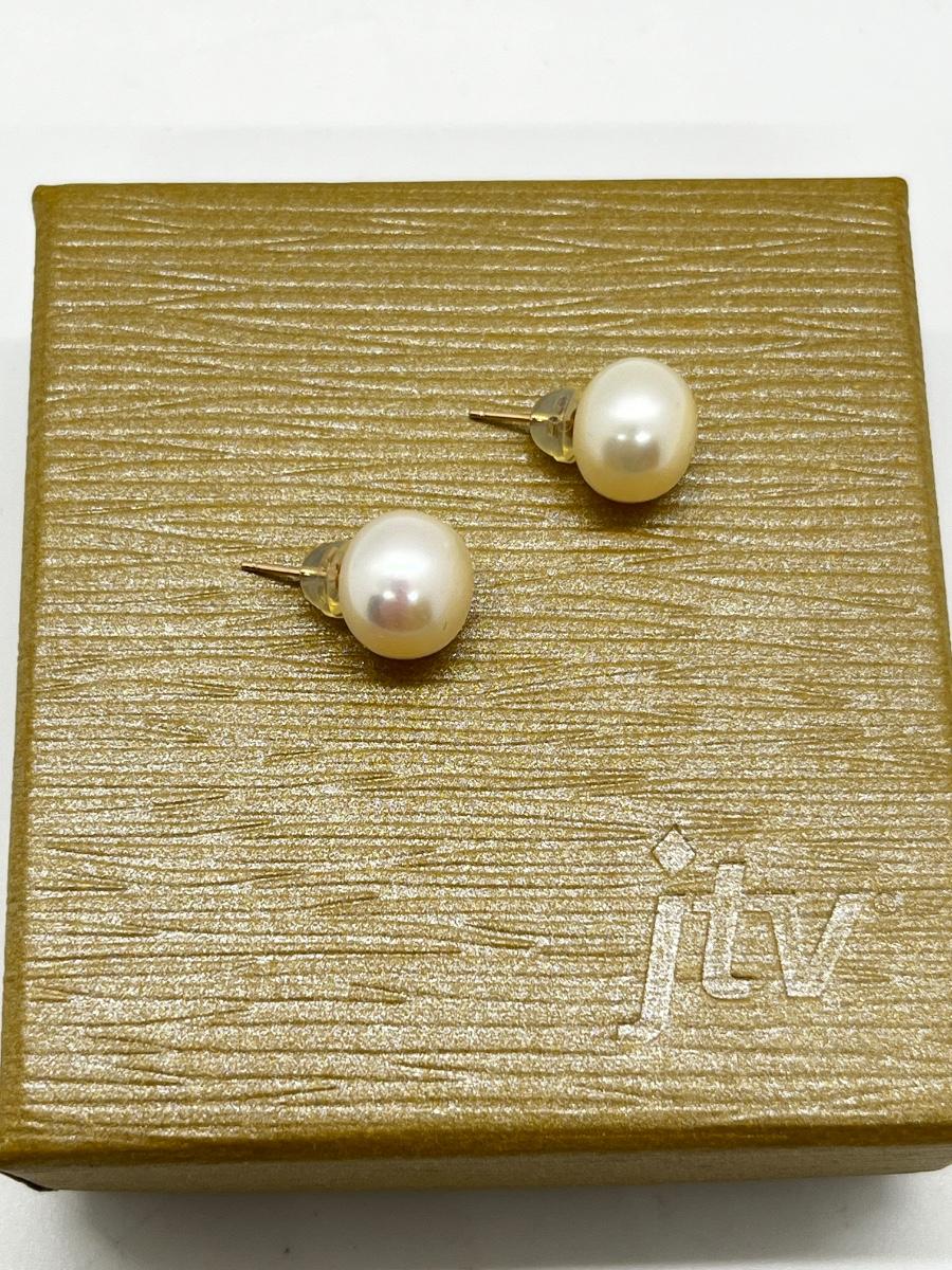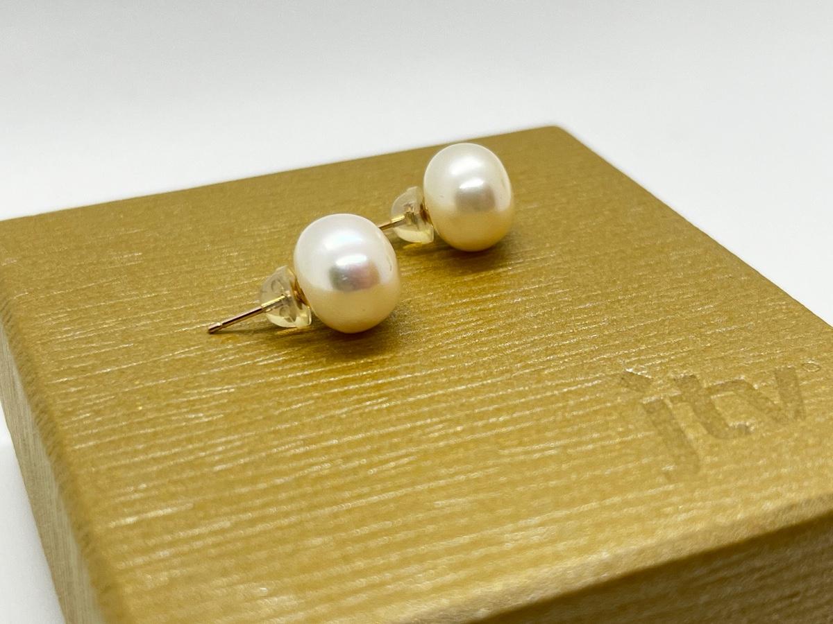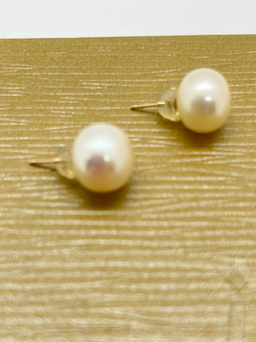 LOT 308J: 10K Yellow Gold and White Cultered Pearl Pierced Stud Earrings