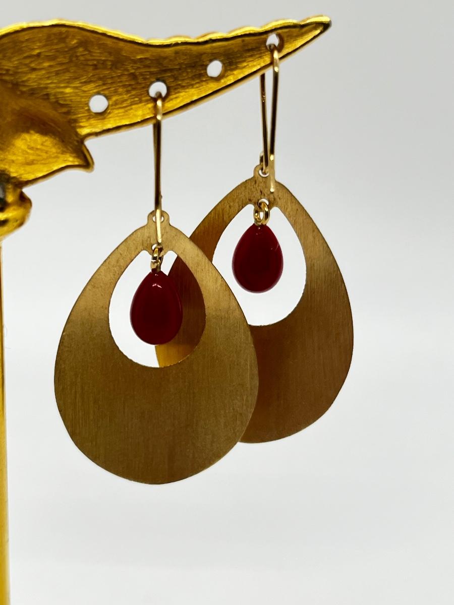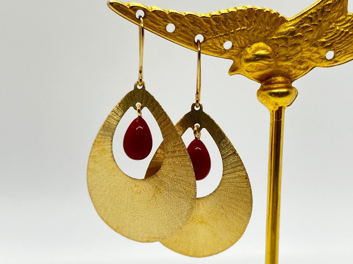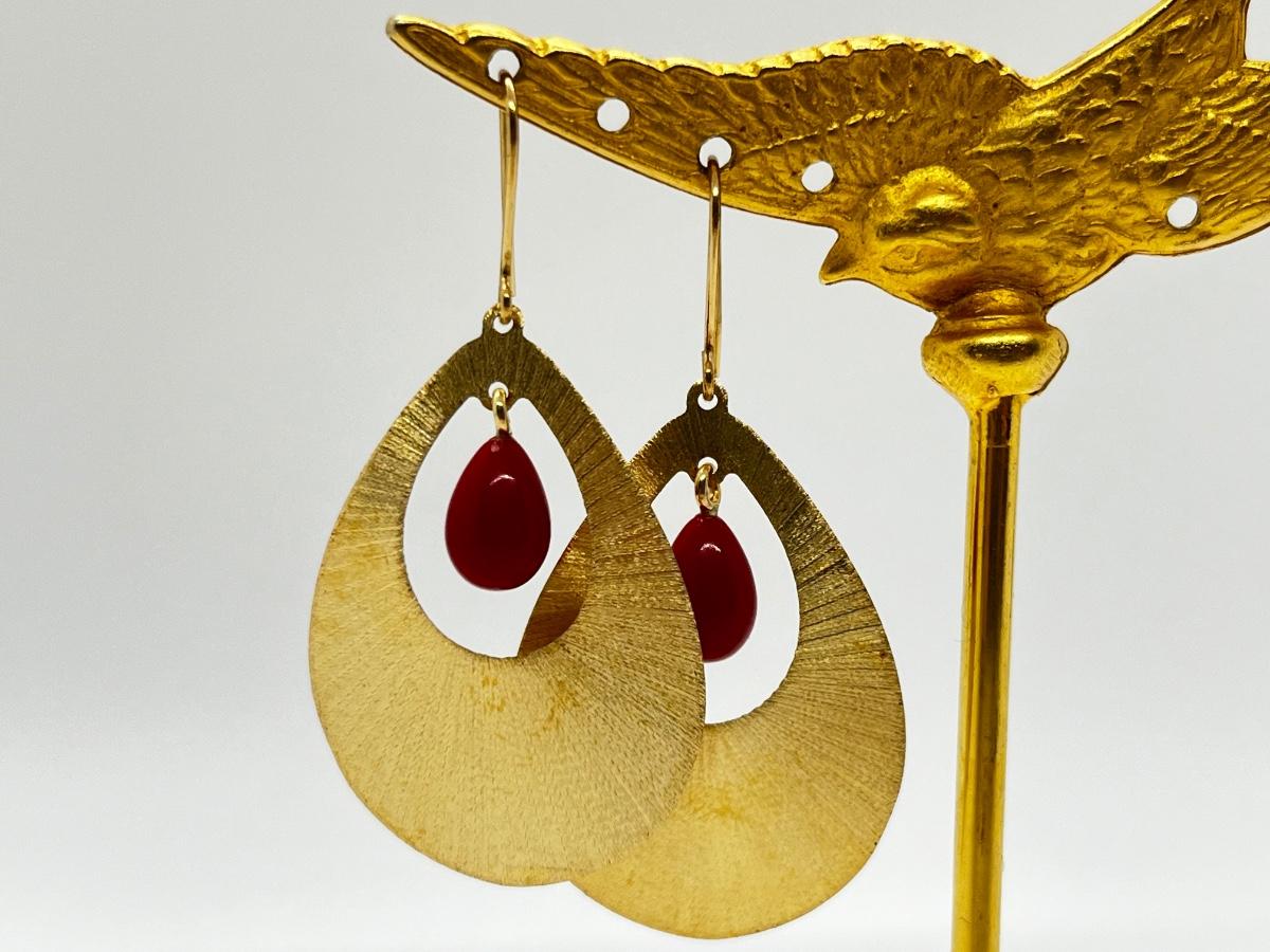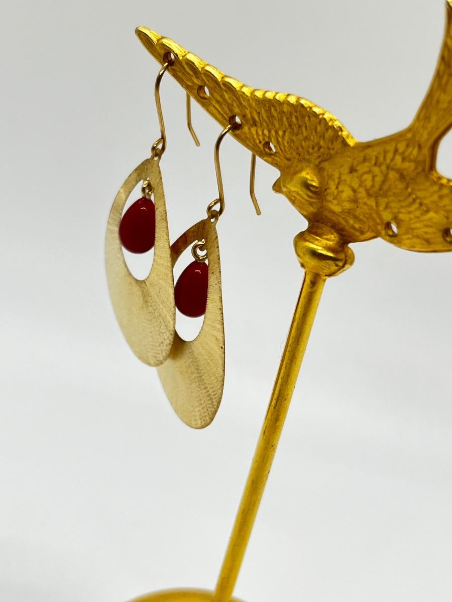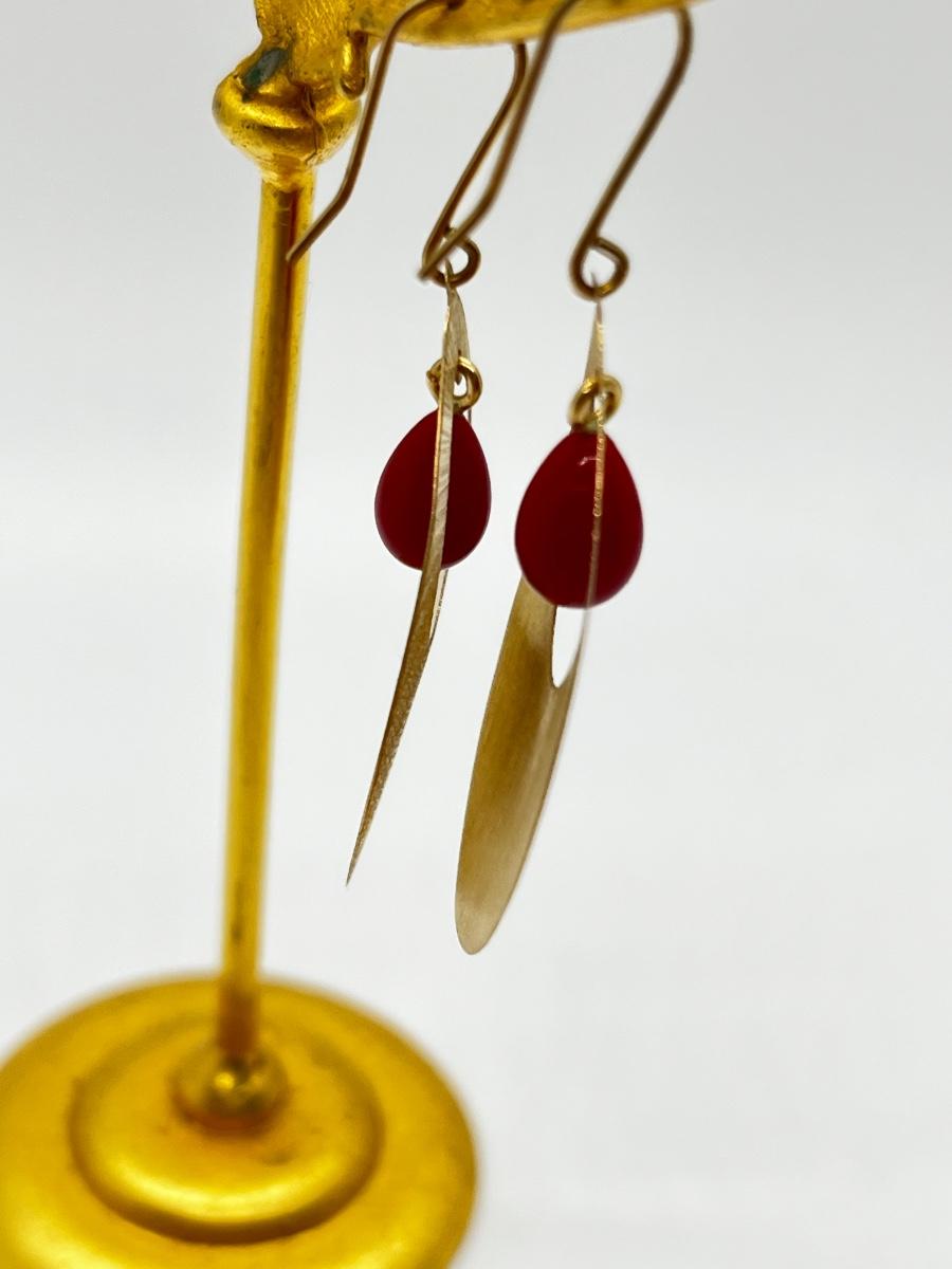 LOT 311J: Pretty 14K Gold and Red Coral Pierced Earrings-Italy-4.0 gtw
