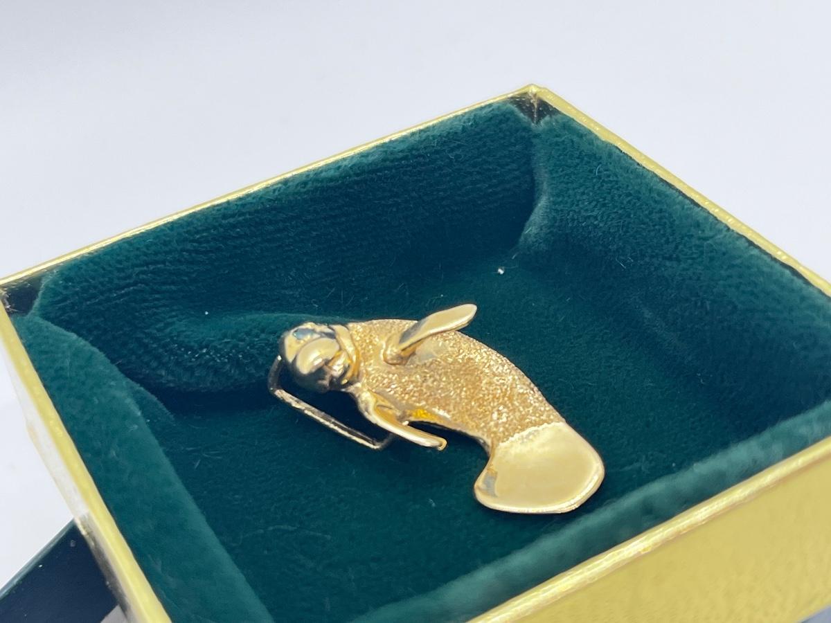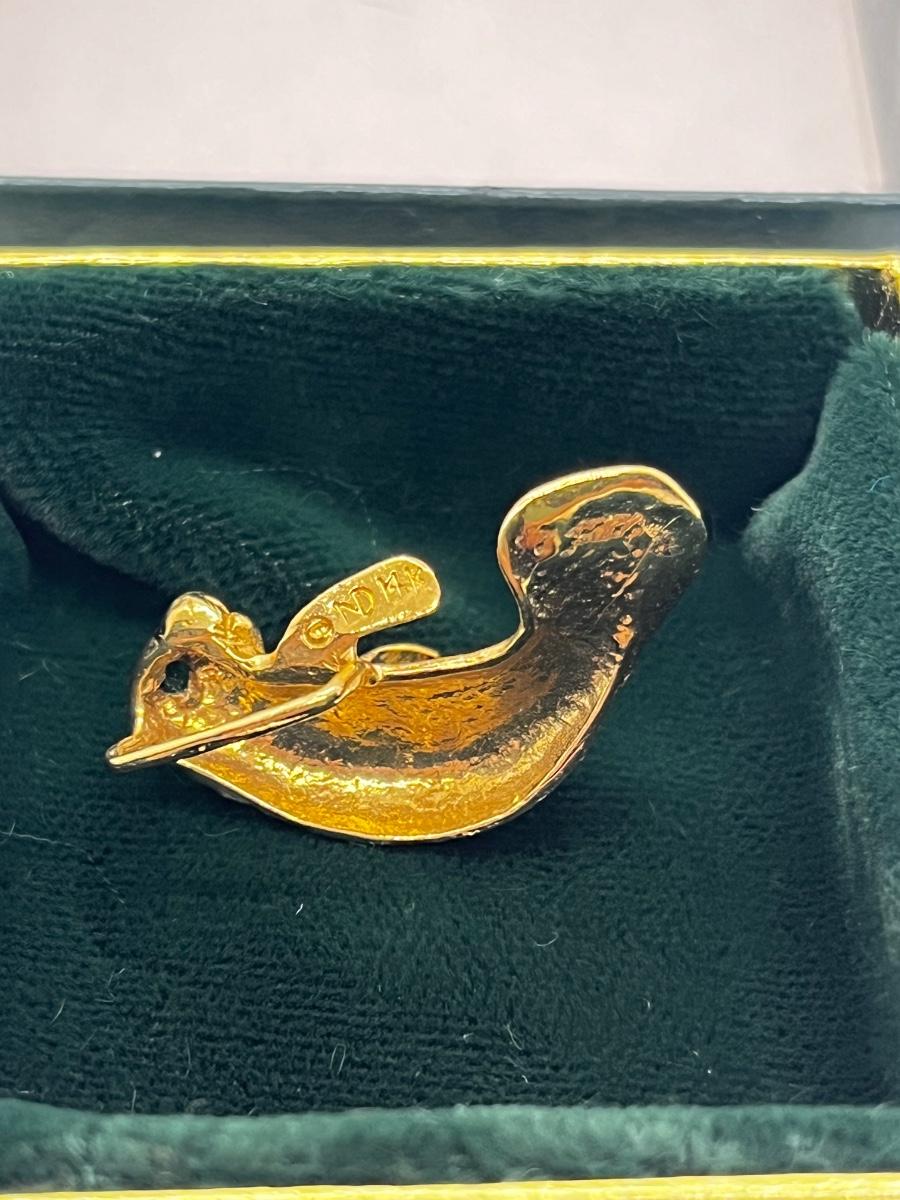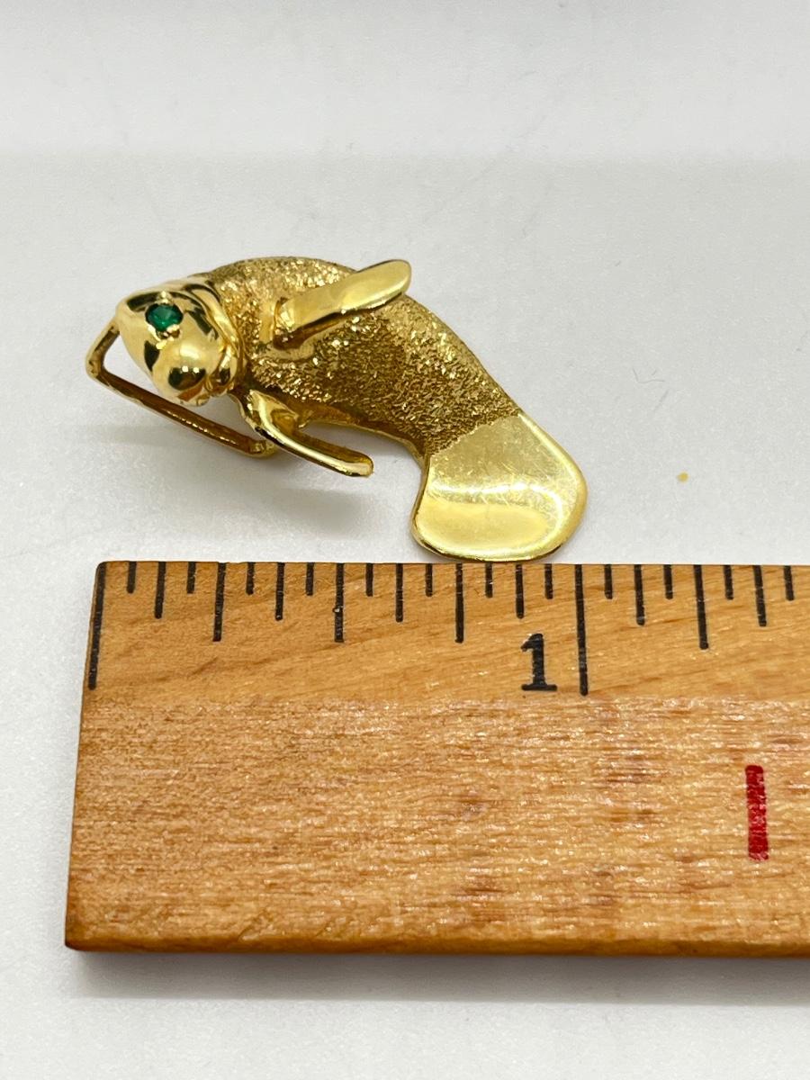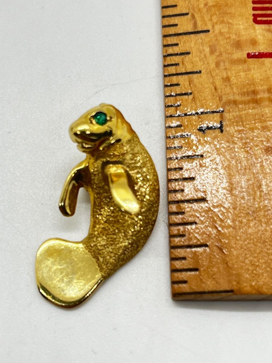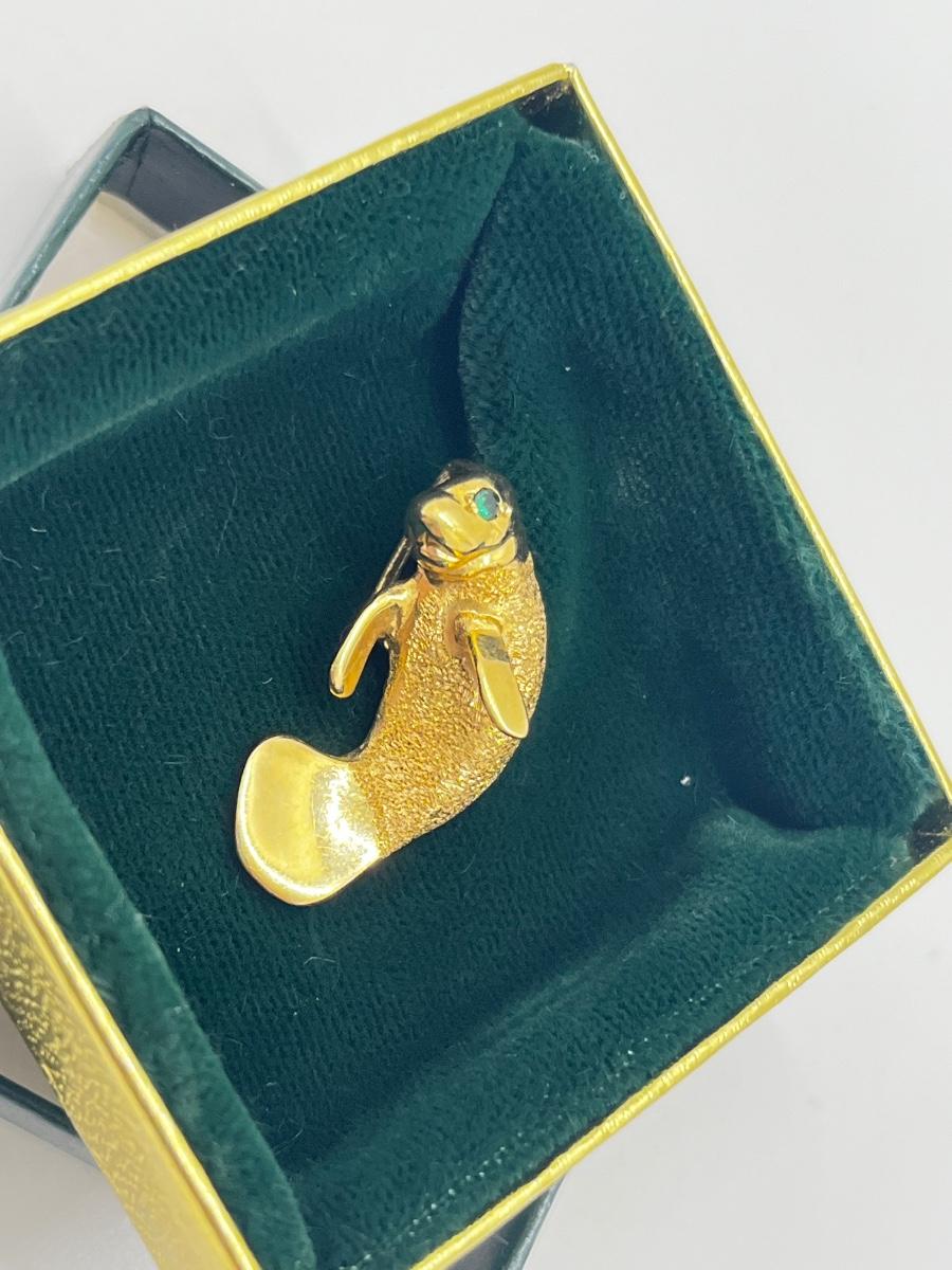 LOT 314J: Cute 14K Gold Seal Pendant with and Emerald Eye-3.3 g