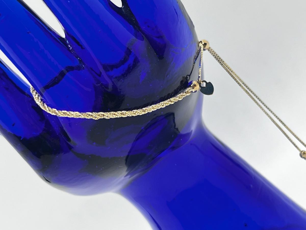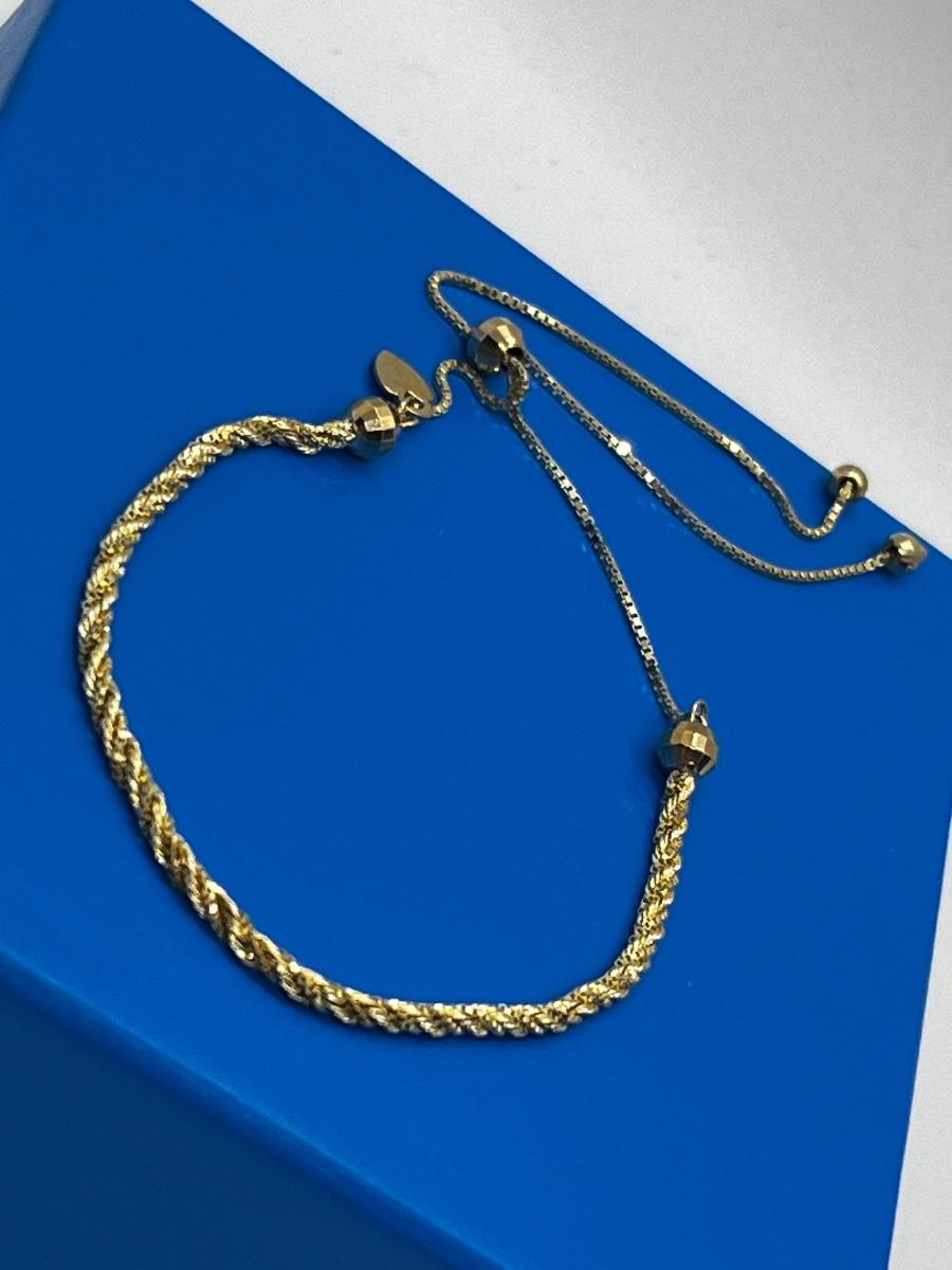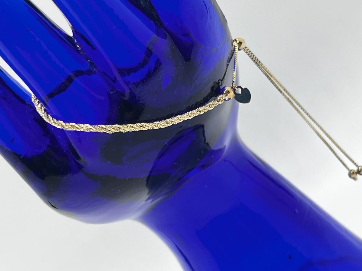 LOT 322J: 10K Rope Bracelet with Bolo Slide for Adjusting Size-1.8g