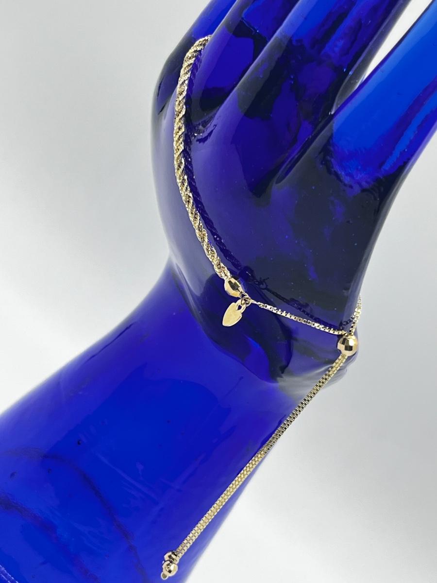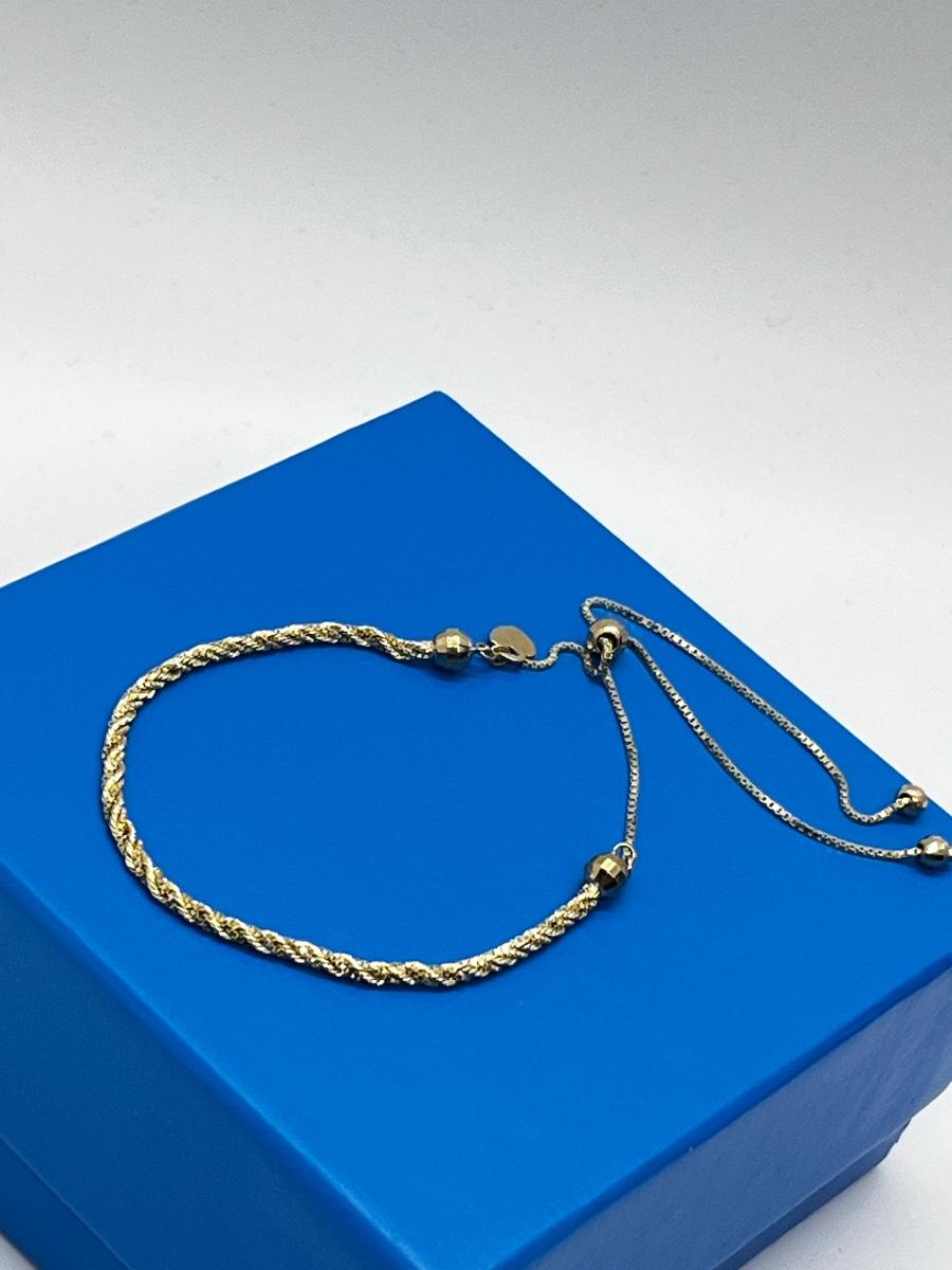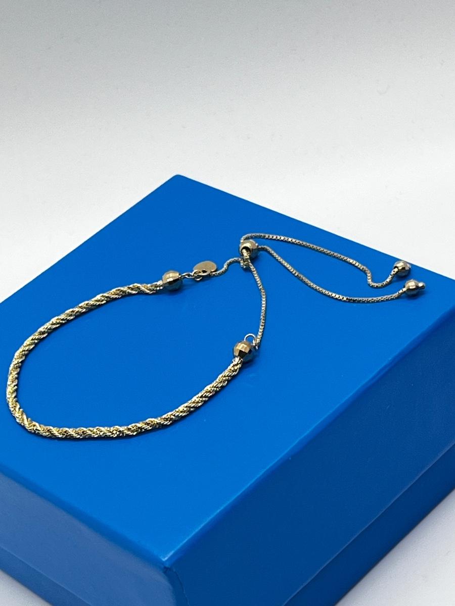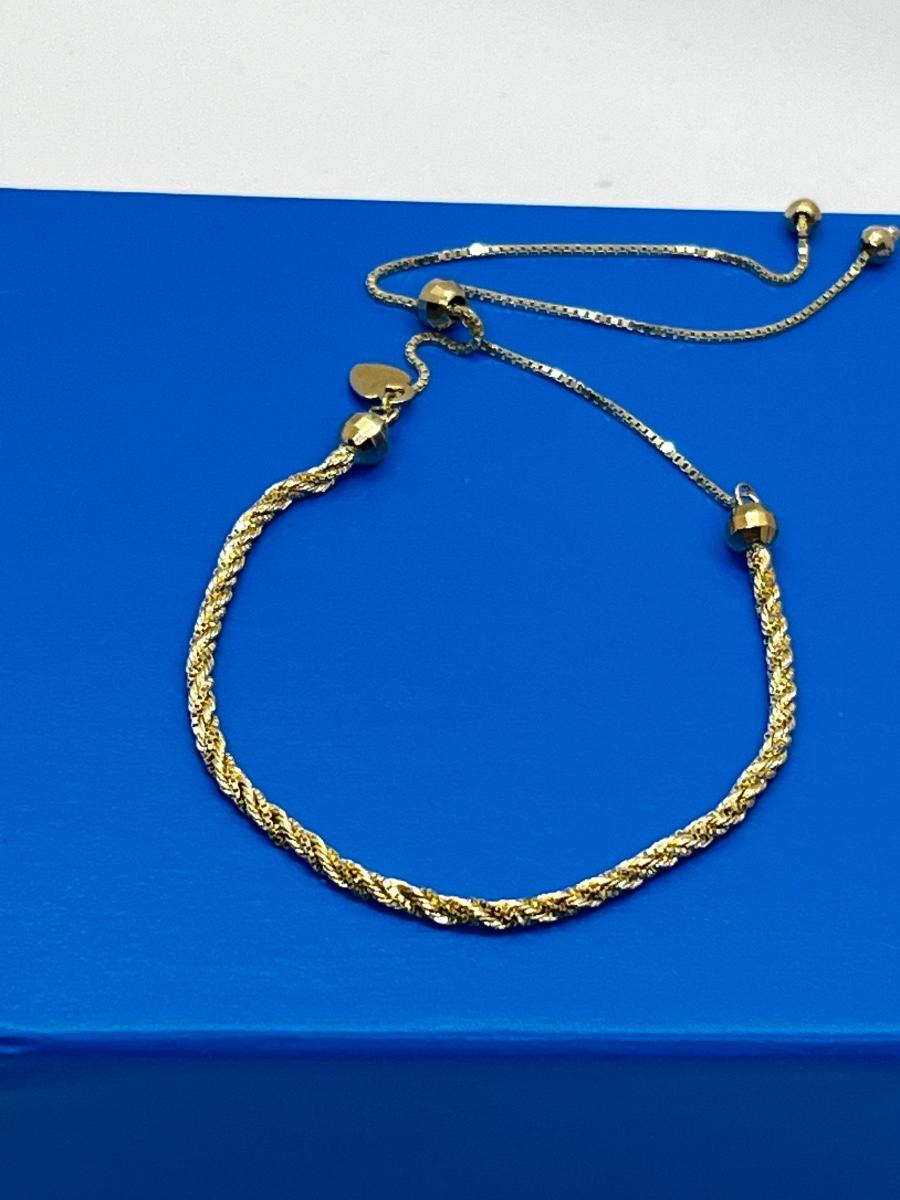 LOT 322J: 10K Rope Bracelet with Bolo Slide for Adjusting Size-1.8g