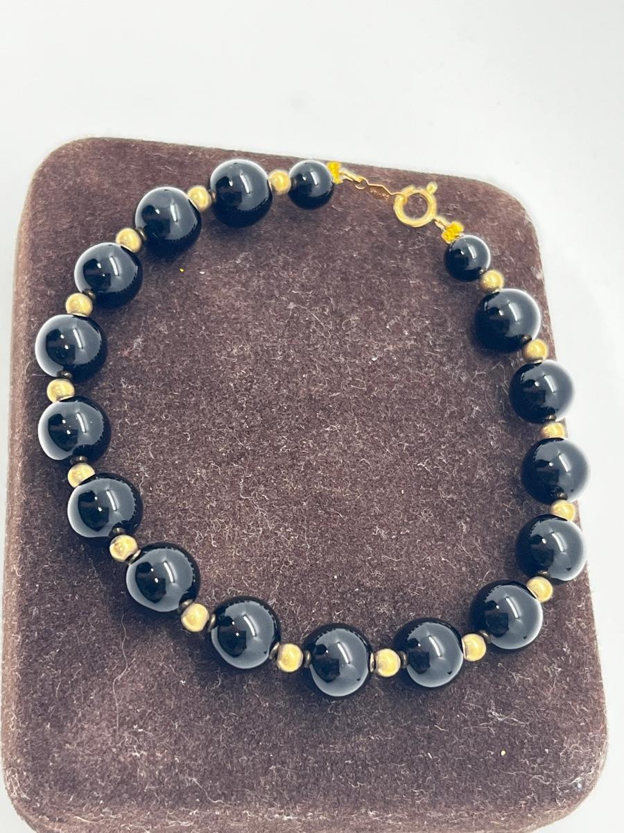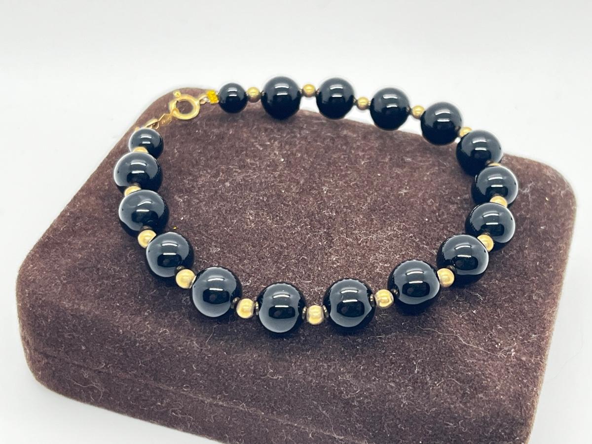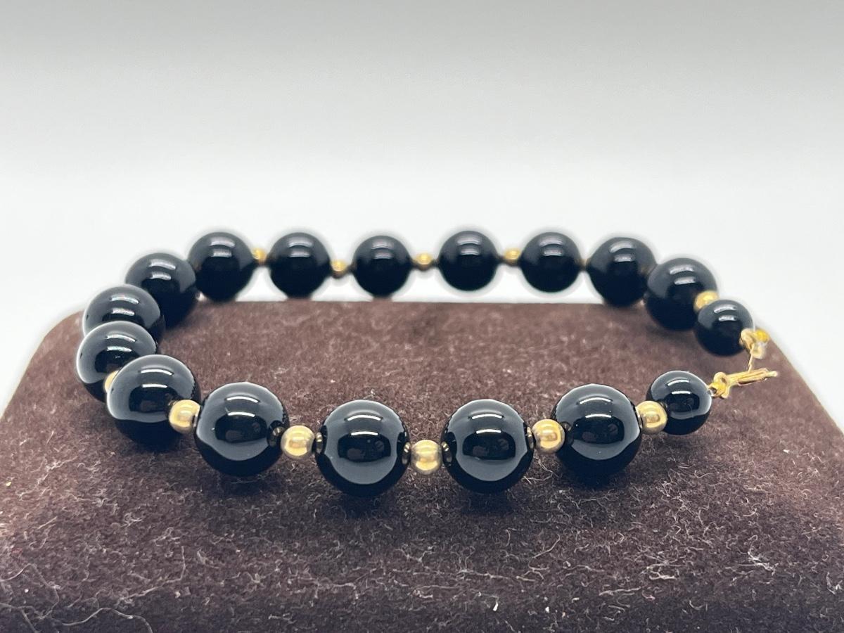 LOT 323J: Black Onyx and 14K Gold Bracelet-12.6 g
