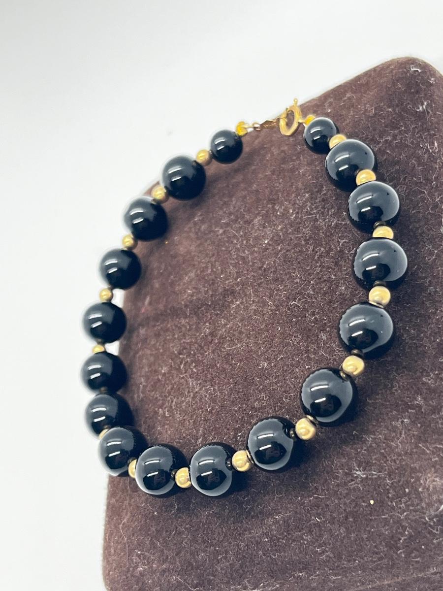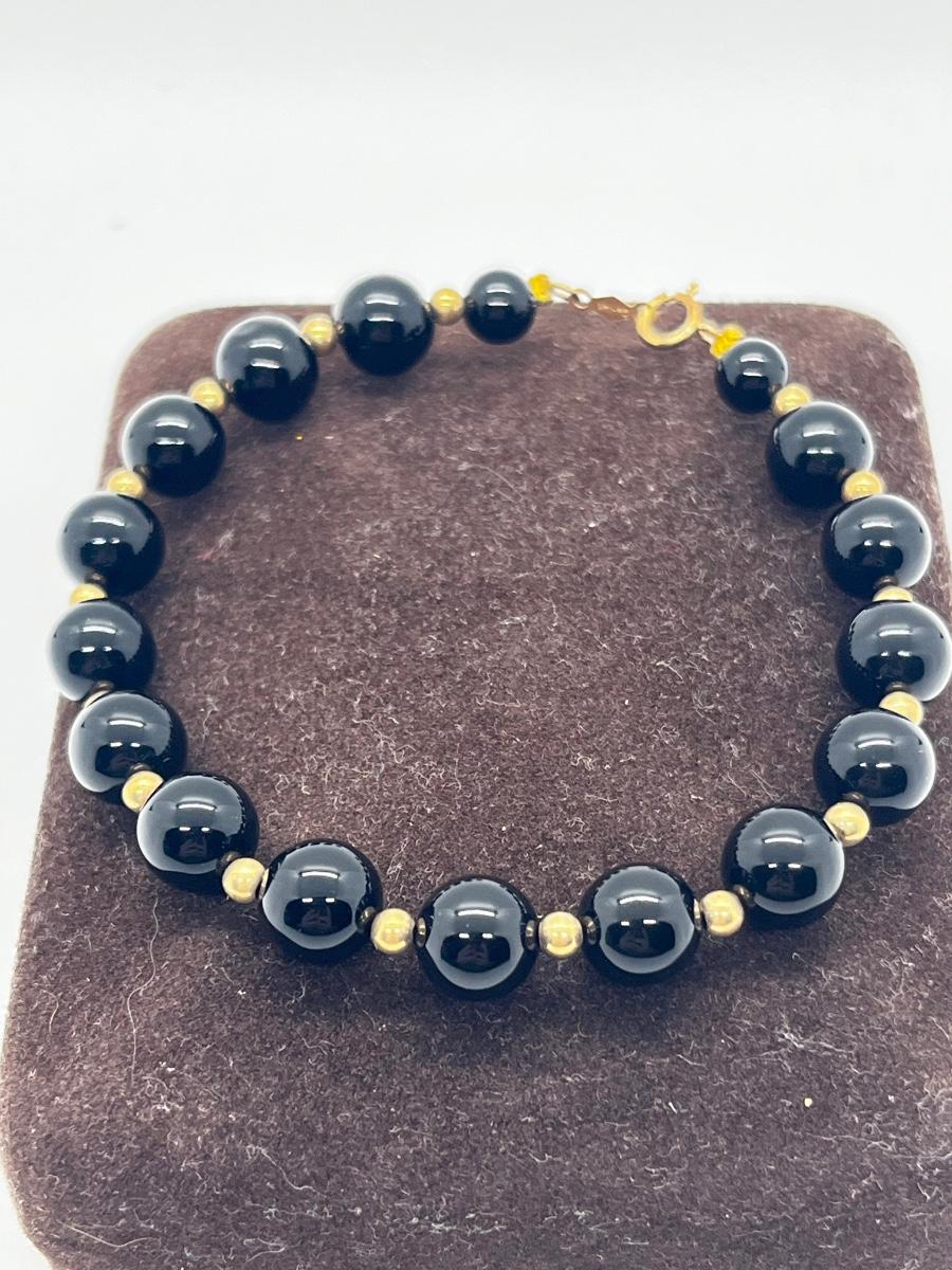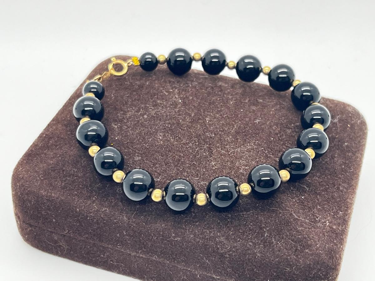 LOT 323J: Black Onyx and 14K Gold Bracelet-12.6 g