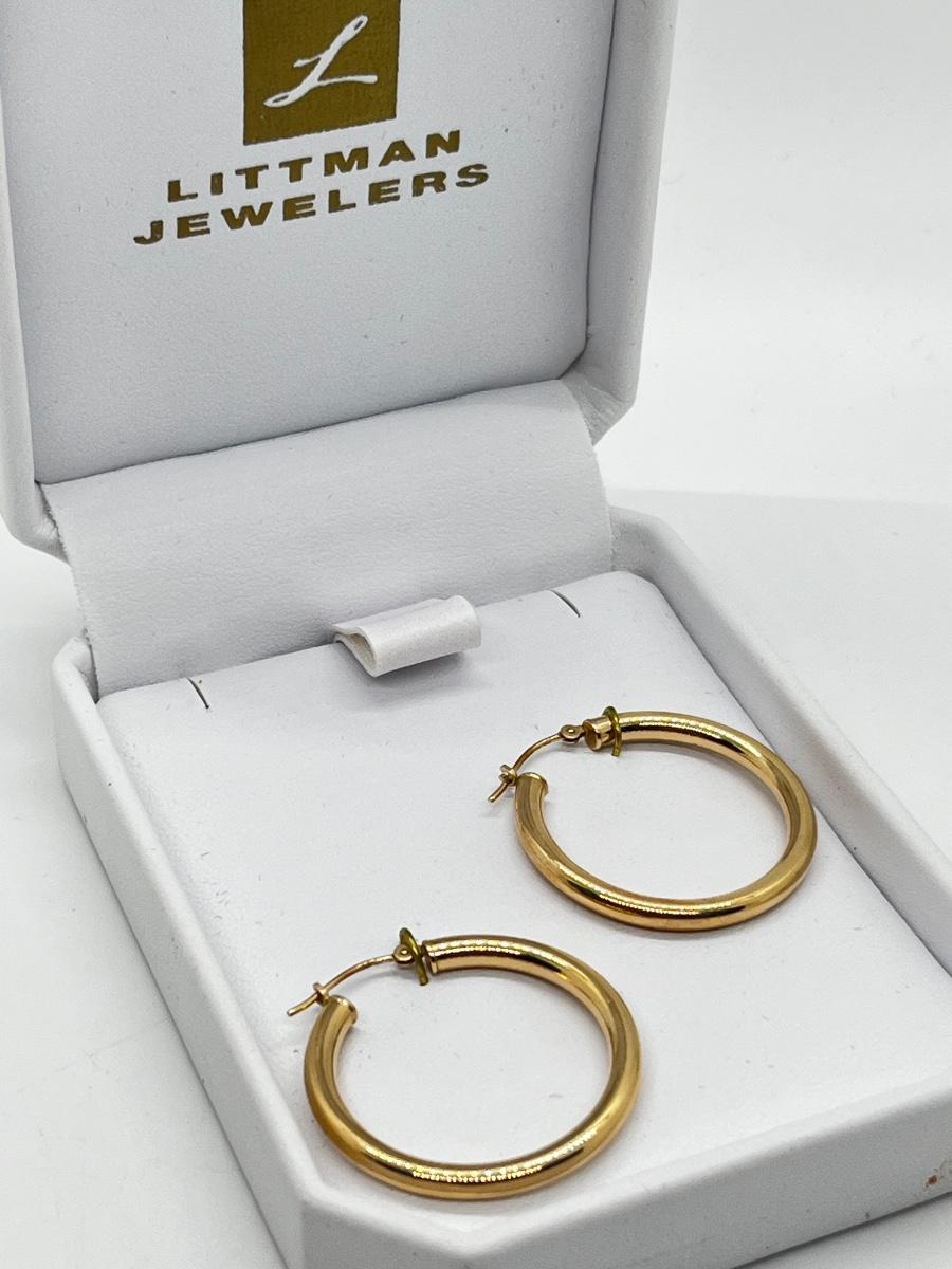 LOT 324J: Simple Classic 14K Gold Hoop Earrings-2.2g