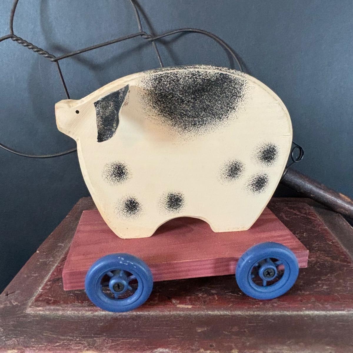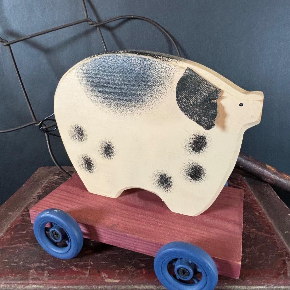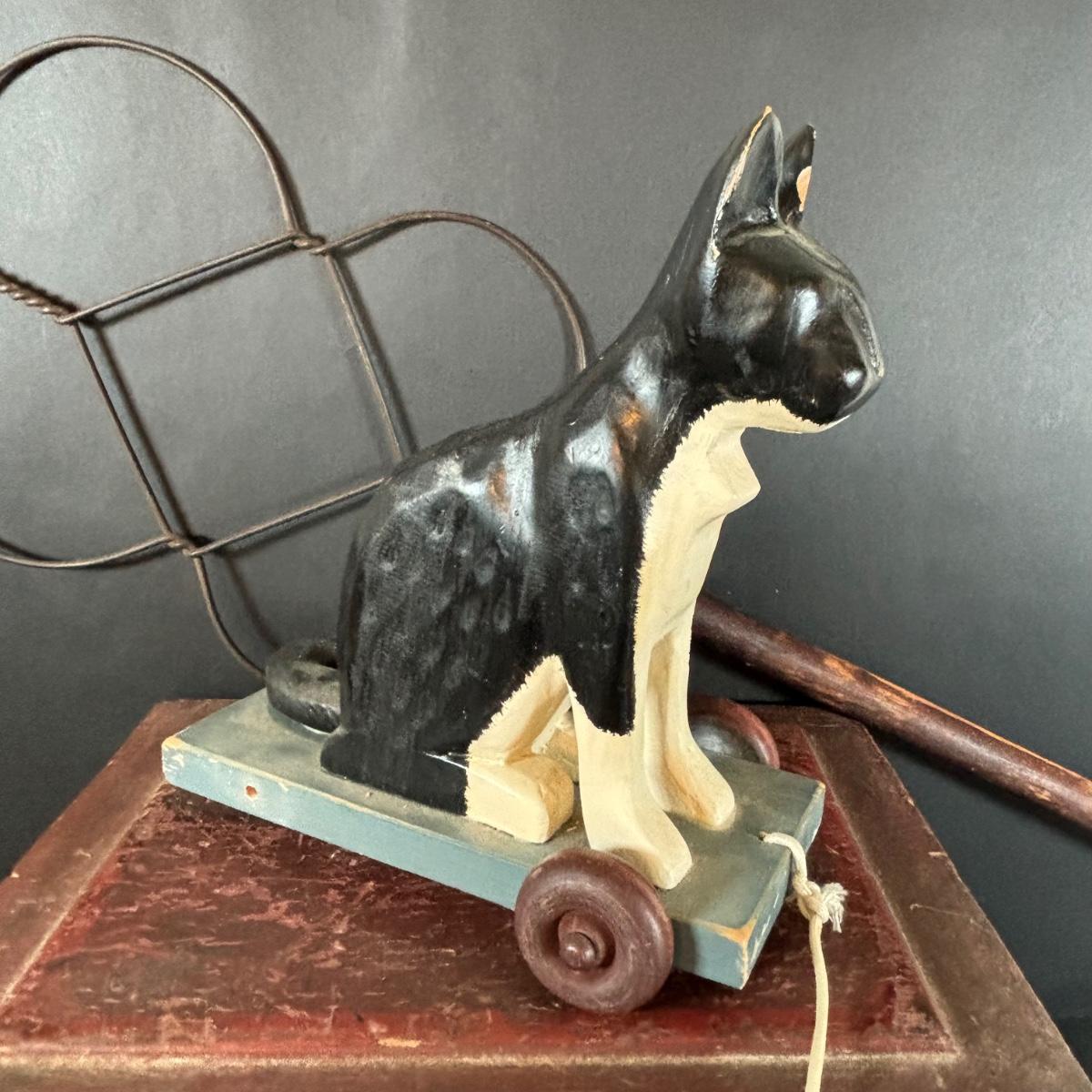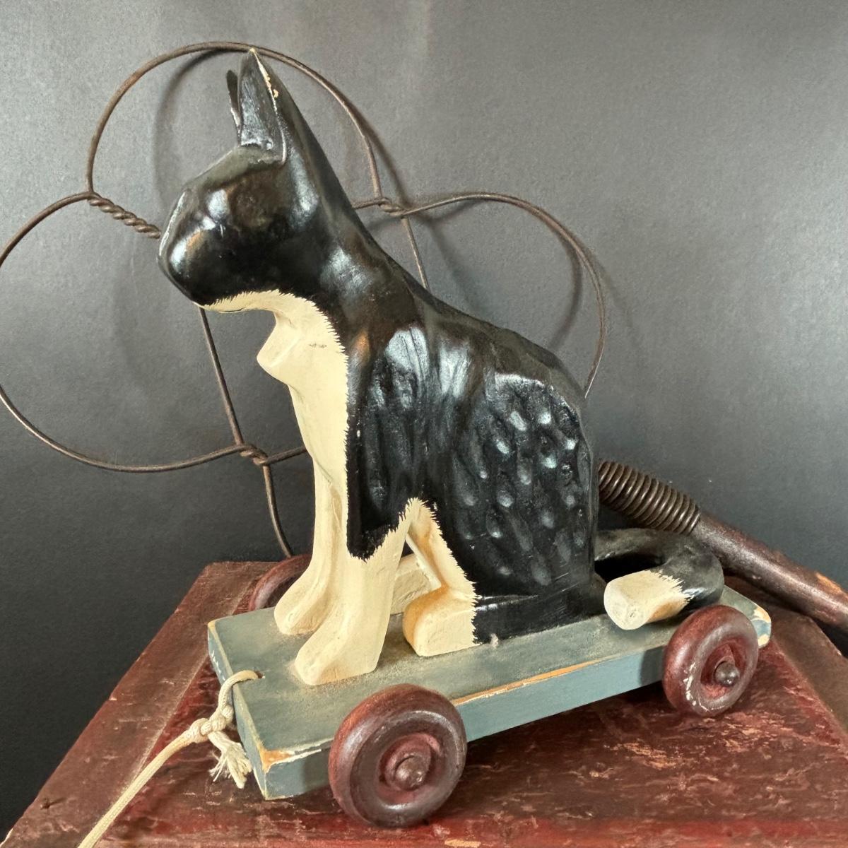 LOT 16: Antique Style Wooden Pull Toys, Wood Box, Ball Jar, Rug Beater and More