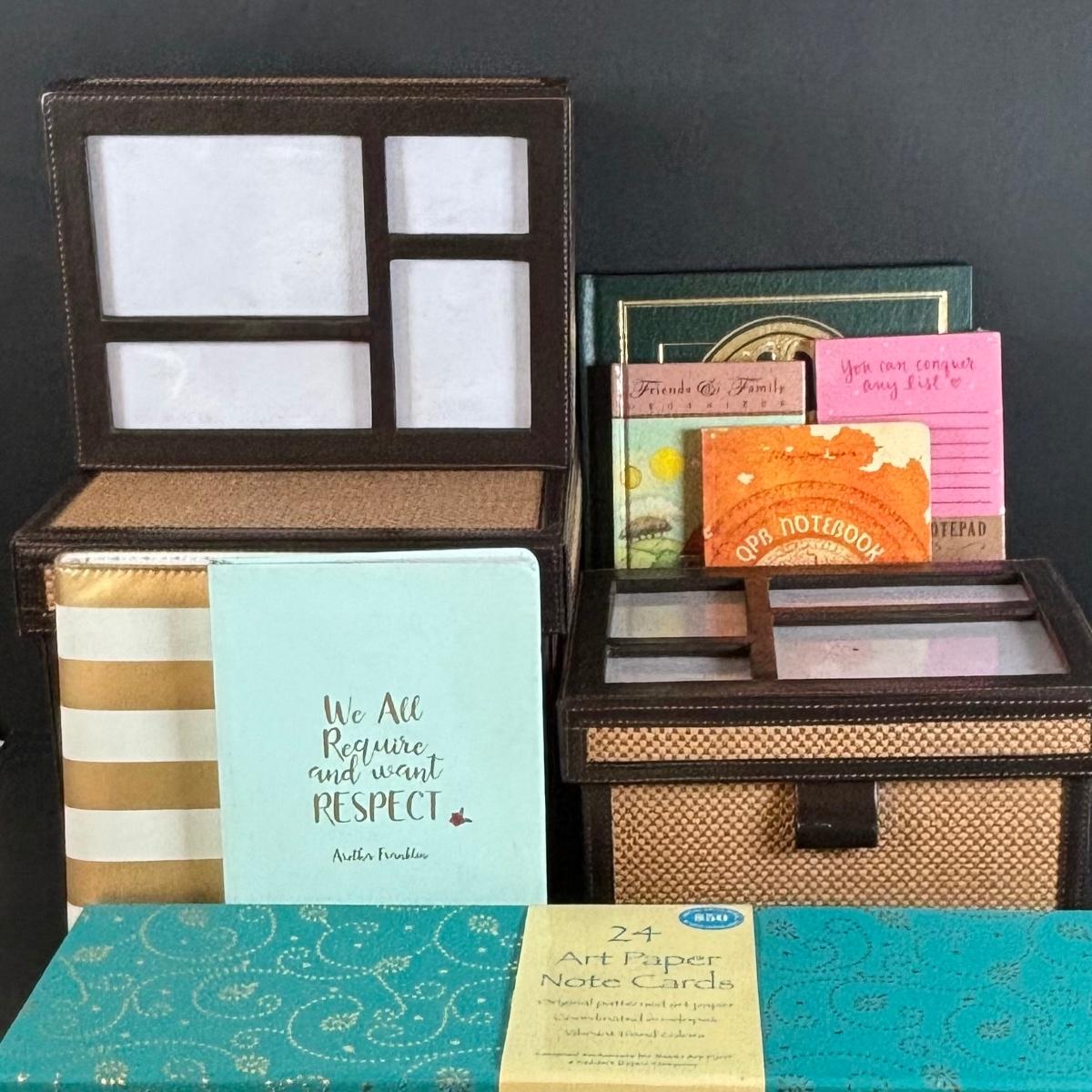 LOT 20: Storage Boxes, Art Paper Note Cards, Our Family Tree Book, Journaling Books & More