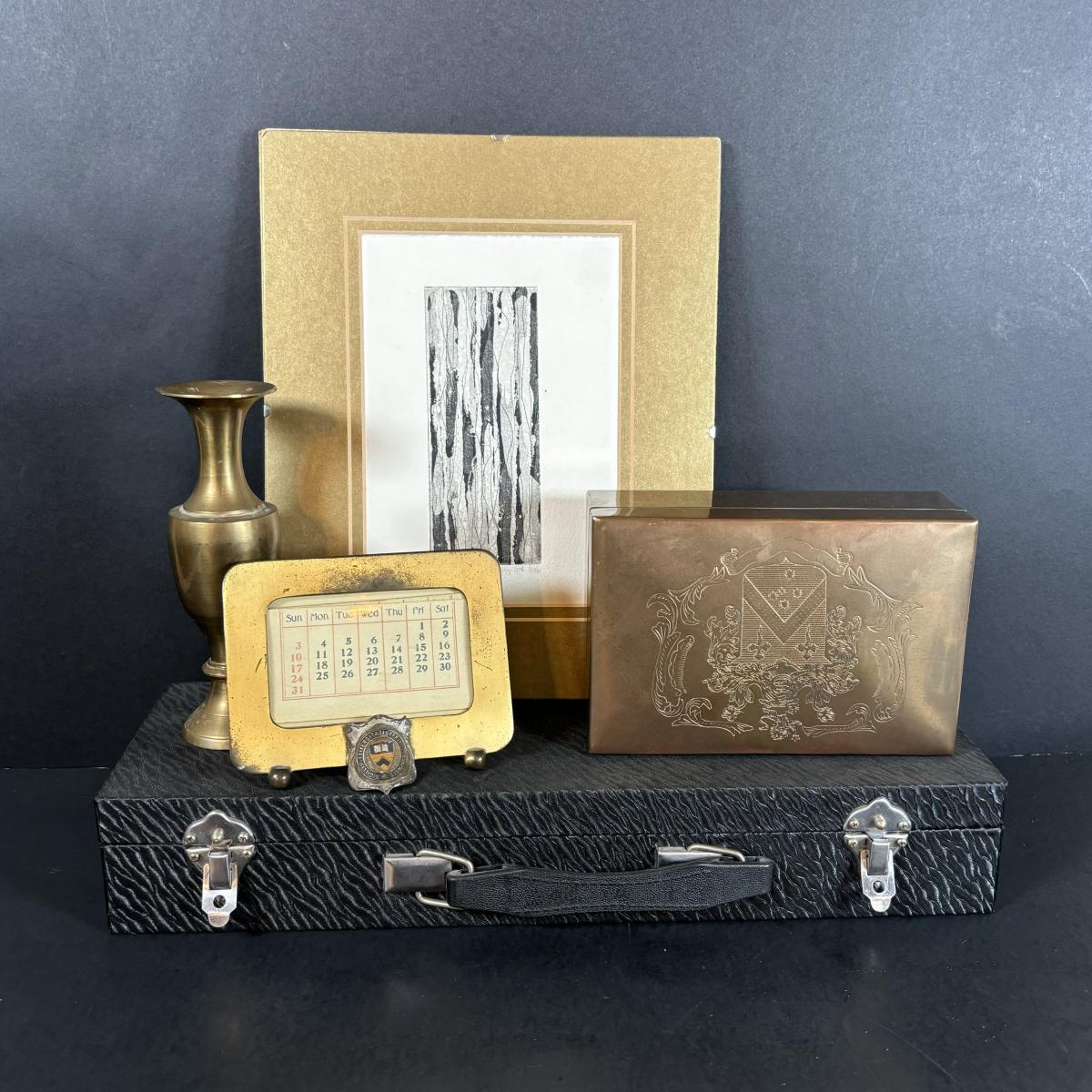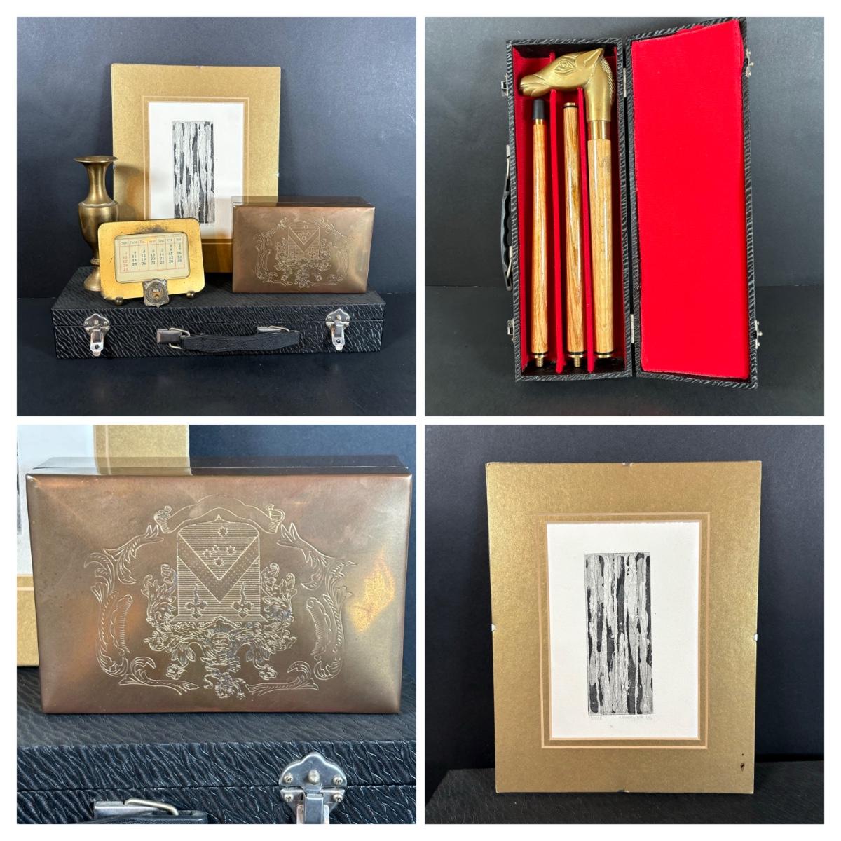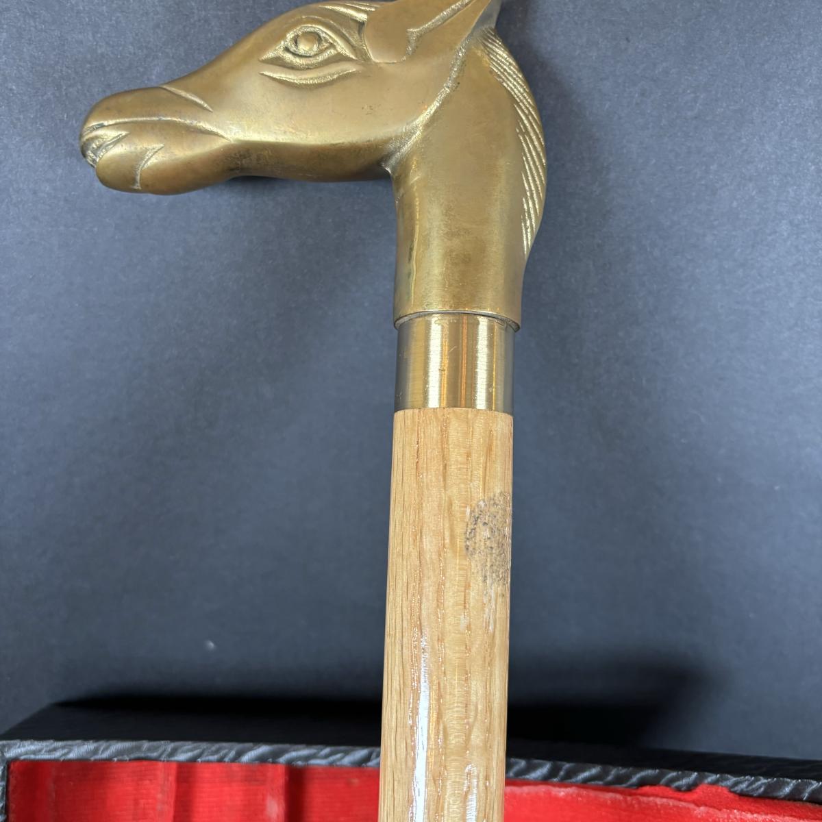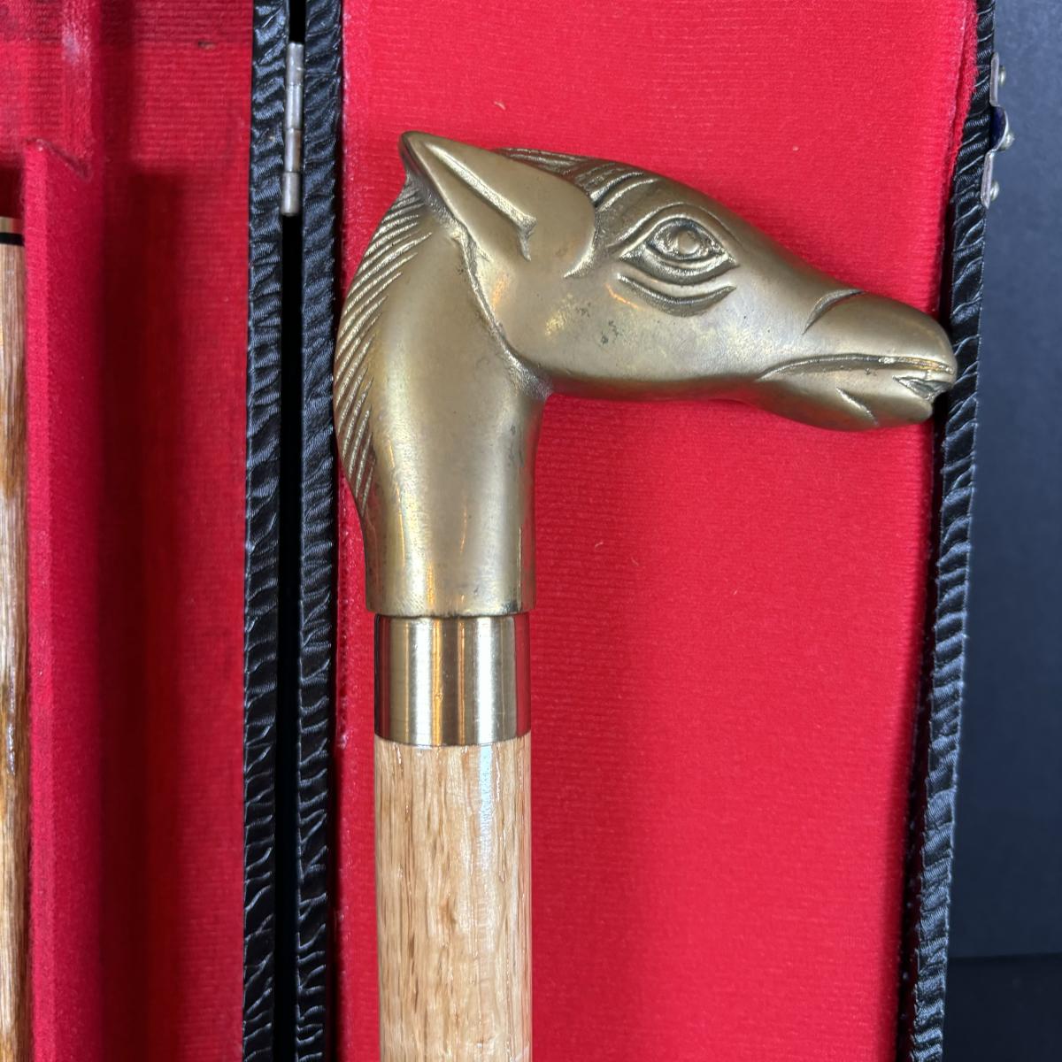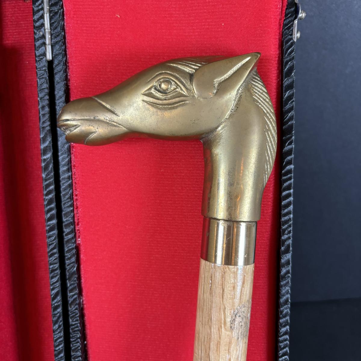 LOT 26: Bronze Horse Head 3-Part Wood Cane/Walking Stick in Box, Signed & Number Etching, Andrea by Sadek Brass Trinket Box & More