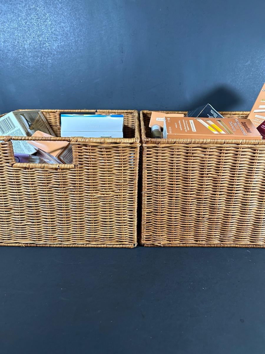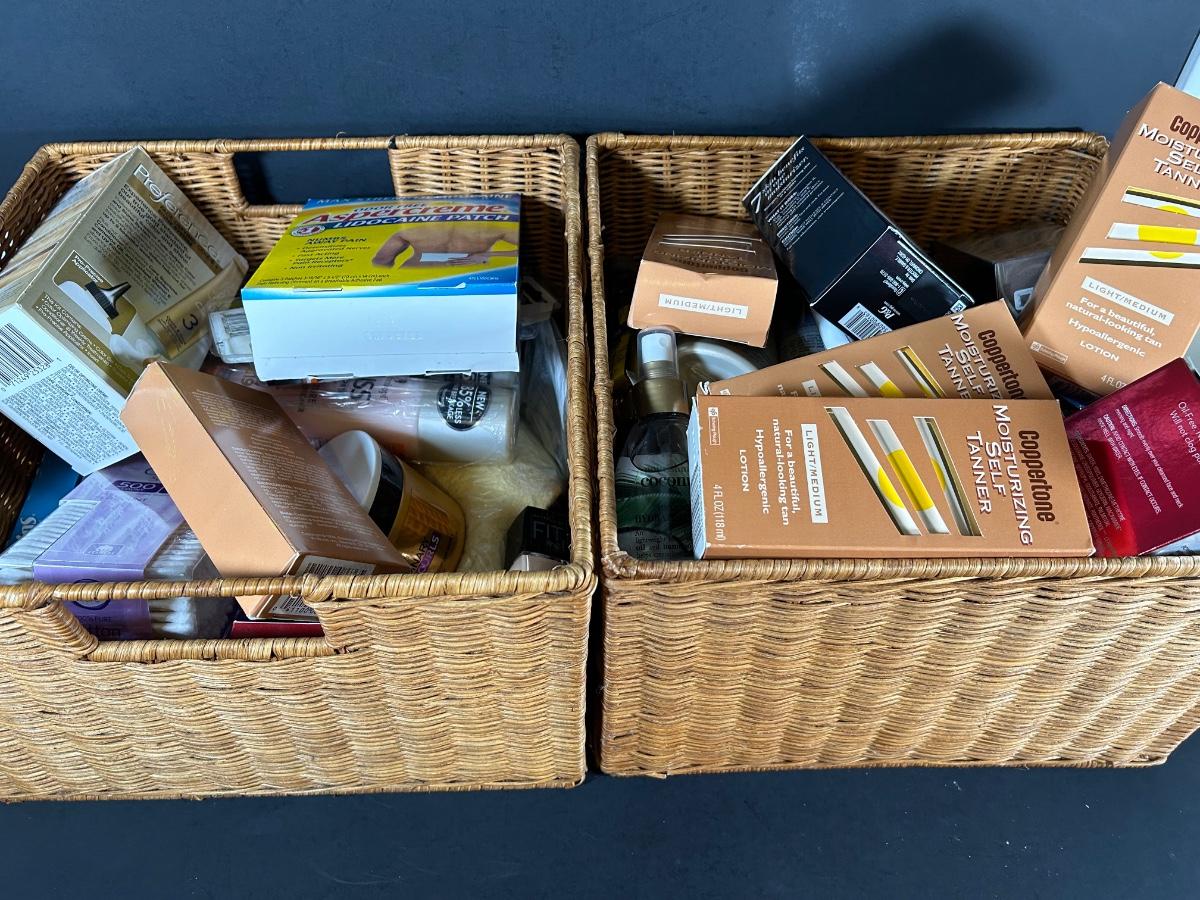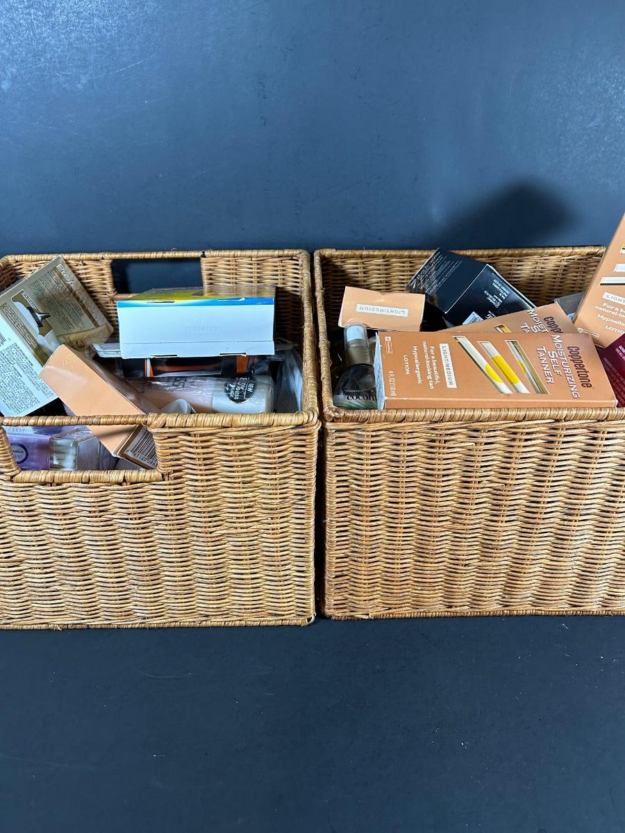 LOT 56: Two Baskets Full of Unopened, NIB, Skin, Hair & Body Products