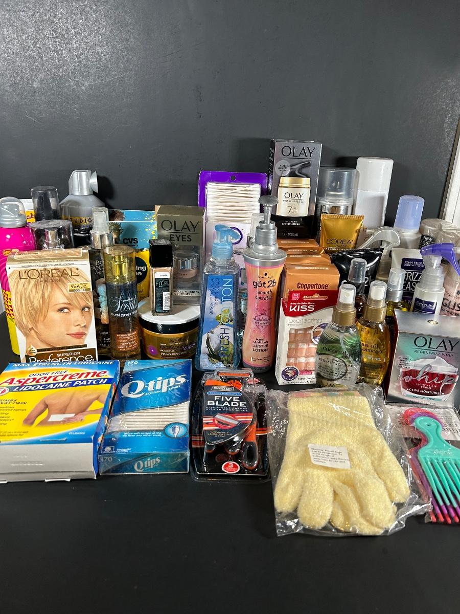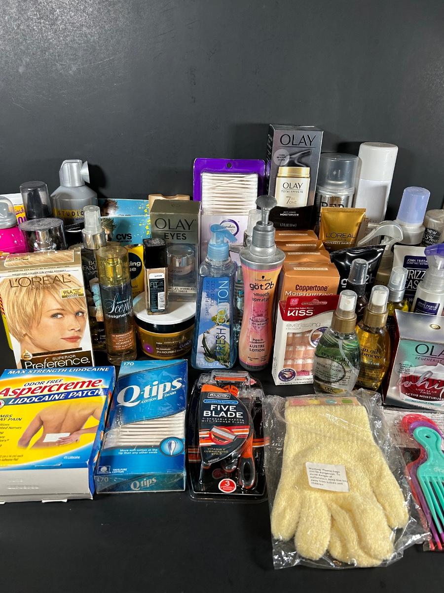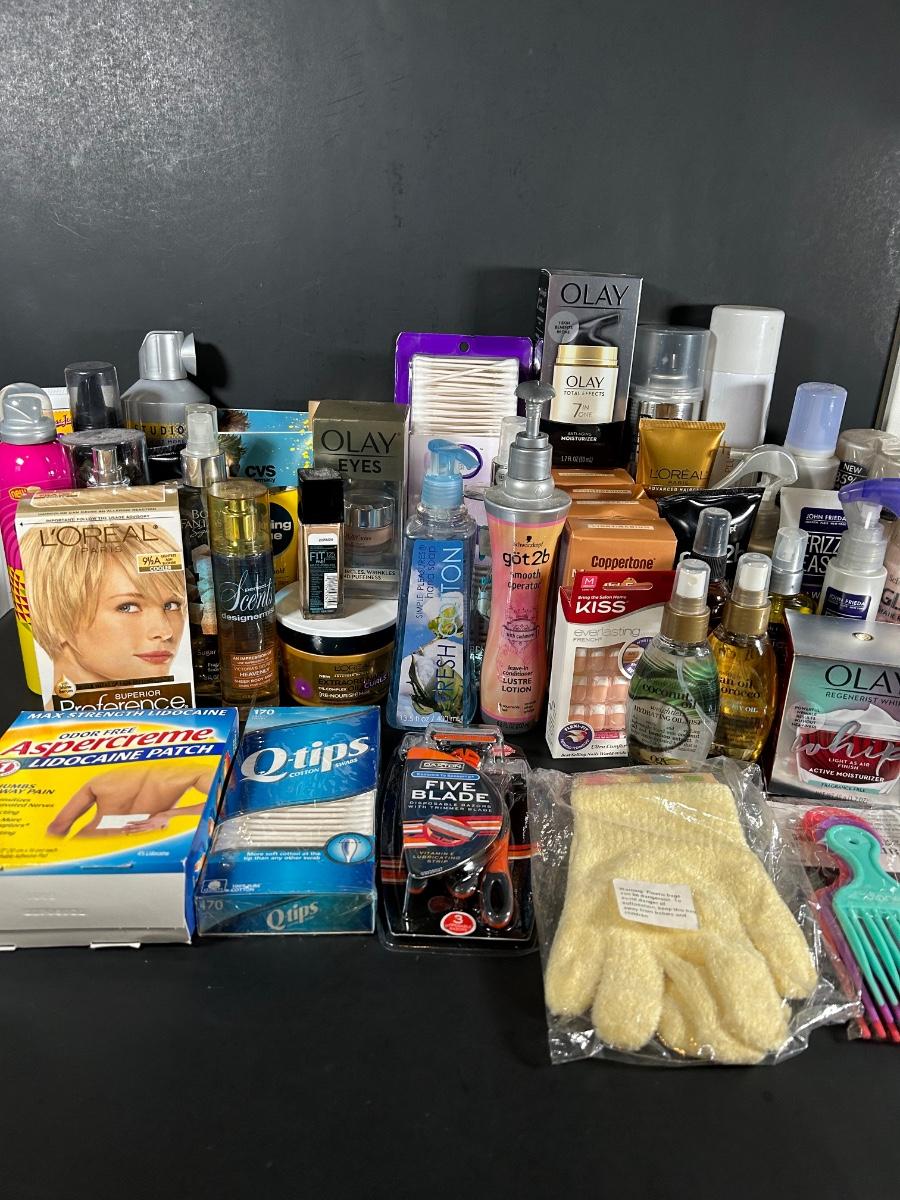 LOT 56: Two Baskets Full of Unopened, NIB, Skin, Hair & Body Products
